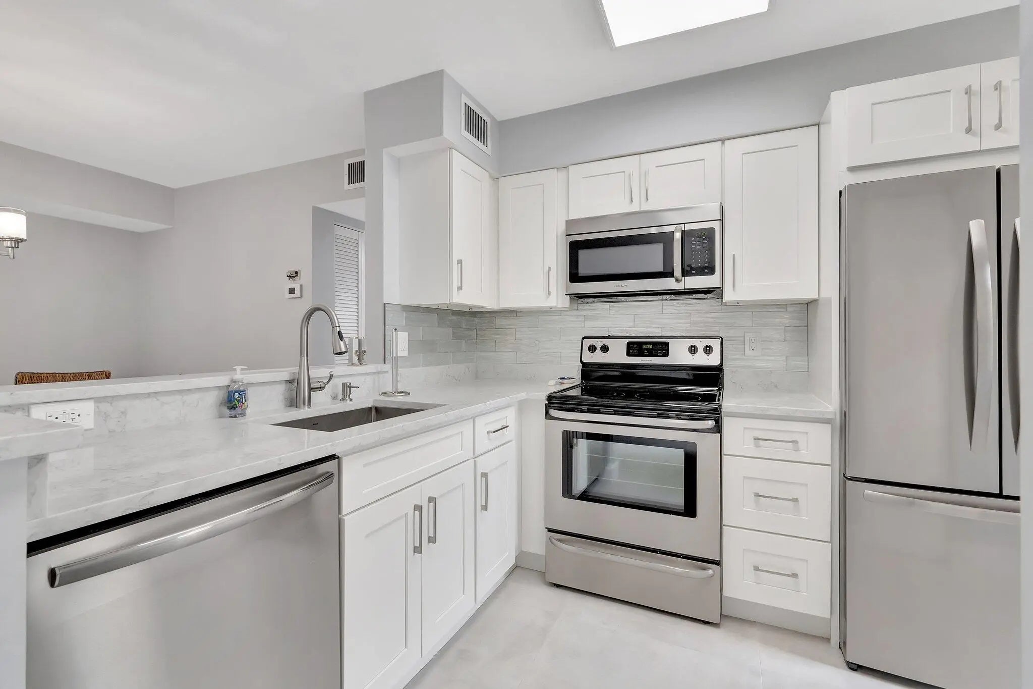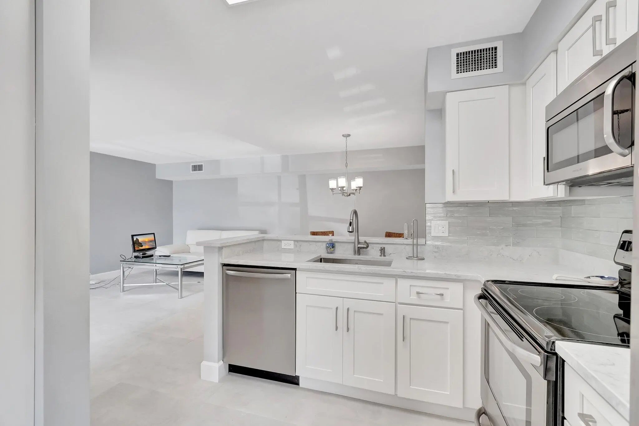 BEAUTIFULLY RENOVATED 1ST FLOOR CONTEMP-2BED/2BATH, KITCHEN HAS QUARTZ COUNTERTOPS, PORCELAIN TILE FLOOR THROUGHOUT, S/S APPLIANCES. MOVE RIGHT IN TO THIS 55+ COMMUNITY. Private screened-in porch. Laundry room inside (washer and dryer included). FURNISHED OR UNFURNISHED!! ASSIGNED PARKING #97 Complex offers Country Club living, at NO additional fees, membership to The Huntington Lakes Club and all the great amenities included in the HOA dues(water, basic cable, internet,pest and landscaping). The club offers amazing Theater broadway style, great shows, Olympic size indoor pool, tennis, fitness center, transportation, classes, social activities, and more. Fantastic location minutes away from shopping, dining, medical, houses of worship and award winning beach.