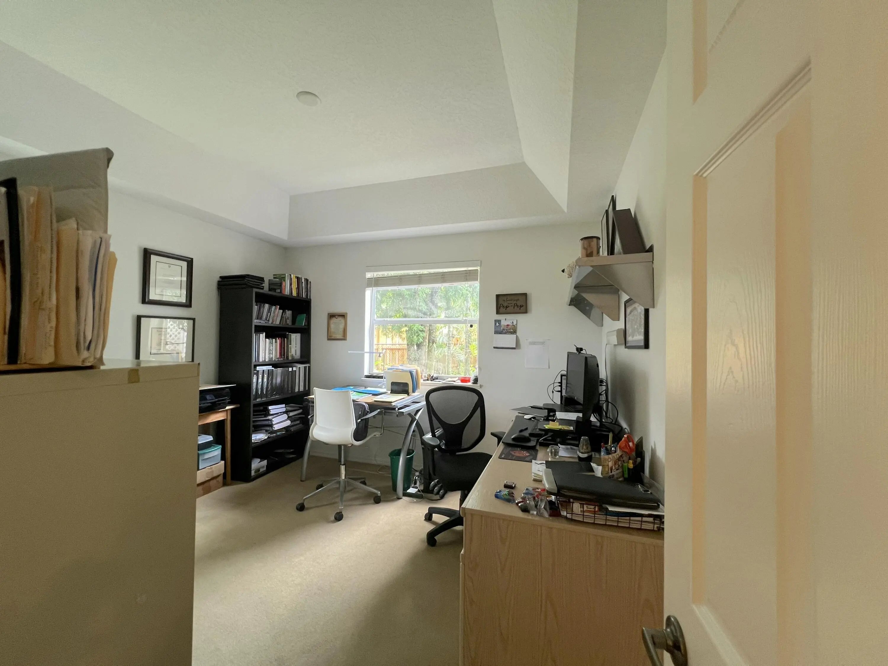 High Ceilings, Walk-In Closet(s), Bedroom Layout - Split, Pull Down Stairs