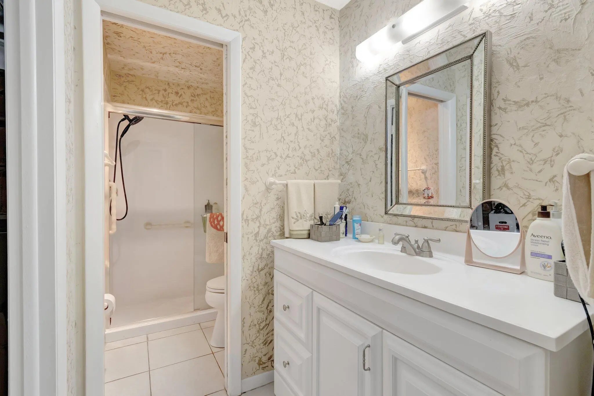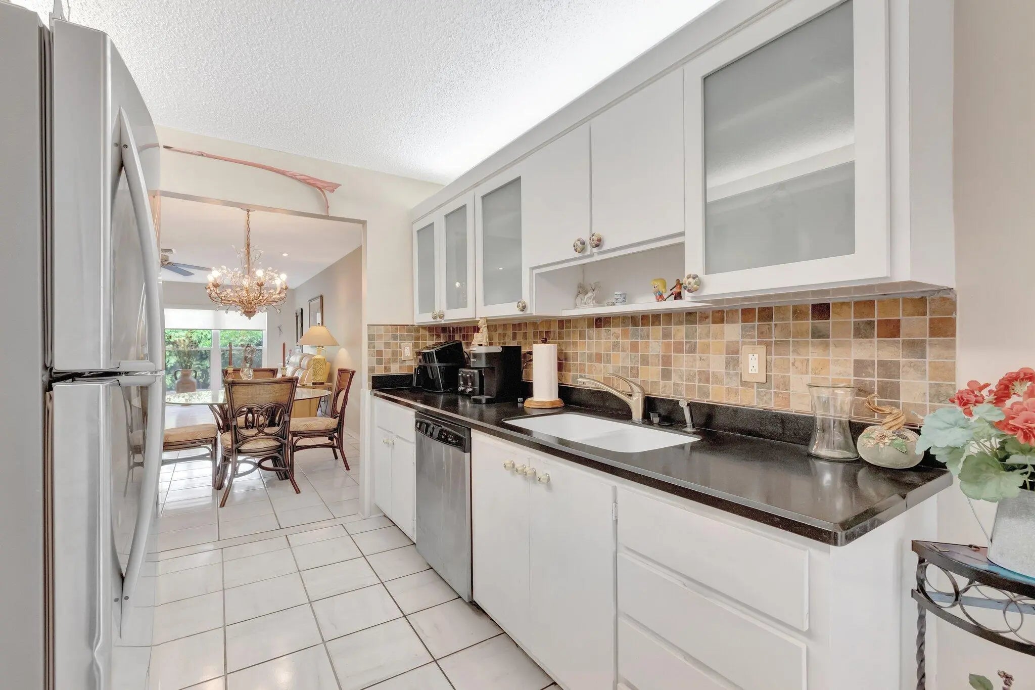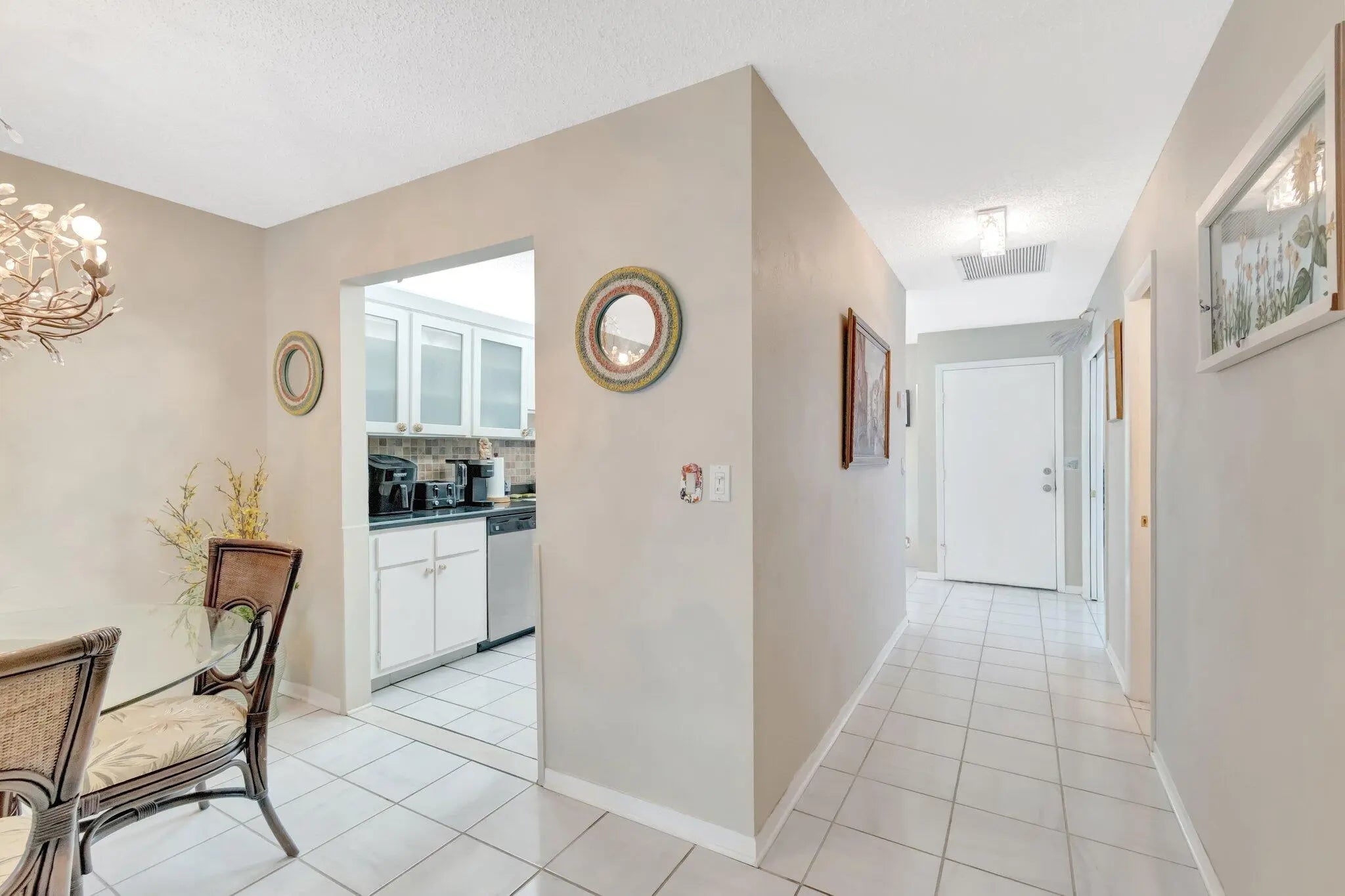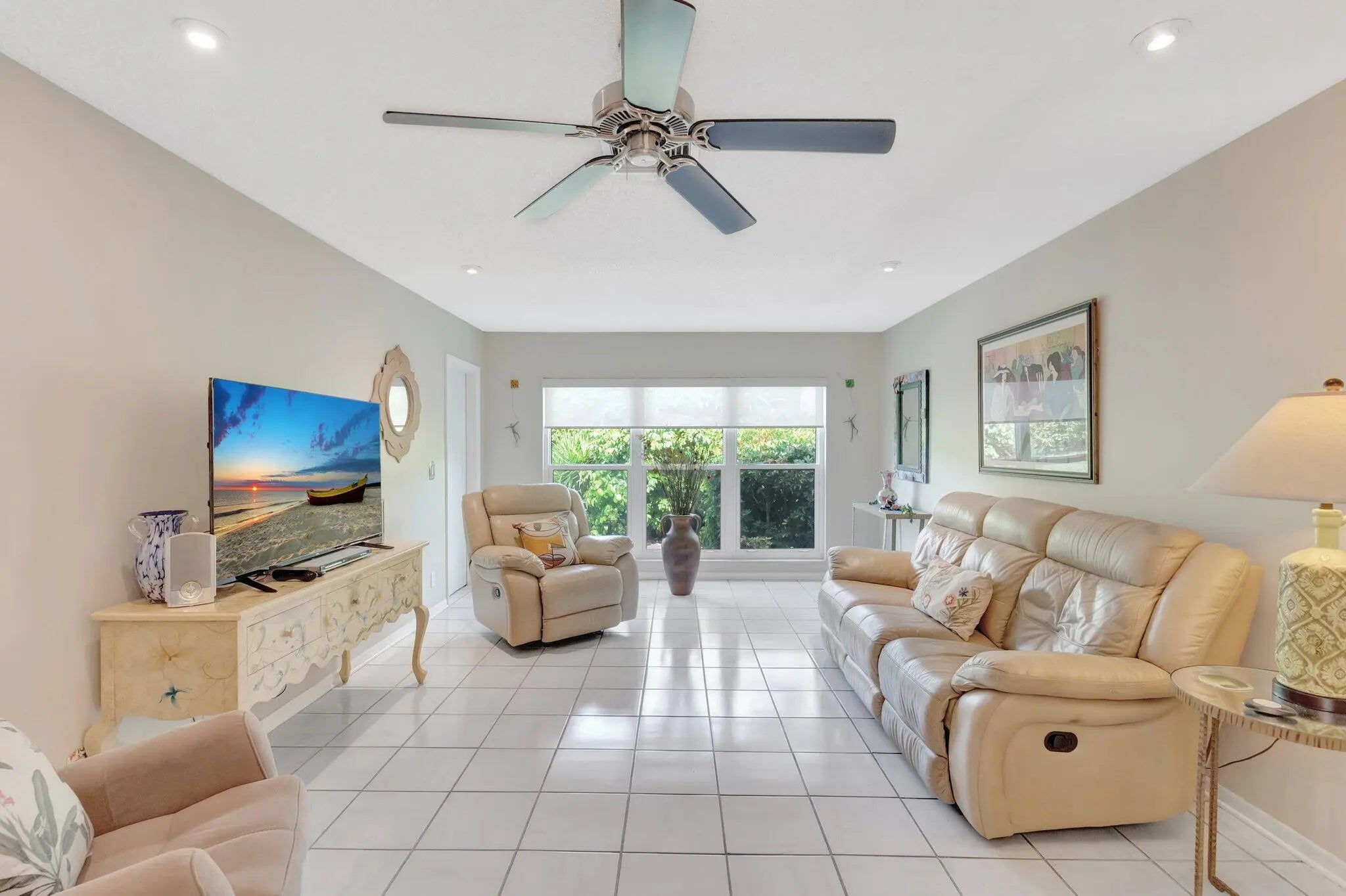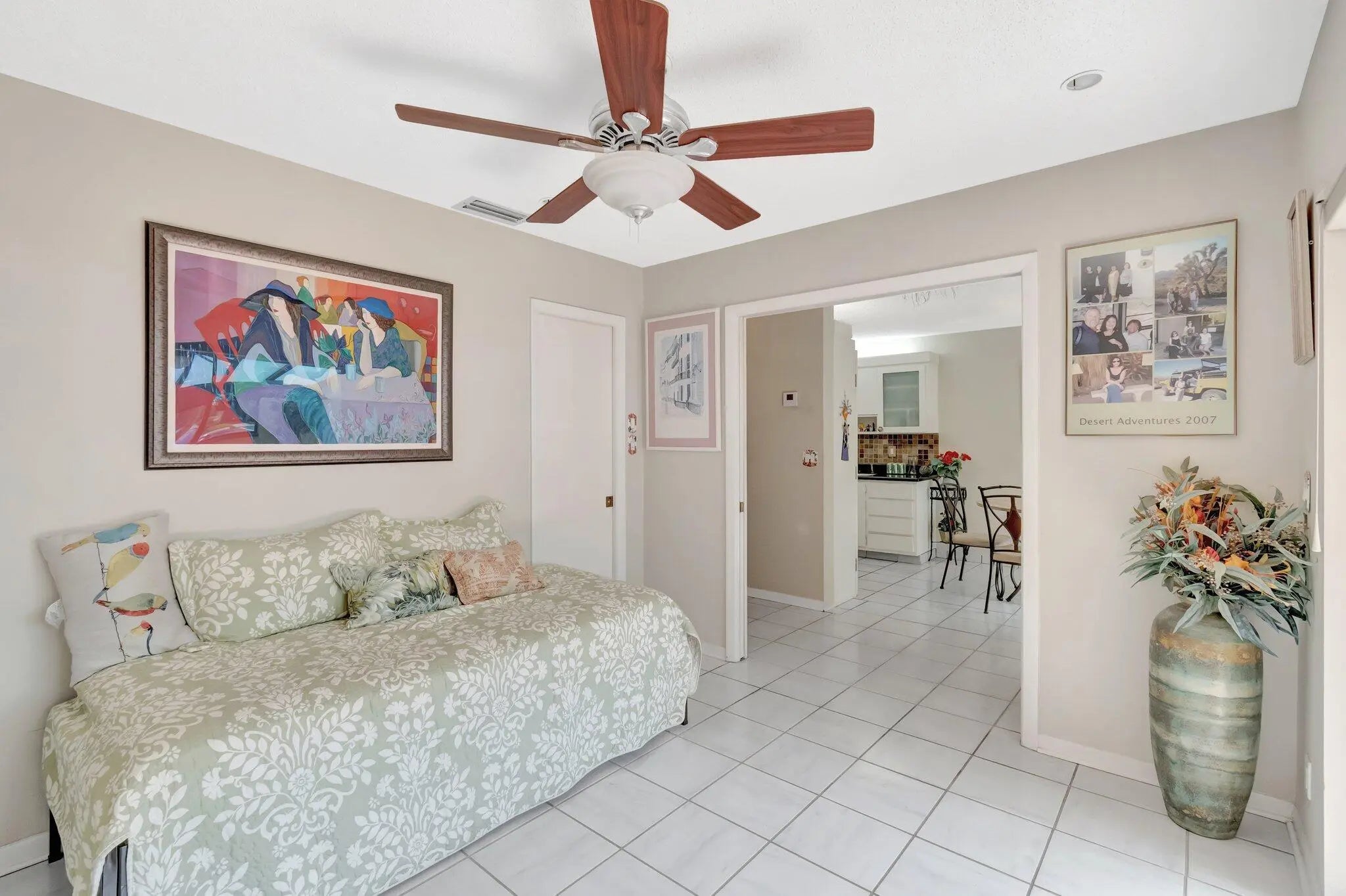 Welcome to this spacious 2-bedroom, 2-bath villa in the vibrant 55+ community of Palm Greens at Villa Del Ray! In this home, the kitchen offers ample cabinet space and opens to the dining and living areas ideal for everyday living or entertaining. Enjoy tile flooring throughout for low-maintenance comfort. The primary suite features a walk-in closet and an en-suite bath with a walk-in shower, while the split-bedroom layout ensures privacy for guests. Relax on the enclosed patio with tranquil garden views. Assigned parking is just steps from your door. Enjoy a state-of-the-art clubhouse, resort-style pool, tennis, fitness center, walking trails, and more. Conveniently located near shopping, dining, golf, and the beaches of Downtown Delray.