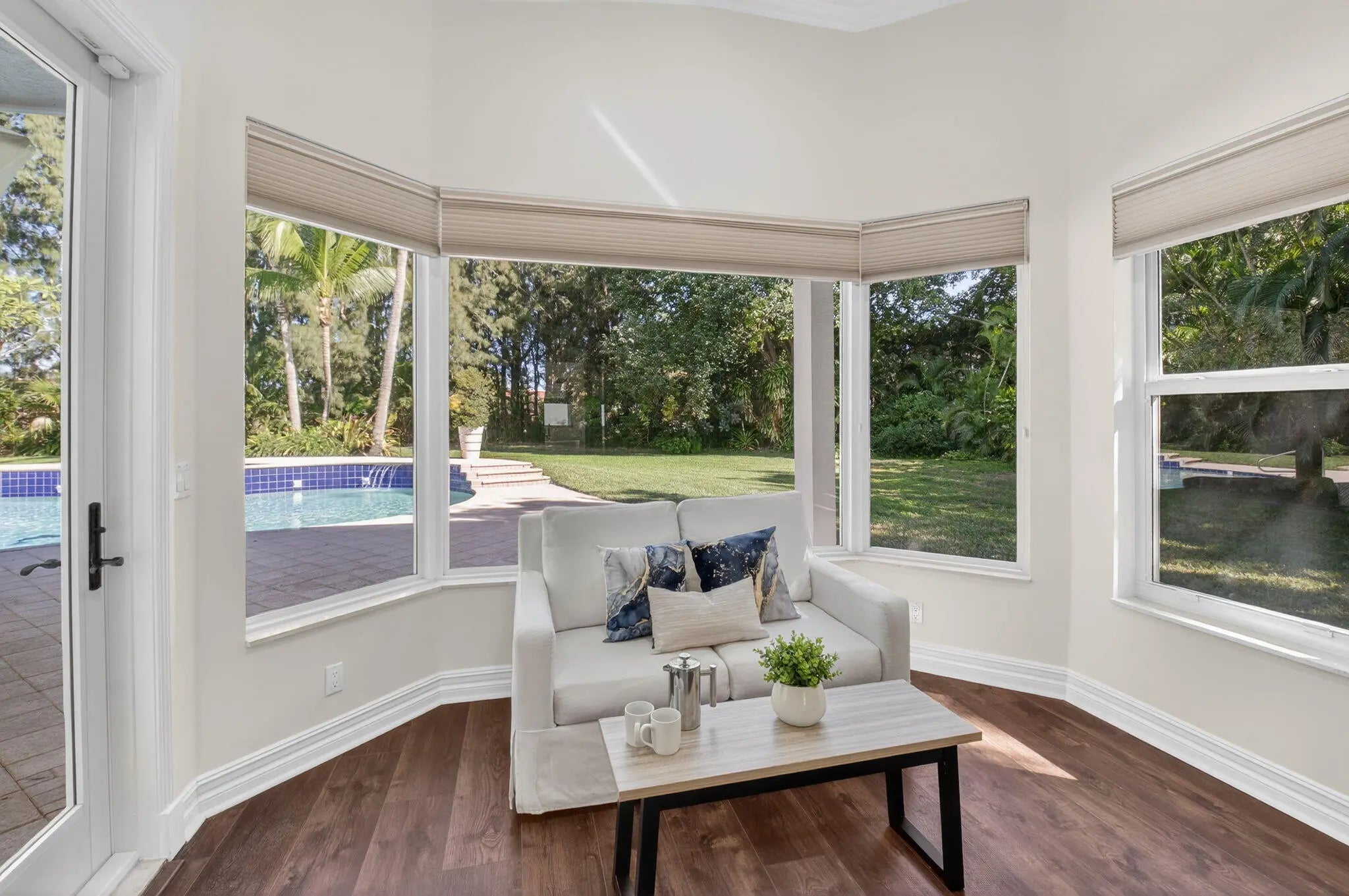 Brand NEW ROOF and NEW Exterior Paint! Luxurious 6-bed, 6.1-bath custom estate including an attached guest house. This nearly 6,300 SF single-story home is situated on a 1-acre lot within the secure, guard-gated Foxe Chase community. Just minutes from the vibrant downtown Delray Beach—a highly desirable small beach town boasting one of the nation's top-rated beaches—this property offers an ideal blend of privacy and accessibility. Zoned for the acclaimed Omni Middle and Spanish River High Schools in Boca Raton, it ensures top-tier education options. The expansive layout features a lavish primary suite with a cozy sitting area and spa-inspired bathroom, while the attached 2-bed/2-bath guest house includes its own living space, kitchenette, and tranquil Japanese garden. Entertain with ease in the chef's kitchen, complete with a walk-in pantry, double ovens, and an impressive 700-bottle wine cellar. The expansive, fully fenced backyard is a paradise, showcasing a resort-style saltwater heated pool and jacuzzi beneath swaying palm trees.(Additional highlights include a whole-house generator with a 500-gallon propane tank, impact windows, a 3-car garage with a Tesla charger. Located just moments from Atlantic Avenue, the beach, and Mizner Park, this one-of-a-kind property is perfect for those seeking luxury and lifestyle in a prime location. DISCLAIMER: Information published or otherwise provided by the listing company and its representatives including but not limited to prices, measurements, square footages, lot sizes, calculations, statistics, and videos are deemed reliable but are not guaranteed and are subject to errors, omissions or changes without notice. All such information should be independently verified by any prospective purchaser or seller. Parties should perform their own due diligence to verify such information prior to a sale or listing. Listing company expressly disclaims any warranty or representation regarding such information.
