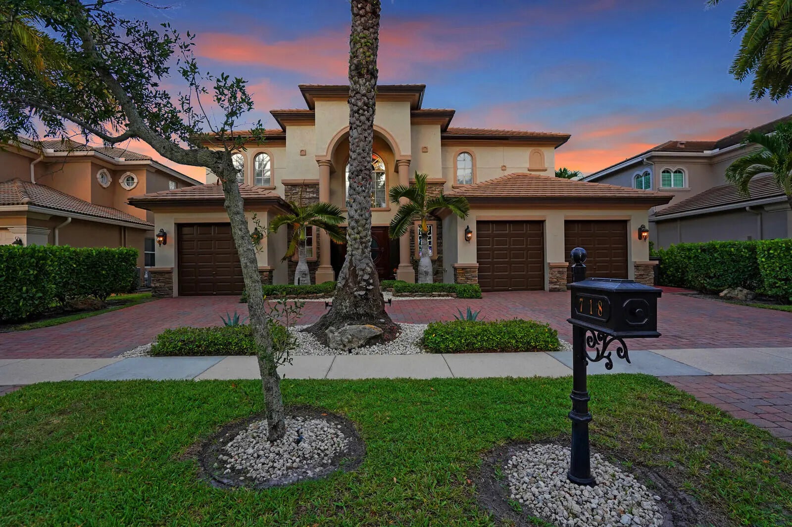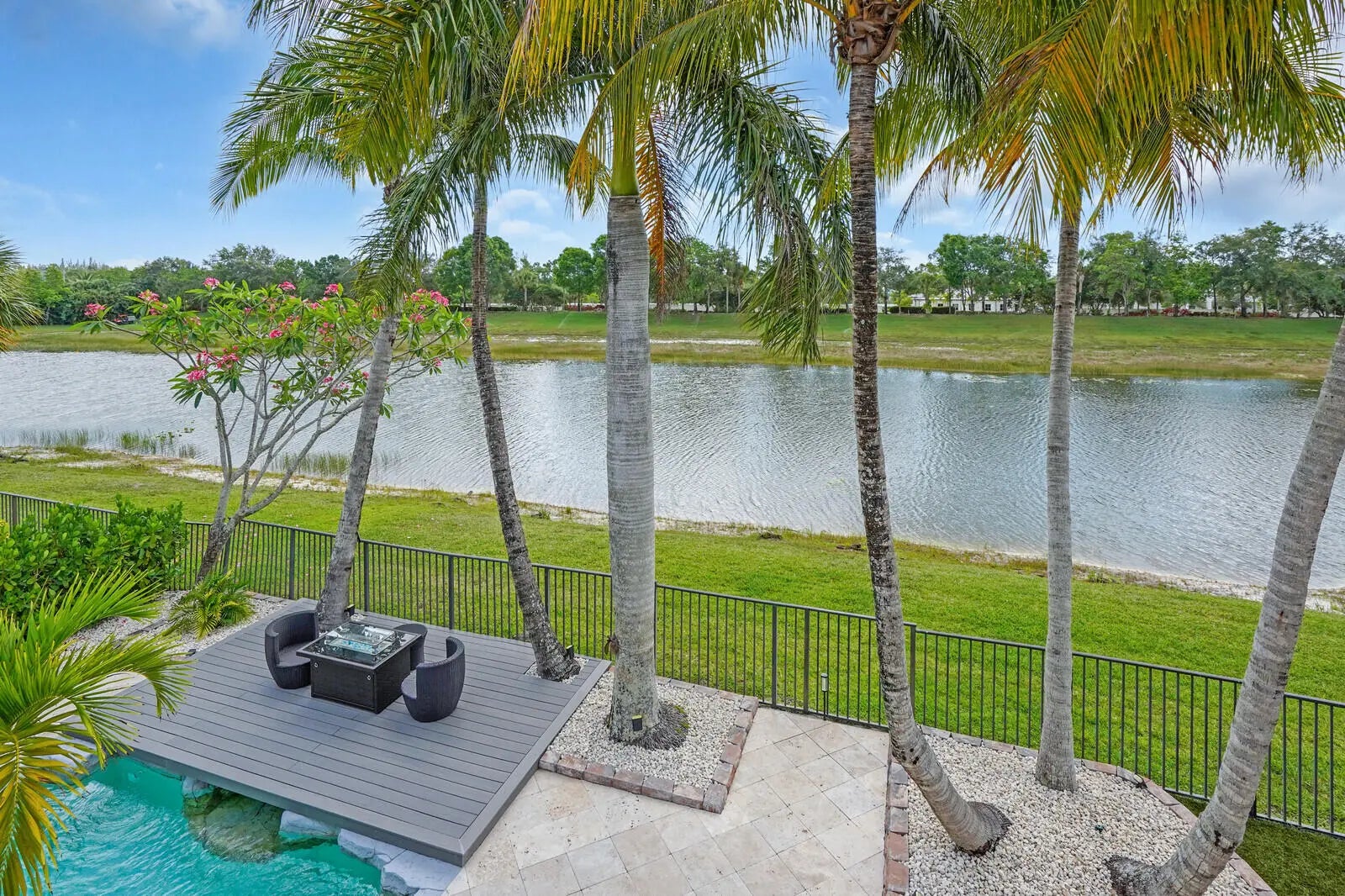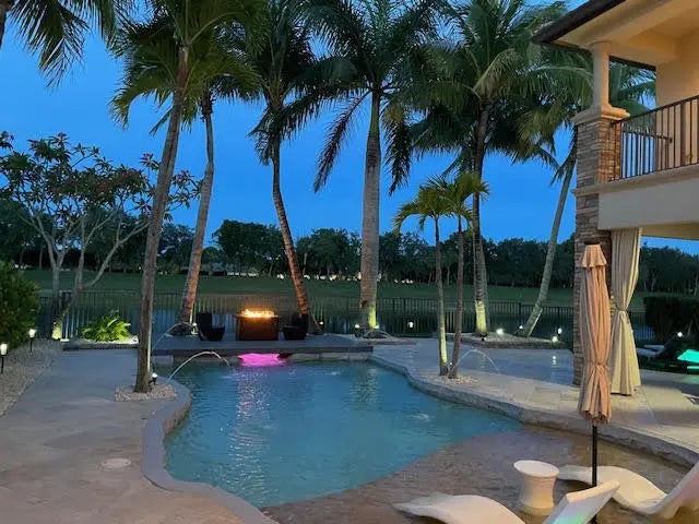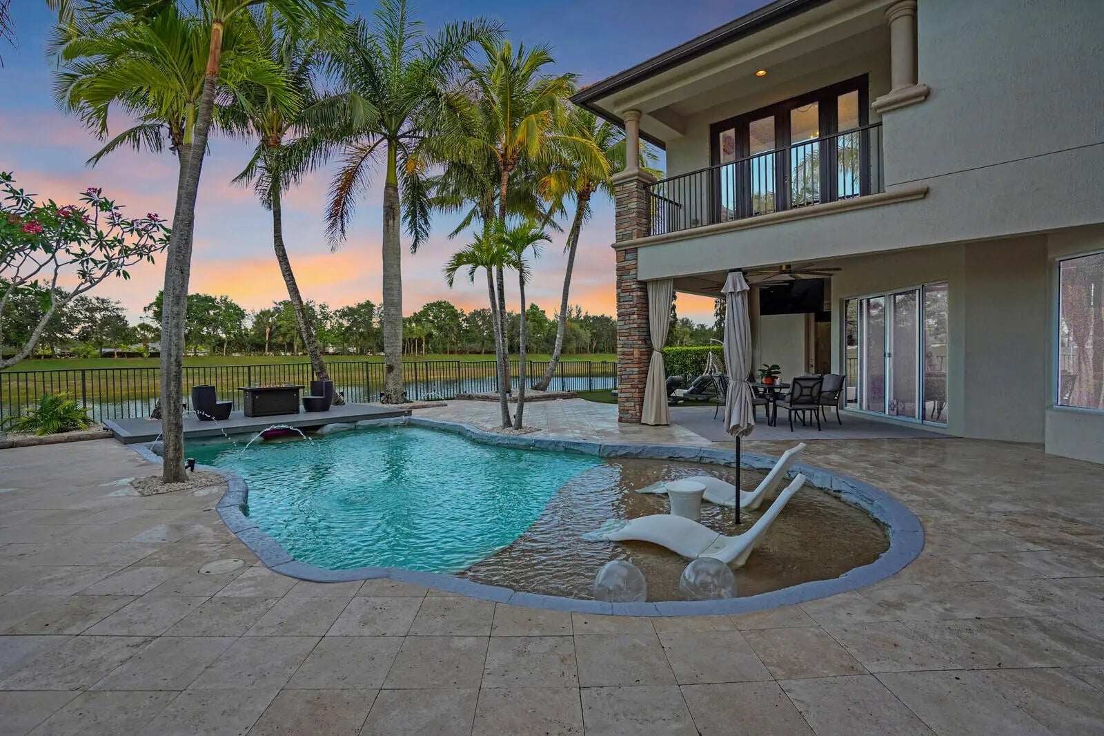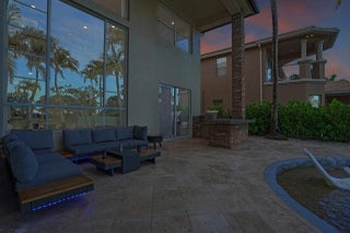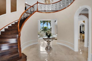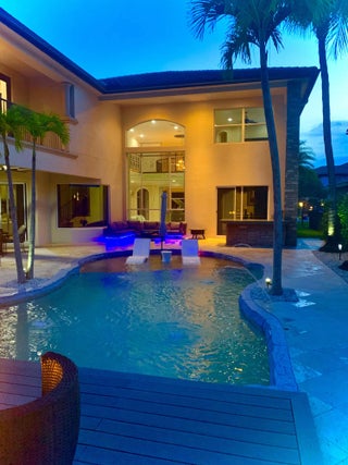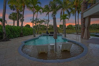 Welcome to the highly coveted, guard-gated enclave of Wellington View, an elegant lakefront estate that seamlessly blends timeless architectural design with luxurious modern enhancements. This distinguished residence is a statement in refined living, serene water views, and exceptional craftsmanship throughout. A grand double door entry with decorative glass sidelights opens to a dramatic two-story foyer, where a sweeping wrought iron & wood staircase sets the tone for the home's sophisticated interior. Marble floors on the main level and rich hardwood upstairs create a warm, luxurious ambiance, enhanced by custom millwork and thoughtful architectural details at every turn. Designed for the most discerning chef and entertainer, the gourmet kitchen is a showpiece, featuring upgraded ... cabinetry, granite countertops, premium stainless-steel appliances, a 180-bottle wine cooler, and an integrated water filtration system. The open concept living areas flow effortlessly, providing an ideal backdrop for elegant entertaining or relaxed everyday living, all while capturing tranquil lake vistas. The expansive primary suite is a private retreat, complete with a tray ceiling, spa inspired bathroom, and custom-designed walk-in wardrobe systems with elegant built-in cabinetry and display features. French doors lead to a secluded balcony where panoramic lake views offer the perfect start and end to your day. The ensuite bath pampers with a jetted soaking tub, oversized frameless glass shower, and dual granite vanities. Step outside into your own resort style oasis. The professionally landscaped backyard features a custom outdoor kitchen with granite countertops, lush tropical foliage, and a saltwater pool with sun shelf, travertine decking, and a raised lounge platform ideal for sun-soaked afternoons or evening gatherings under the stars. The landscape is beautifully illuminated at night with custom lighting, creating a magical ambiance and highlighting the property's elegant exterior and serene waterfront setting. Recent upgrades include a newer pool heater, a new pool pump motor, and a state-of-the-art salt system for seamless, low maintenance enjoyment. Additional appointments include high-efficiency A/C units installed in 2020, each equipped with advanced UV purification systems to ensure optimal indoor air quality and climate comfort. With a stunning fieldstone-accented façade and exceptional curb appeal, 718 Edgebrook offers a rare opportunity to own a home that blends privacy, prestige, and convenience in the highly sought-after, gated community of Wellington View. Built by renowned luxury homebuilder Toll Brothers, this elegant estate is ideally located just minutes from Wellington's world-class equestrian venues, championship golf courses, fine dining, upscale shopping, top-rated hospitals, and the Wellington Green Mall. Residents enjoy exclusive access to a host of premium amenities including a clubhouse, fitness center, tennis, pickleball and basketball courts, a tot lot, scenic walking trails, and serene lake views. Wellington View offers a 24-hour manned gate for security, beautifully maintained surroundings, and low HOA fees that include basic cable and monthly alarm monitoring. Its central location in Palm Beach County places you within a short drive of CityPlace, Palm Beach International Airport, Palm Beach Gardens, Boca Raton, and Delray Beachmaking this one of the most desirable addresses in the area.