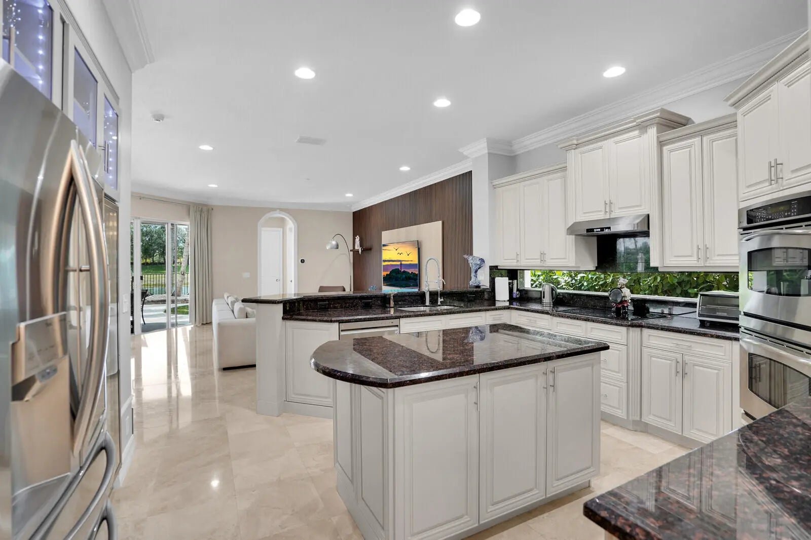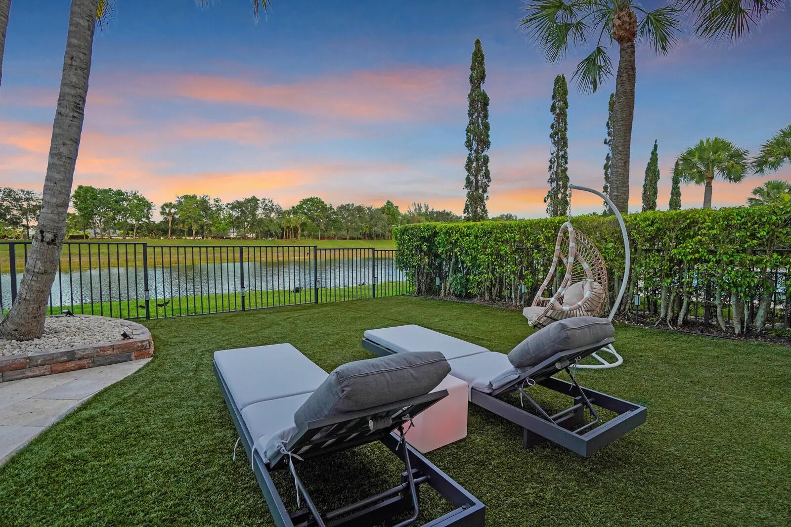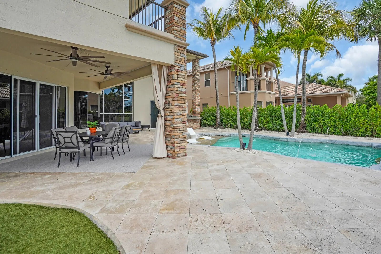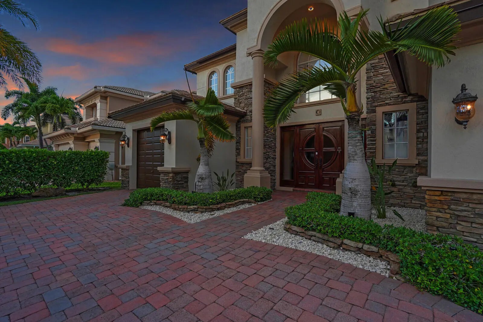 Welcome to the highly coveted, guard-gated enclave of Wellington View, an elegant lakefront estate that seamlessly blends timeless architectural design with luxurious modern enhancements. This distinguished residence is a statement in refined living, serene water views, and exceptional craftsmanship throughout. A grand double door entry with decorative glass sidelights opens to a dramatic two-story foyer, where a sweeping wrought iron & wood staircase sets the tone for the home's sophisticated interior. Marble floors on the main level and rich hardwood upstairs create a warm, luxurious ambiance, enhanced by custom millwork and thoughtful architectural details at every turn. Designed for the most discerning chef and entertainer, the gourmet kitchen is a showpiece, featuring upgraded ... cabinetry, granite countertops, premium stainless-steel appliances, a 180-bottle wine cooler, and an integrated water filtration system. The open concept living areas flow effortlessly, providing an ideal backdrop for elegant entertaining or relaxed everyday living, all while capturing tranquil lake vistas. The expansive primary suite is a private retreat, complete with a tray ceiling, spa inspired bathroom, and custom-designed walk-in wardrobe systems with elegant built-in cabinetry and display features. French doors lead to a secluded balcony where panoramic lake views offer the perfect start and end to your day. The ensuite bath pampers with a jetted soaking tub, oversized frameless glass shower, and dual granite vanities. Step outside into your own resort style oasis. The professionally landscaped backyard features a custom outdoor kitchen with granite countertops, lush tropical foliage, and a saltwater pool with sun shelf, travertine decking, and a raised lounge platform ideal for sun-soaked afternoons or evening gatherings under the stars. The landscape is beautifully illuminated at night with custom lighting, creating a magical ambiance and highlighting the property's elegant exterior and serene waterfront setting. Recent upgrades include a newer pool heater, a new pool pump motor, and a state-of-the-art salt system for seamless, low maintenance enjoyment. Additional appointments include high-efficiency A/C units installed in 2020, each equipped with advanced UV purification systems to ensure optimal indoor air quality and climate comfort. With a stunning fieldstone-accented façade and exceptional curb appeal, 718 Edgebrook offers a rare opportunity to own a home that blends privacy, prestige, and convenience in the highly sought-after, gated community of Wellington View. Built by renowned luxury homebuilder Toll Brothers, this elegant estate is ideally located just minutes from Wellington's world-class equestrian venues, championship golf courses, fine dining, upscale shopping, top-rated hospitals, and the Wellington Green Mall. Residents enjoy exclusive access to a host of premium amenities including a clubhouse, fitness center, tennis, pickleball and basketball courts, a tot lot, scenic walking trails, and serene lake views. Wellington View offers a 24-hour manned gate for security, beautifully maintained surroundings, and low HOA fees that include basic cable and monthly alarm monitoring. Its central location in Palm Beach County places you within a short drive of CityPlace, Palm Beach International Airport, Palm Beach Gardens, Boca Raton, and Delray Beachmaking this one of the most desirable addresses in the area.