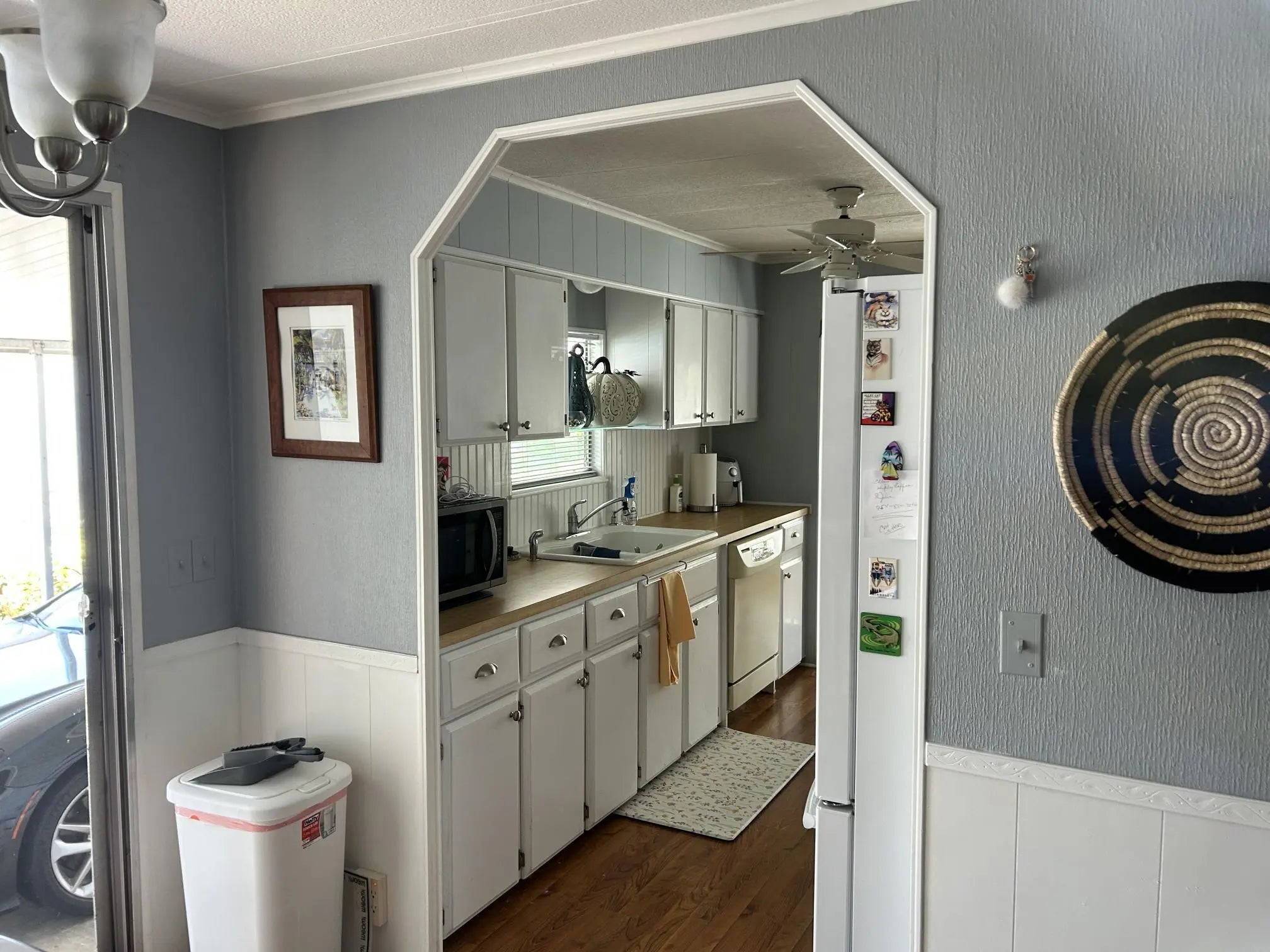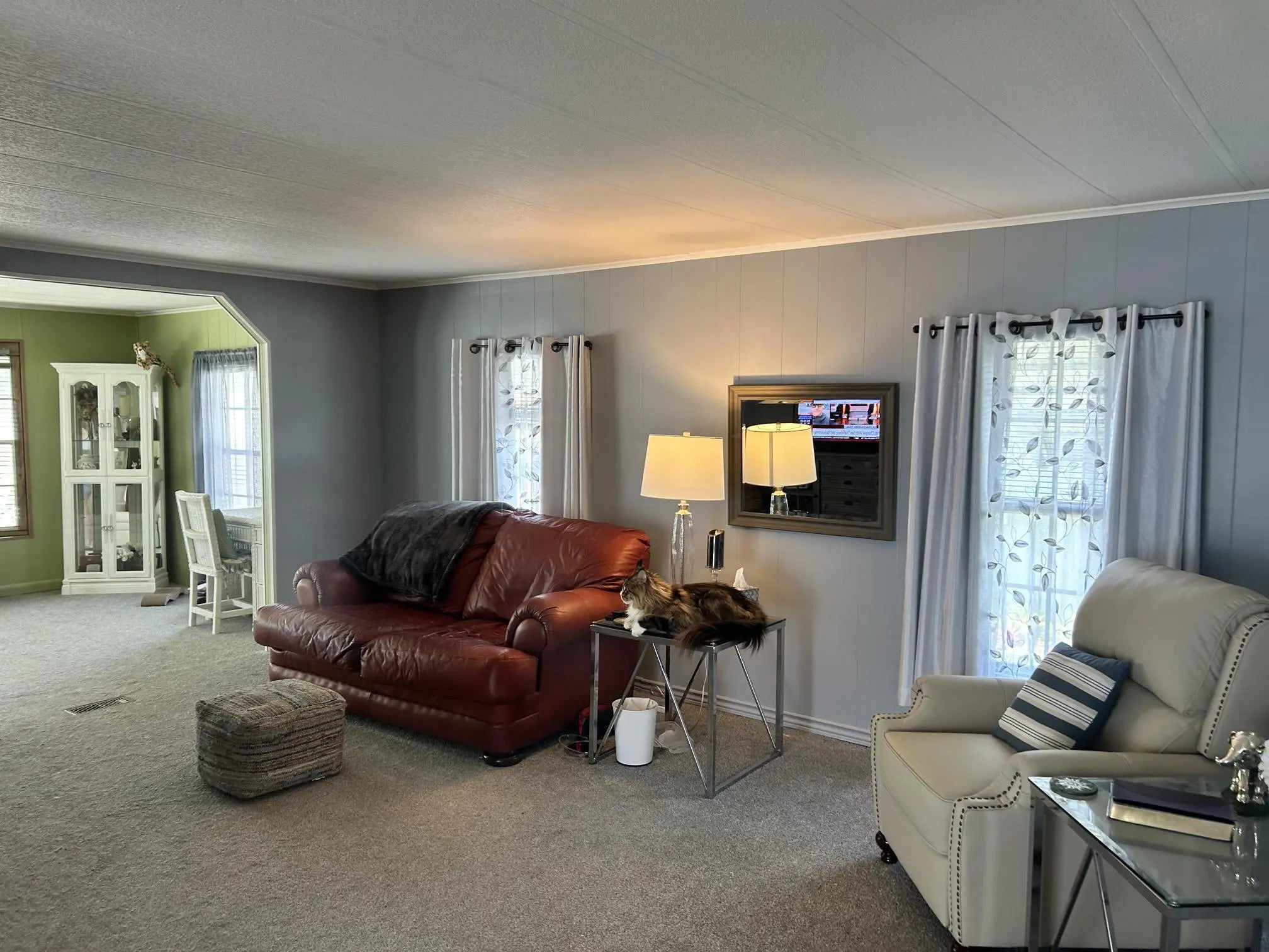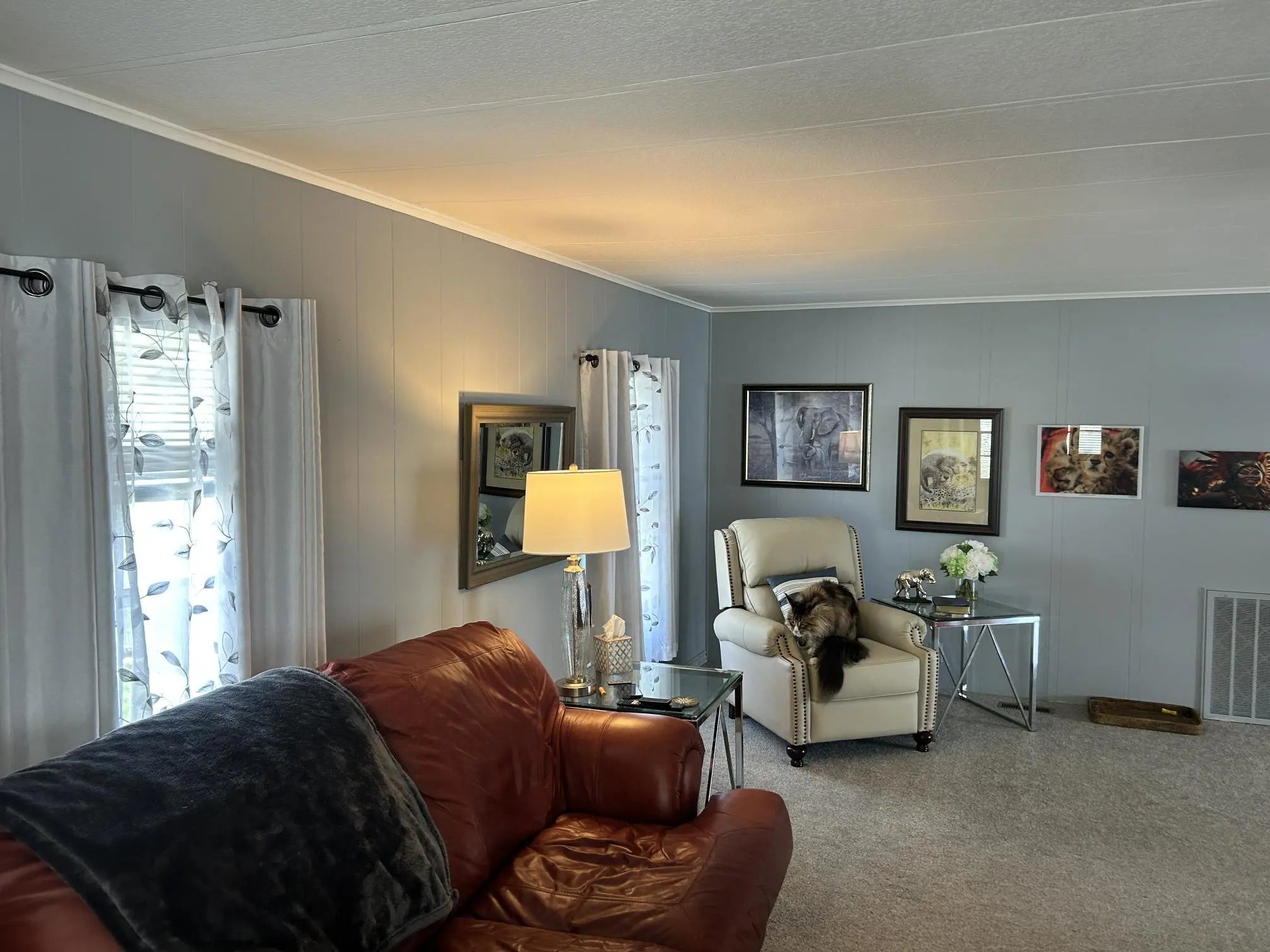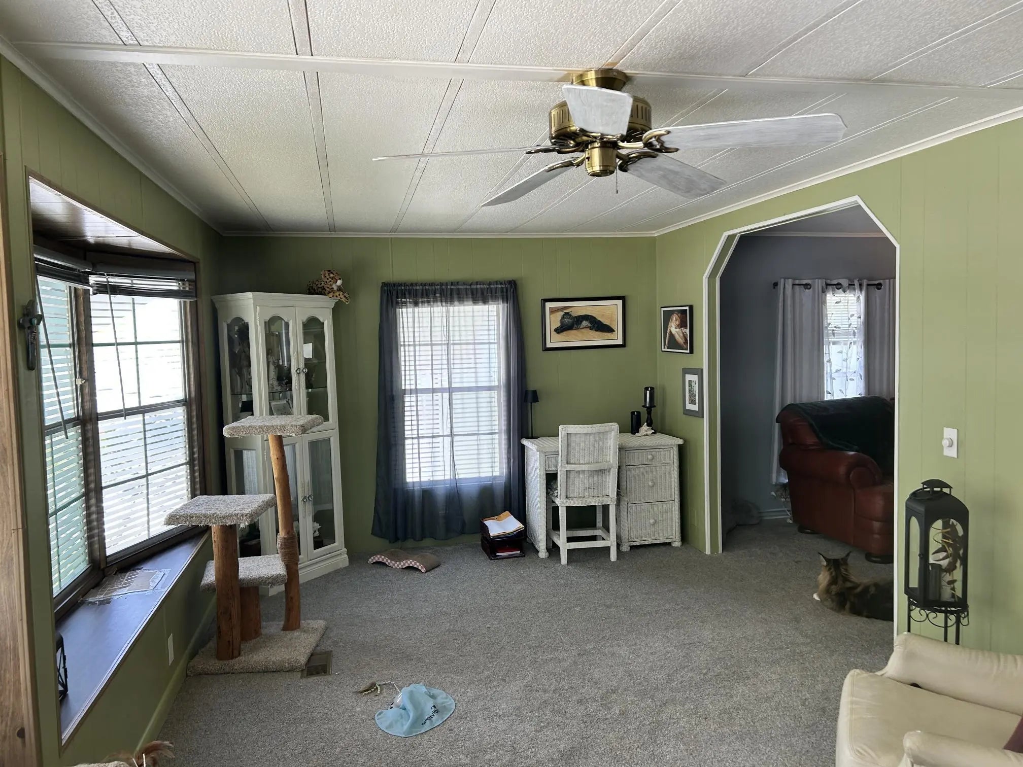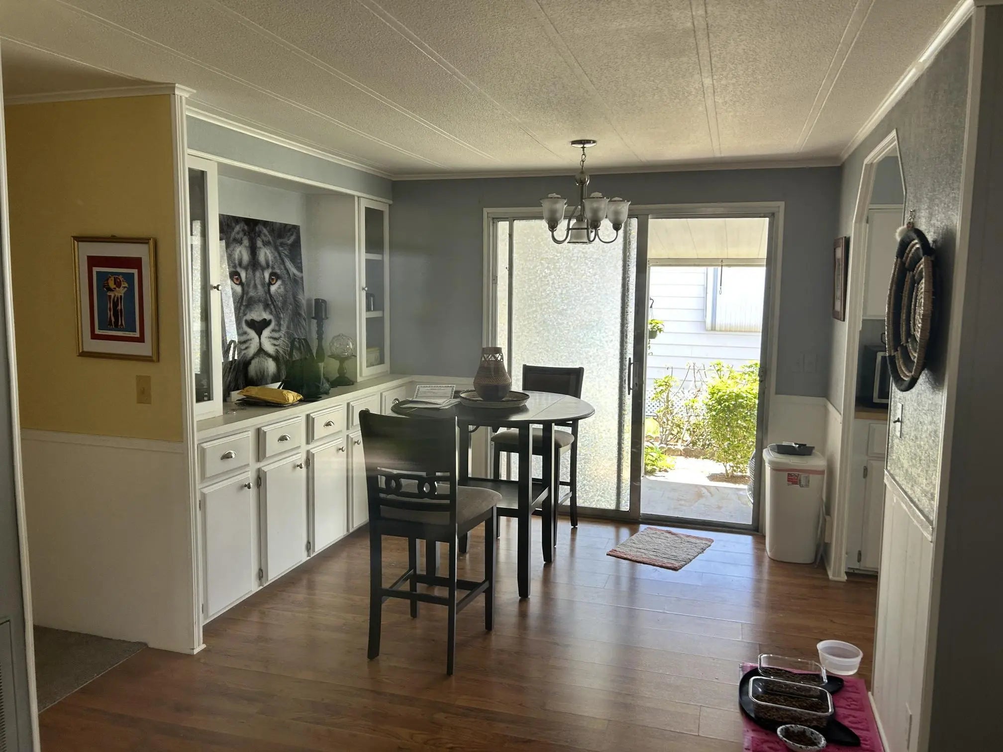 Spacious & Stylish 2 Bed, 2 Bath Home in Premier 55+ Community - Must See! Welcome to this large, tastefully furnished 2 bedroom, 2 bath home ideally situated near the front of the community for easy access. Enjoy not one but two inviting living areas perfect for relaxing or entertaining, plus a formal dining room with built-in cabinetry for added charm and storage. The expansive master suite features an enormous walk-in closet and serene views of the pond from both the bedroom and back patio. The well-designed galley kitchen includes a built-in wet bar, perfect for hosting guests. Stylish laminate flooring runs through the entry, kitchen, and dining areas, while cozy carpet adds warmth to the living room and bedrooms. Recent updates include a newer metal roof and newer AC unit, offering peace of mind for years to come. Additional highlights include a Large carport with extra storage shed, Double bay windows at the front and rear of the home Quiet backyard space with peaceful pond views. This home has it allspace, style, comfort, and convenience. Don't waithomes like this don't last long!