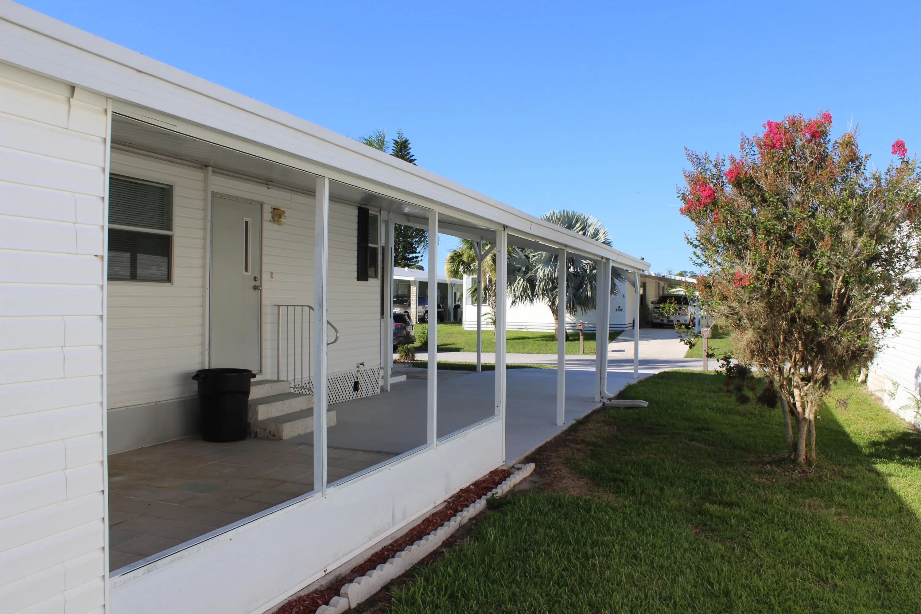 Welcome to 6731 Sinsonte Ct, a fully furnished 2-bedroom, 2-bath home in the 55+ community of Spanish Lakes Fairways in Fort Pierce. This well-kept home includes all major appliances—refrigerator, stove, dishwasher, microwave, washer and dryer—plus a 4-year-old A/C unit for year-round comfort. The open layout features a bright living/dining area, a full kitchen, and a private primary suite with ample closet space. The guest room is perfect for visitors, hobbies, or a home office. Enjoy relaxing on the screened-in porch and take advantage of the community's resort-style amenities: golf, tennis, pools, clubhouse, fitness center, and more—all included in the land lease. Perfect as a seasonal escape or full-time home in a vibrant 55+ neighborhood. Schedule your showing today!