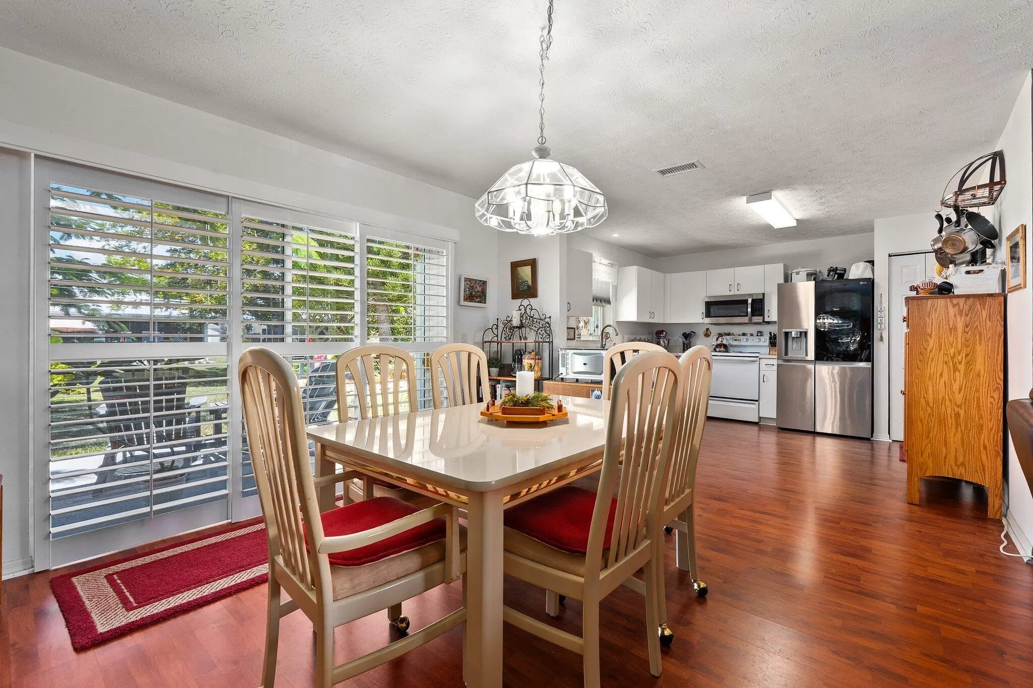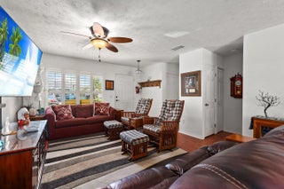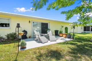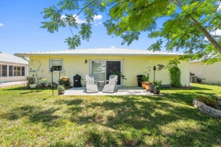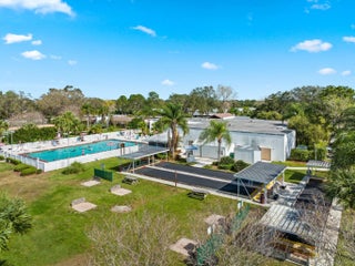 Located in the Active 55+ community of Spanish Lakes Fairways. This CBS two bedroom, two bath home features wood laminate flooring and plantation shutters throughout. Metal roof and accordion hurricane shutters is an added bonus! Land lease fee not only includes access to FREE golf and lawn service there are numerous other activities to enjoy! Spanish Lakes Fairways is within a few short minutes of shopping, restaurants, banks and churches.