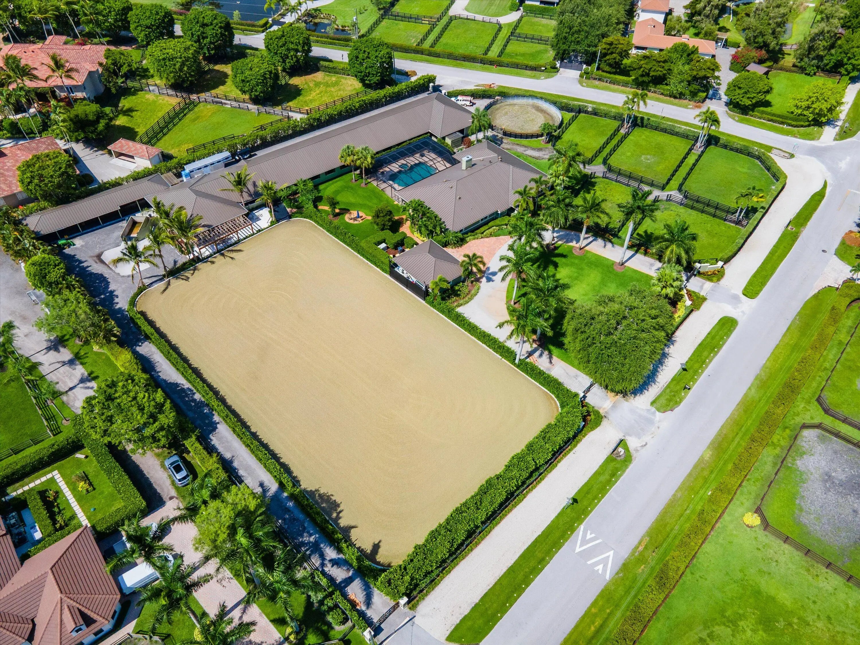 This farm is set up and ready for business with up to 30 stalls, 12 cross ties, a tack room, office, bathroom, 2 laundry areas, feed room, and a lunging ring. There are 5 paddocks and 2 large covered storage areas great for hay, shavings, or whatever you need. The riding ring was built just a year ago 220' x 120' with an ebb and flow system that keeps the footing perfect all day. Everything was designed to be efficient and easy to work out of, making it ideal for running a solid-sized horse business.