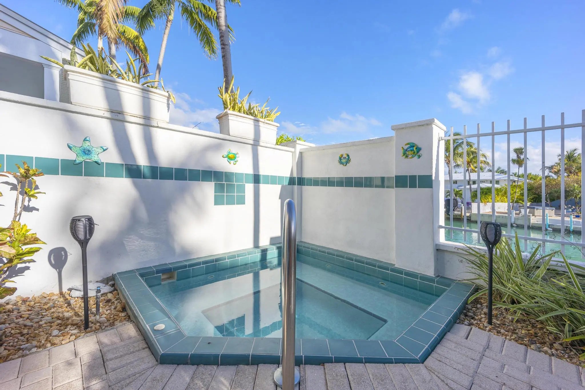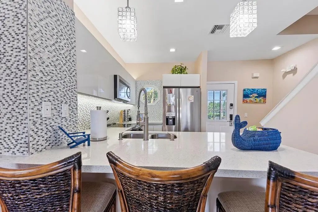 Become part of the renowned Hawks Cay Resort while enjoying some of the highest rental income potential in the Florida Keys. This beautifully upgraded two-bedroom waterfront villa features quartz countertops, modern kitchen cabinets, stainless steel appliances, and a stunning custom bathroom on the second level, complete with an oversized walk-in shower. The villa offers unique personal touches not commonly found on the property, including a custom tile backsplash throughout the kitchen, an oversized kitchen bar, and upgraded lighting and fans throughout. Elegant porcelain flooring spans the entire villa, enhancing its sophisticated décor. In the private courtyard, relax in your own splash spa pool, complete with custom tile work and a fountain, all with direct views of the water!