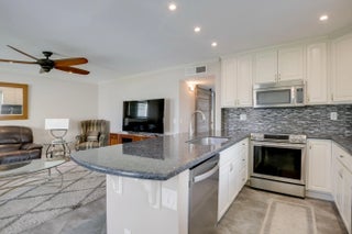 You will love this move in ready, fully furnished 2 bedroom 2 bath beautifully updated unit in the desirable active 55+ community of Kings Point. Lots of natural light and a golf course view. The kitchen has granite counters, and stainless steel appliances. Enter the master suite through the sliding barn door. There is plenty of space with a walk in closet and large vanity. 2nd bedroom leads to a spacious screened in balcony and a storage room with a full size washer and dryer. Diagonal tile floors and crown molding throughout. Impact windows and plenty of counter and cabinet space. There is so much to do in this community, you will never get bored! 2 golf courses, indoor and outdoor pools, shuffleboard, pickleball, theatre, restaurants and the list goes on. community. They have a shuttle that can take you around for your convenience. Building has a lift to assist with groceries or someone who has a hard time with stairs.