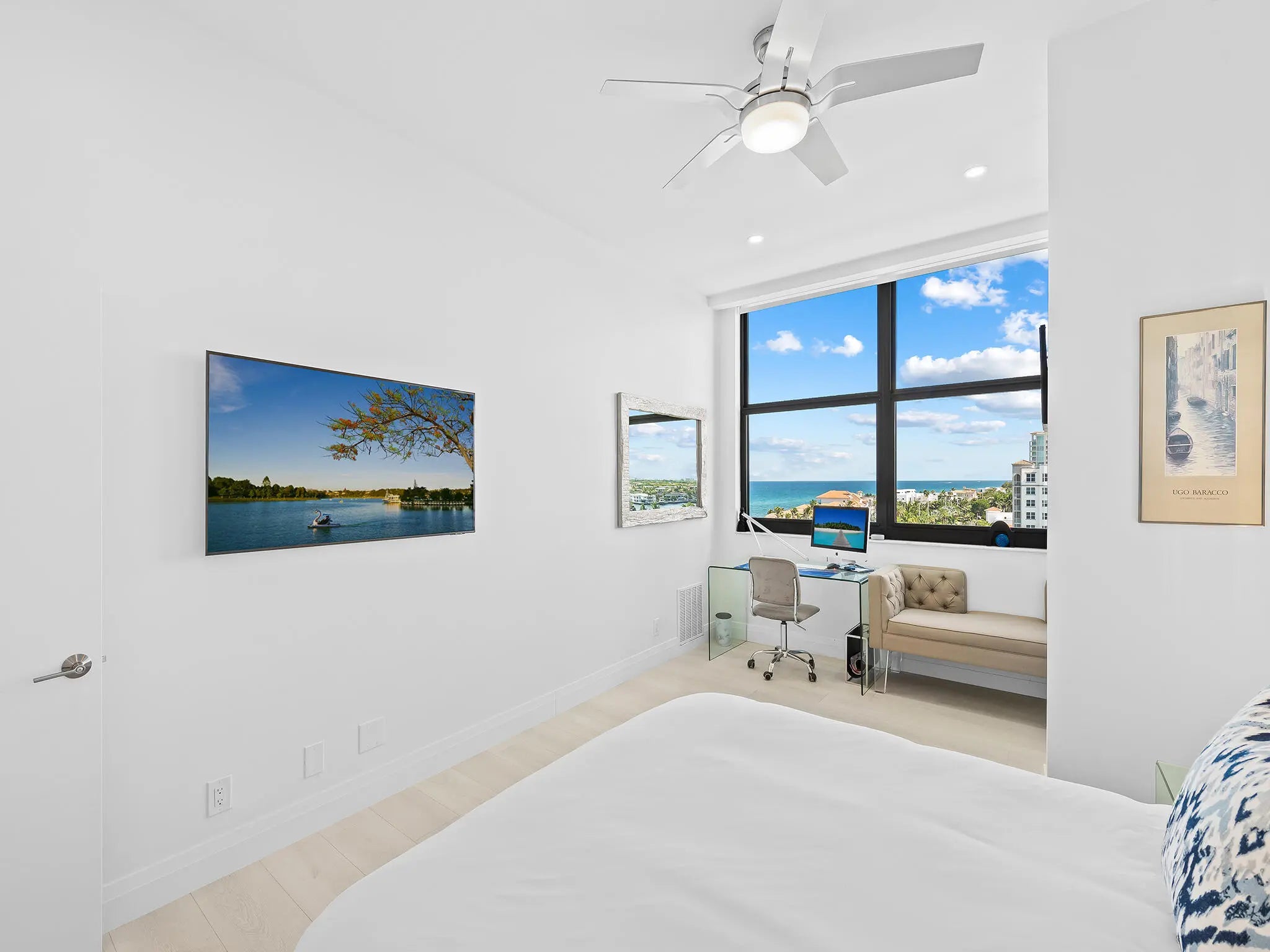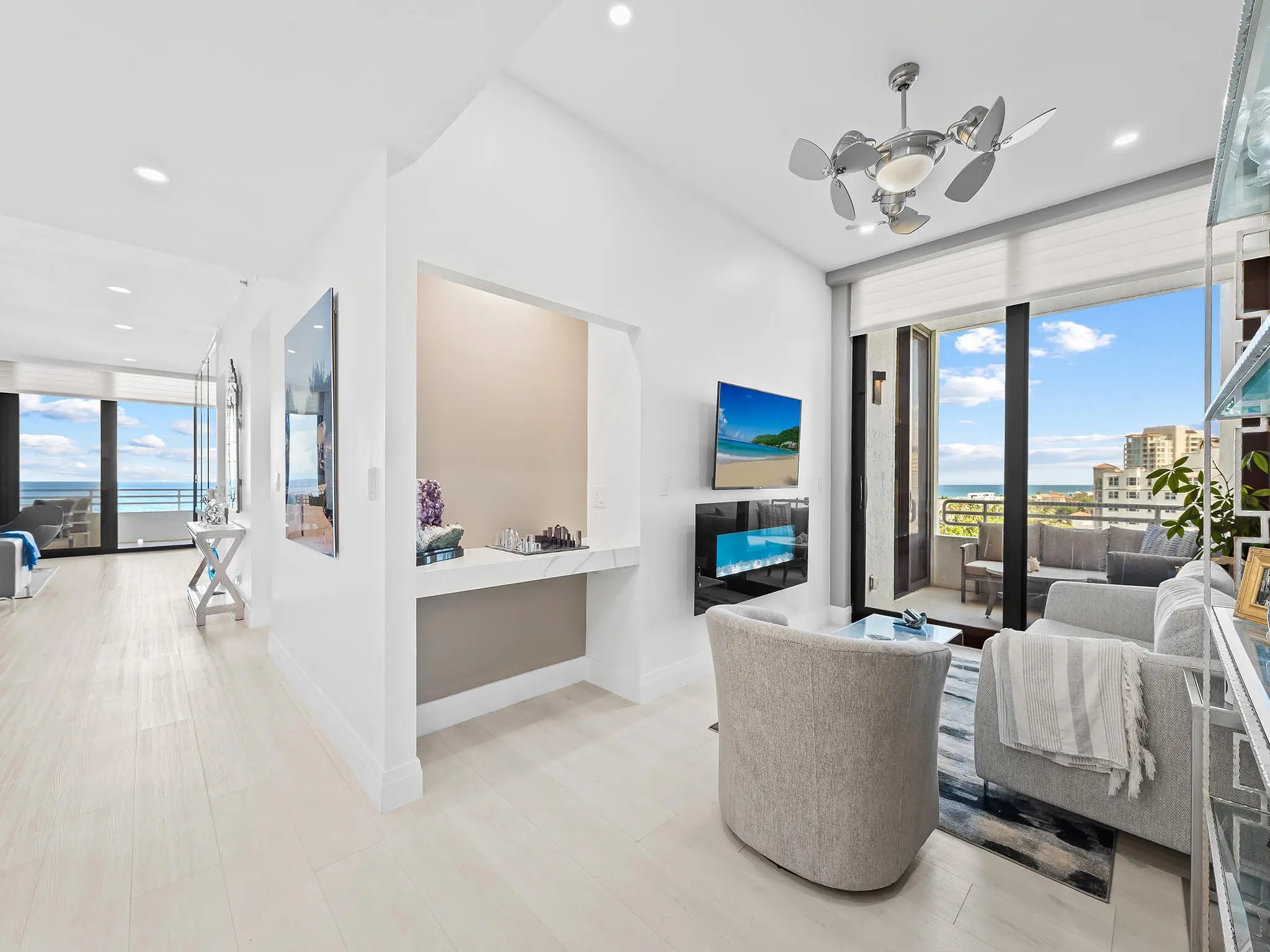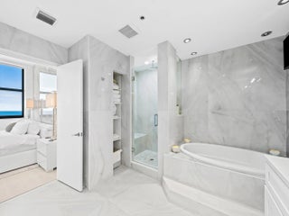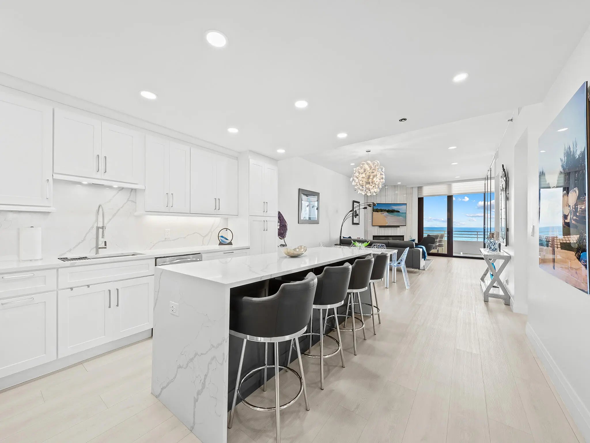 Unobstructed Ocean Views from this totally redesigned turnkey Lower Penthouse residence! This beautiful South East corner 2-Bed, 2-Bath, features an open light-filled floor plan with high ceilings and water views from every room, open kitchen island, S/S appliances, all impact sliding doors and windows, walk in closets, expansive private covered balconies for an outdoor retreat showcasing fabulous ocean, city & sunrises views! Casuarina has a renovated lobby, newly installed hallways, private beach access with chairs waiting at the beach, heated large pool, tennis and pickleball, 24 hr manned security, social room with kitchen, fitness center, card room, shuffleboard, BBQ area, extra storage area with A/C covered, management office and garage parking with gated access