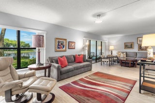 Panoramic Lake Views Await! Enjoy stunning lakefront living in this well-maintained end unit with breathtaking views of the lake, fountain, and golf course. This 2BR/2BA + den residence features a bright, open layout, spacious eat-in kitchen with newer appliances, and tranquil water views from nearly every room—including the screened porch. Nestled in a prestigious gated community with an 18-hole executive golf course, 5 Har-Tru tennis courts, 2 resort-style pools, and a newly renovated clubhouse with café, fitness, card room, library, entertainment & year-round activities—all without high equity fees. Manned gate for peace of mind, minutes to beaches, dining & shopping.