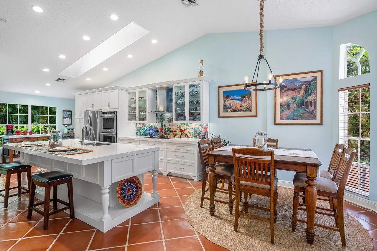 Beautiful and Unique 4 bed, 2 bath one story home lovingly cared for by the same family for over 30 yrs. Nestled among the mature trees, the house offers privacy in a park like setting. The roofed & screened patio has southern exposure and overlooks a lush fully fenced backyard with room for a pool. Bonus Metal roof, Lennox A/C 2024, long driveway and well irrigation system. Spectacular kitchen is gem of the house! It has a skylight, white quartz countertops, upgraded white wood, lighted cabinetry with glass doors and under cabinet lighting, an abundance of storage and pull out drawers, a large island with built in storage, a Kitchenaid cook top range, built in double ovens and dishwasher, a cafe door refrigerator, and a stainless steel sink. The tile back splash is a work of art......con by a renowned artist. A hurricane glass sliding door opens to the patio, making it easy to entertain. A separate laundry room with newer washer and dryer. The open floor plan has 16" Saltillo tile which is installed on the diagonal throughout the house. Cathedral ceilings and large windows provide an abundance of natural light. The dining room has floor-to-ceiling windows, the living room has a "disappearing" sliding glass door opening to the patio. The master bedroom has plantation bi-fold shutters opening to the patio. The second bedroom has a customized "California closet", and the third bedroom has cross-ventilation windows. French doors open to a fourth bedroom, office, or den, which is separate from the other 3 bedrooms. The two bathrooms have beautiful wood cabinetry and glass-enclosed showers. The master bath has a Roman tub beneath a large picture window, and a walk-in customized "California closet". No HOA in this family and animal-friendly community.