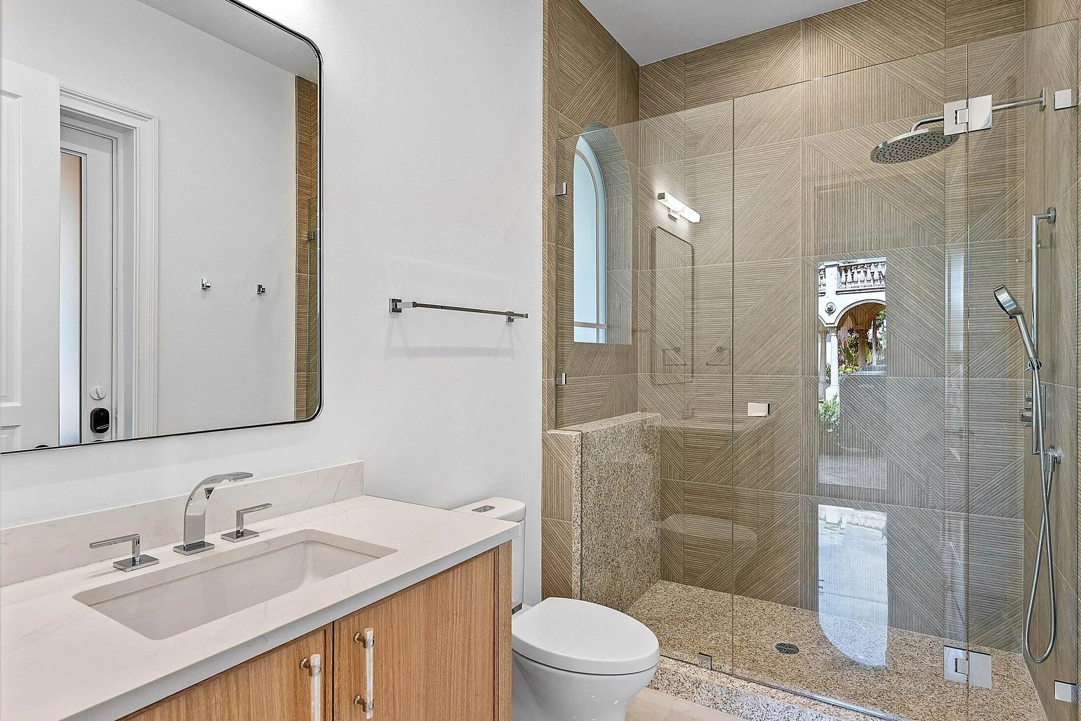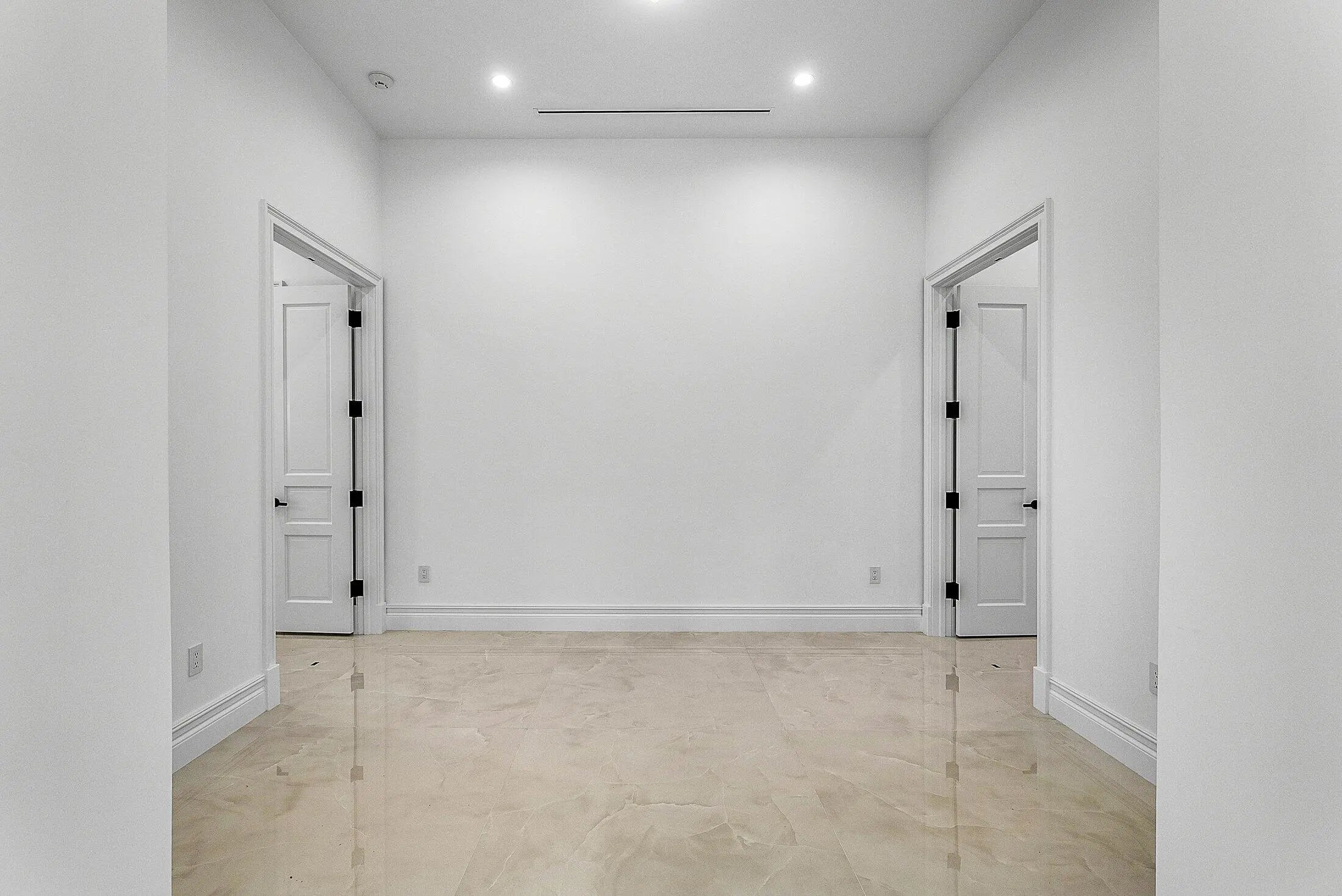 Situated at the end of a quiet cul-de-sac in East Delray's highly coveted Lake Ida neighborhood, this extraordinary custom estate presents a rare opportunity to enjoy uncompromising privacy, architectural excellence, and proximity to all the best of downtown and the beach. Enclosed behind independent gates on a lushly landscaped .57-acre lot, the home offers 7,019 square feet under air and nearly 10,000 total square feet of meticulously designed living space. Every element of the property reflects an ambitious and comprehensive renovation executed by a top-tier Palm Beach team, who reimagined the residence with a refined blend of elegance, comfort, and cutting-edge systems for modern living. The grand two-story residence includes seven ensuite bedrooms, seven full and two half baths, and a thoughtful array of bonus spaces such as a gym, salon and makeup suite, wellness room, butler's pantry, and an elevator. Oversized hurricane-impact windows and doors invite natural light throughout, illuminating the rich finishes and carefully layered textures. Main living spaces are wrapped in imported 48x48 Marca Corona porcelain tile, while the dramatic foyer showcases an inlaid white oak design and a statement spiral staircase with custom railings. With an eye for both form and function, the home also includes Control4 automation, Lutron lighting, sound-insulating drywall, five new HVAC units, and a whole-house 50 kW Generac generator with a buried 1,000-gallon propane tank. At the heart of the home lies a showstopping double-island kitchen anchored by Cristallo quartzite countertops, custom cabinetry, a hand-fired clay backsplash from Italy, and a full suite of Wolf, Sub-Zero, and Miele appliances. A separate butler's kitchen offers an additional cooking station, ideal for catering or entertaining on a grand scale. The dining room, anchored by arched entryways and a sleek wet bar, sits adjacent to a spacious great room with coffered ceilings, motorized shades, and a gas fireplace clad in marble. The primary suite is its own private retreat, with French doors opening to a covered loggia, dual custom closets with LED-lit glass inlays, and a luxurious wellness wing complete with a salon, makeup studio, coffee bar, and flexible space for a spa, nursery, or sitting area. The ensuite bath evokes spa-level luxury with a 10.5' wet room featuring Dornbracht rain showers, Aquapressure massage jets, a soaking tub, Cristallo countertops with integrated sinks, and richly veined imported tile from Italy. Outside, the property feels like a private resort, with a saltwater pool and spa, updated equipment, putting green, and a fully equipped summer kitchen. The spacious loggia offers outdoor lounging and dining areas, a TV, and fans for year-round comfort. Additional highlights include a three-car garage, upstairs mechanical room, dual cabana baths, a first-floor guest suite with private loggia and entrance, and multiple balconies. This one-of-a-kind estate offers the ultimate in sophistication and convenience for buyers seeking a move-in-ready home east of Lake Ida, where privacy, scale, and quality converge just minutes from Delray's vibrant downtown, Atlantic Avenue, and pristine beaches. ***Please note: Photos with furnishings are virtually staged for illustrative purposes.*** The information published and provided including but not limited to prices, measurements, square footages, lot sizes, features, finishes, and calculations are subject to errors, omissions or changes without notice. All such information should be independently verified. All parties should perform their own due diligence to verify all information.