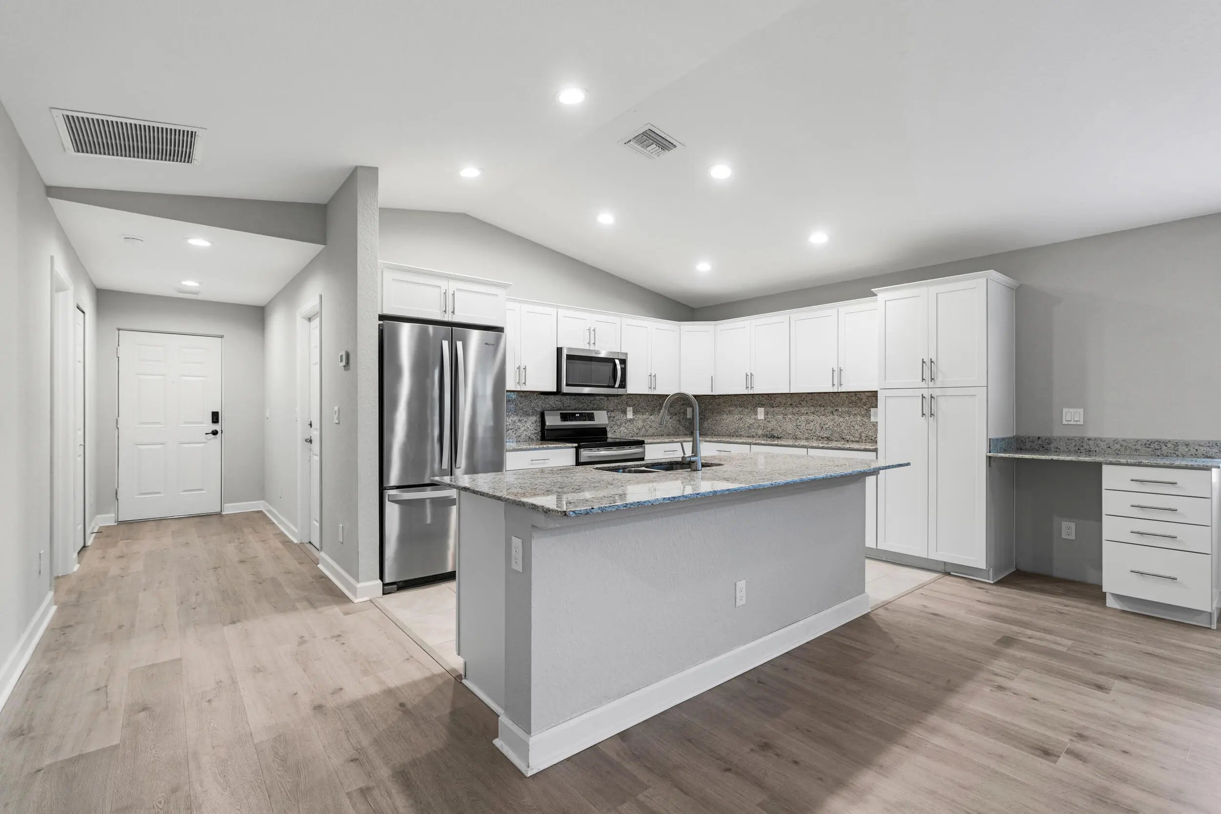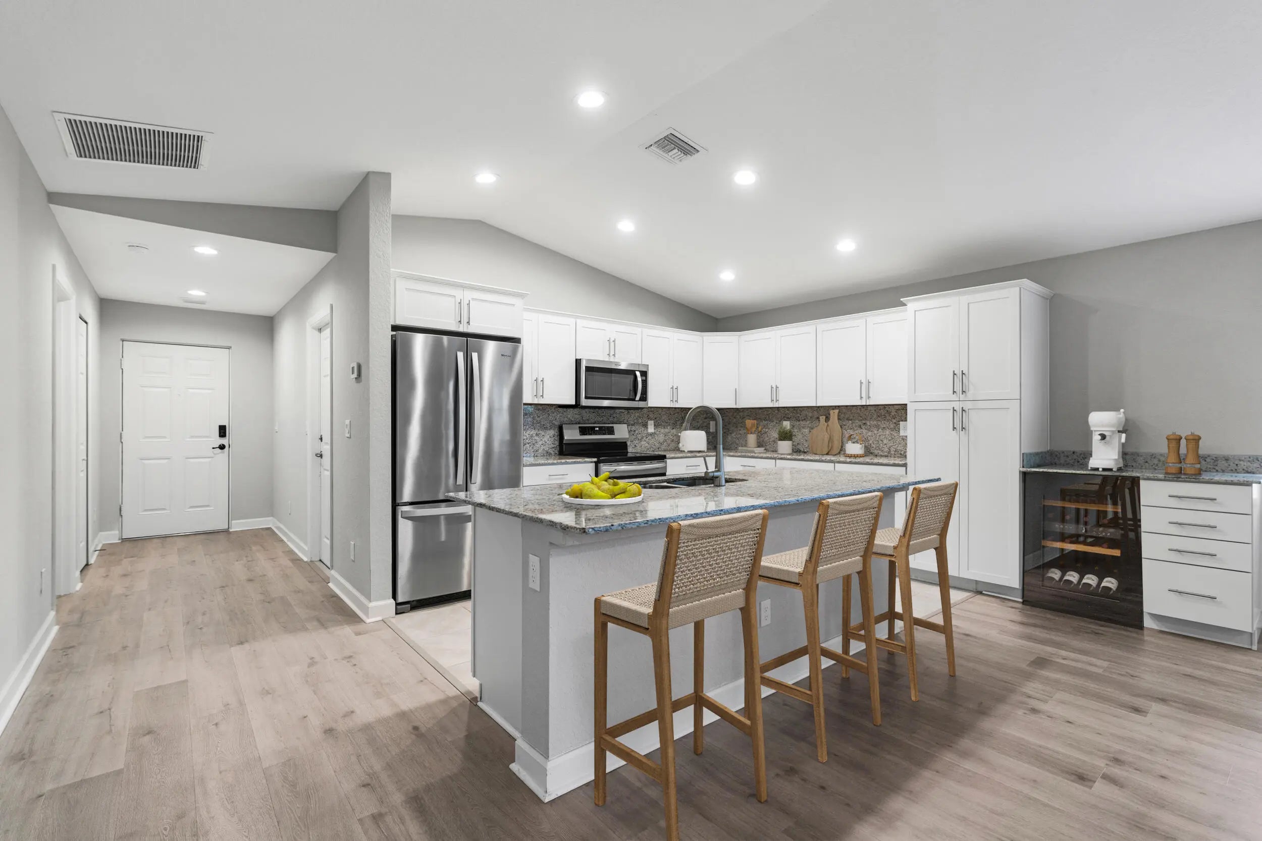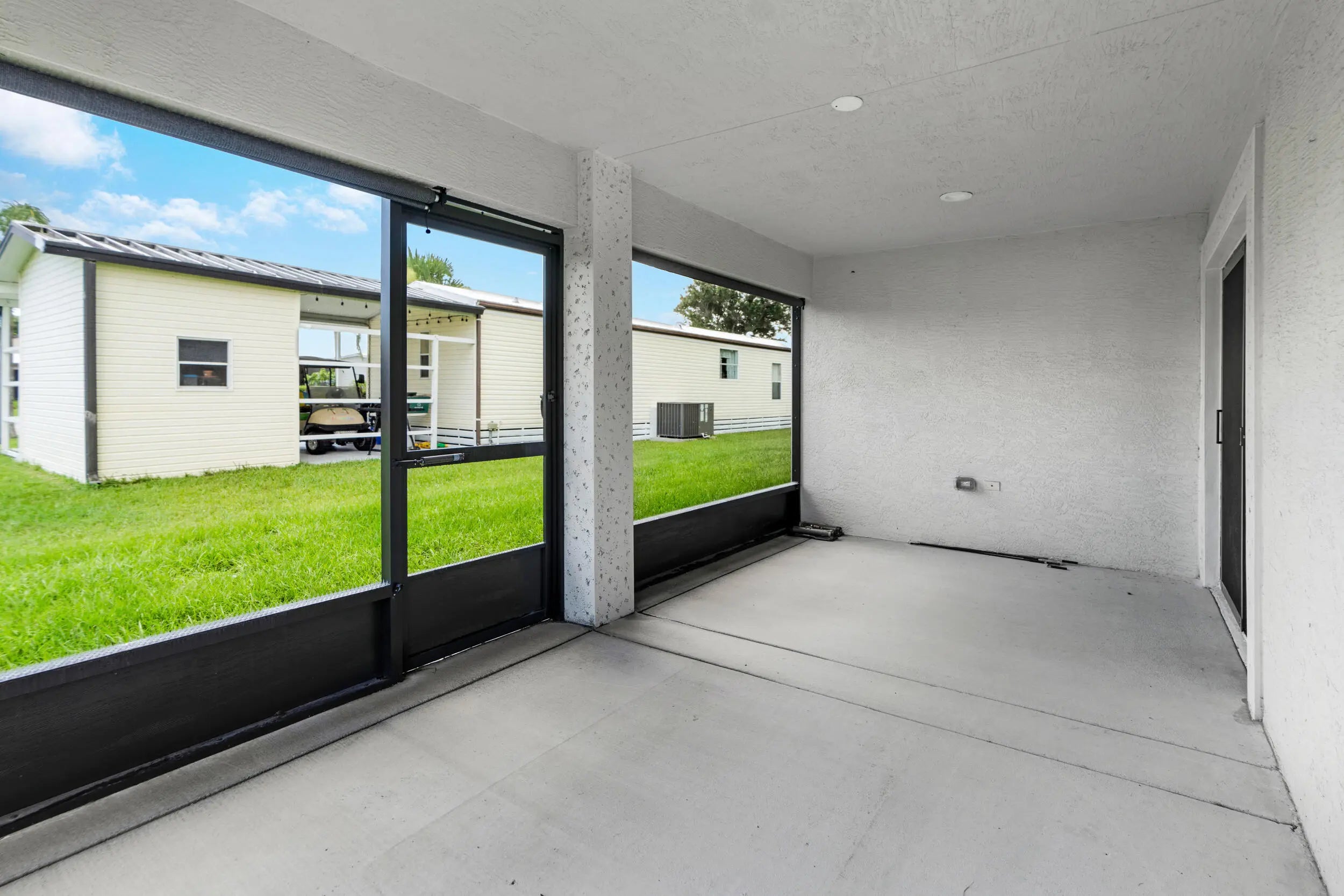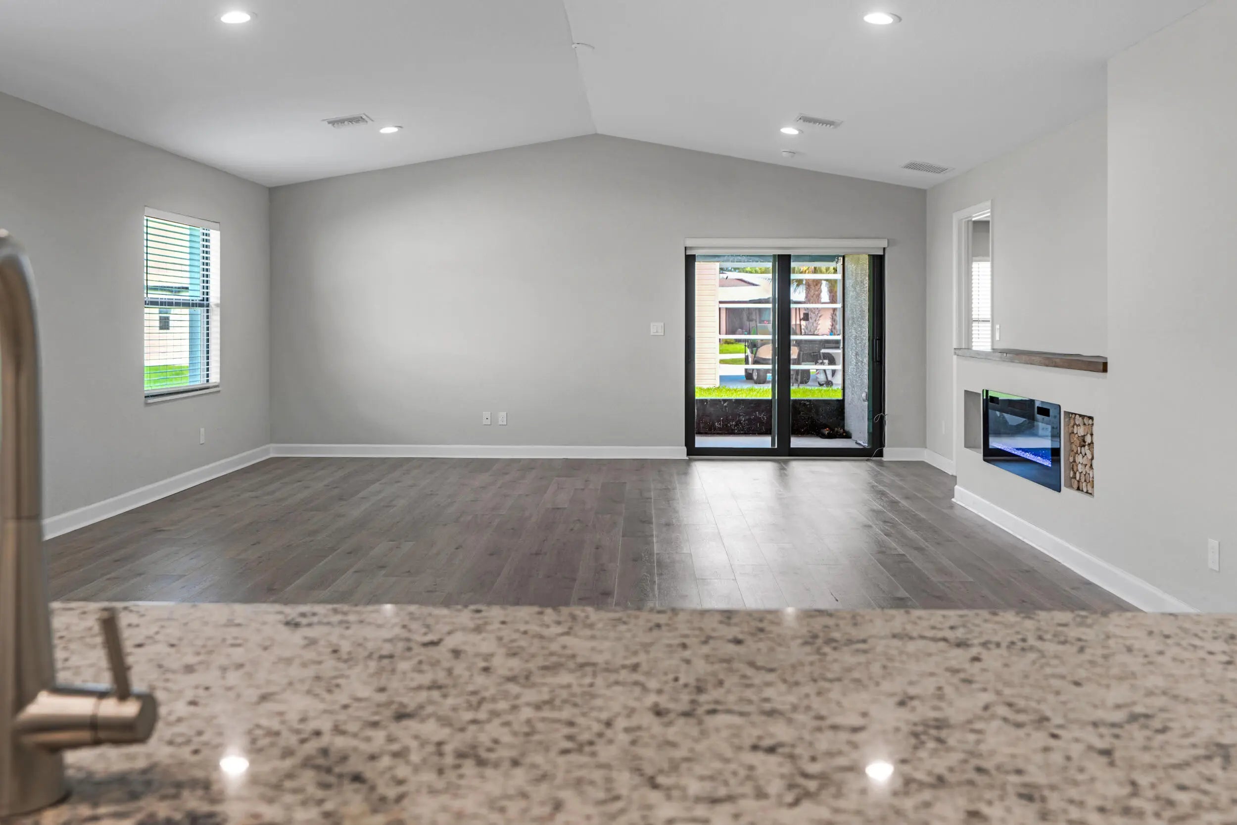 NEW BUYER GETS LOW $550/MONTH HOA FEE! BRING ALL OFFERS! Stunning CBS home built in 2023 and barely lived in. This 3-bedroom, 2-bathroom home is immaculate & full of upgrades. It showcases a metal roof and impact windows, offering durability and peace of mind. Step inside to find upgraded vinyl plank flooring throughout the main living spaces, accentuated by vaulted ceilings that enhance the open floorplan. The kitchen is a chef's dream, with additional cabinetry and space for a wine fridge. The primary suite boasts a coffered ceiling and custom barn door. Relax on the screened-in patio with privacy blinds or enjoy the ambiance of the electric fireplace. The property features an oversized driveway, one-car garage, and a golf cart garage. Electric blinds on the slider add convenience to this meticulously designed home