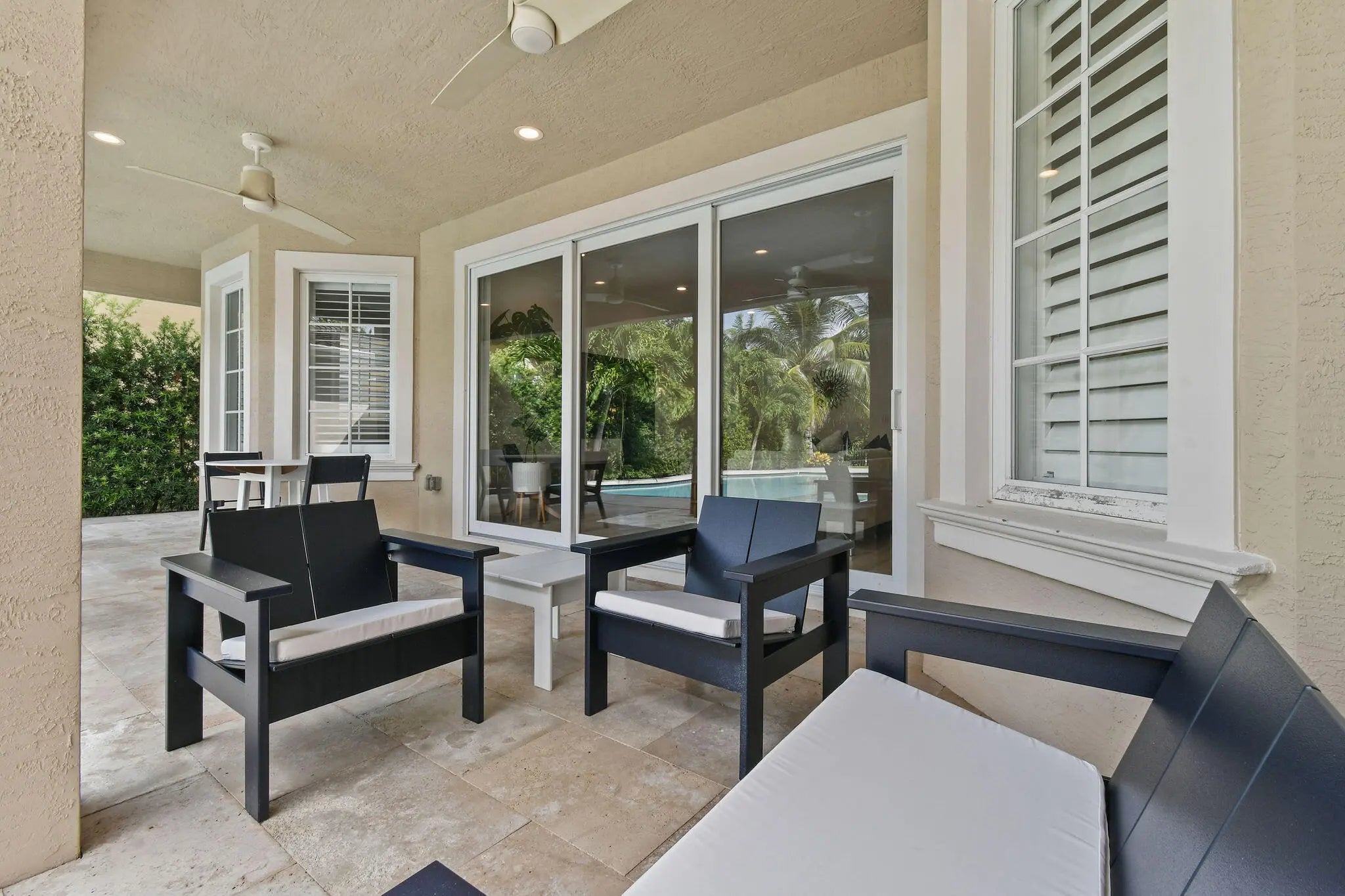 Incredible opportunity to lease this furnished, turn-key 4 Bedroom + Den, 3 Bath home in Canterbury Place at Abacoa. This meticulously maintained home features an updated kitchen with quartz island, beverage bar, pantry, hardwood floors, plantation shutters, automated shades, and hurricane impact windows/doors. Enjoy the oversized covered patio with travertine deck, private heated pool/spa with sunshelf, and lush landscaping. 2-car garage. HD cable/internet, landscaping, and pool maintenance included in rent. Conveniently located near the clubhouse with fitness center, pool, and preserve/lake trails. Zoned for top-rated schools. Minutes to Jupiter & Juno beaches, golf courses, dining and shopping. Flexible lease term.