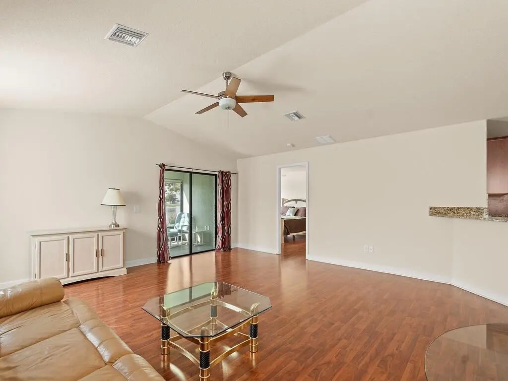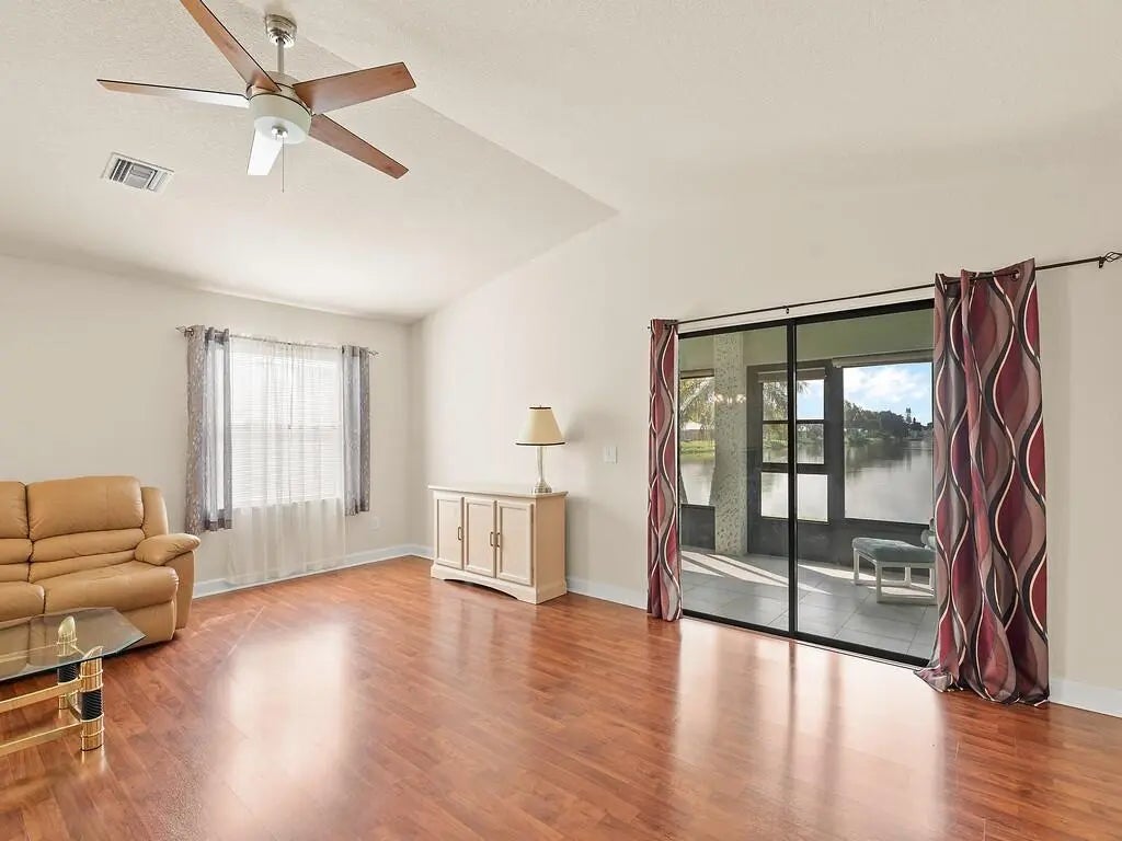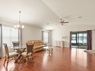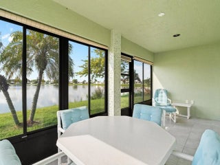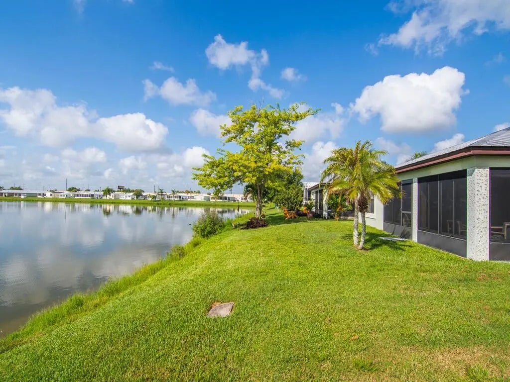 Welcome to this charming lakefront retreat offering 2 bedrooms and 2 bathrooms split floor plan. Enjoy serene water views from the comfort of your primary suite, which features a spacious walk-in closet, dual vanities, and a walk-in shower. The open kitchen boasts granite countertops, bar seating, and overlooks both the dining area and great room. Additional features include an indoor laundry room for added convenience and a screened-in front porch, as well as a screened lanai—ideal for enjoying your morning coffee or evening cocktails .An attic exhaust fan, temperature-activated, has been installed to help reduce air conditioning costs and minimize moisture buildup. Home is being sold furnished. 18 hole golf course. 2 pools, tennis, shuffleboard, bocce ball and much more. Priced to sell