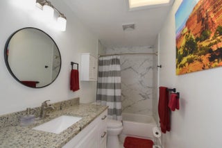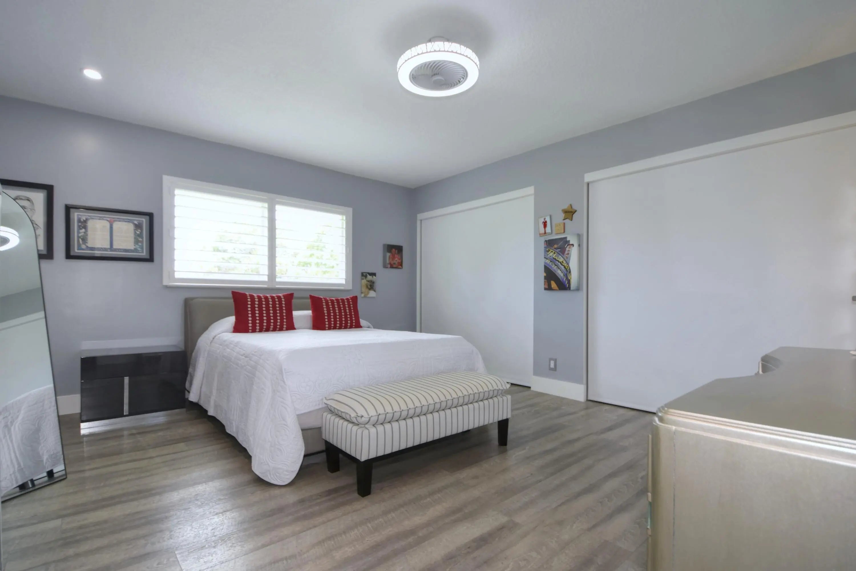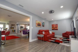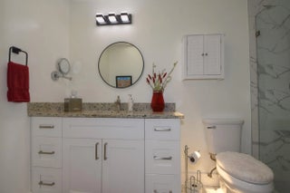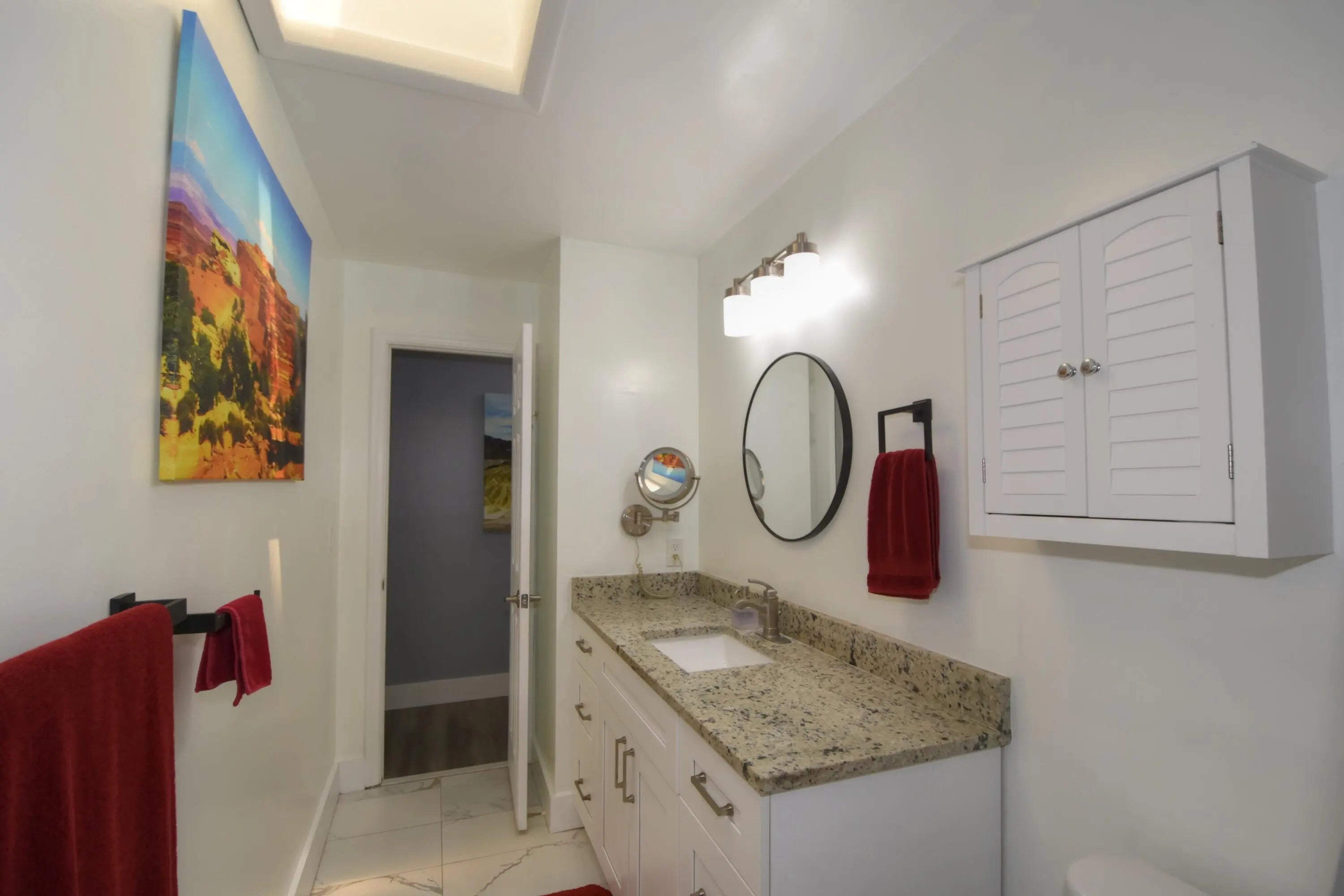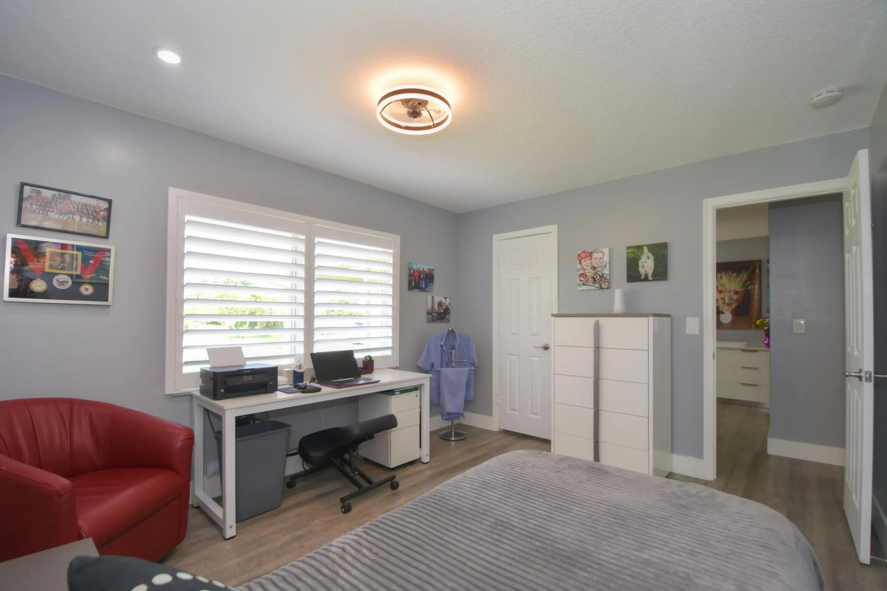 Extensively remodeled two bedroom/two bath villa home with den in 55+ community of Delray Villas. Corner lot with canal view; no homes behind for privacy. Skylights and granite counter tops in both bathrooms. Energy efficient high-hat lighting throughout. New roof in 2020. New A/C, hot water heater and washer in 2021. Following items all new since Feb. 2024: Waterproof gray vinyl plank flooring throughout. Remodeled kitchen including custom pantry, quartz counter tops, quartz sink, sensor faucet, garbage disposal, stove, microwave, refrigerator and beverage cooler. Impact windows throughout; double french impact doors to patio. Master bathroom updates including frame-less shower doors, mirror, light fixture, towel bars and toilet. Custom closets in master bedroom and guest bedroom. Power roller shades on master bedroom and hall closets. Plantation shutters throughout. Contemporary lighted ceiling fans in den, master bedroom and guest bedroom. SimpliSafe security system. Interior lever door handles throughout. Clothes dryer. Interior painted throughout. Extended concrete patio in rear with privacy hedge. Exterior light fixtures at front and rear entrances. Home is located in Delray Villas Plat 2, Delray West Townhouses and is part of the Delray Villas Recreation Association. Facilities include a large heated pool with hot tub; fully equipped gym; tennis courts; bocce court; ballroom, card, craft, and meeting rooms, and library. There is a satellite pool located in same section as home.
