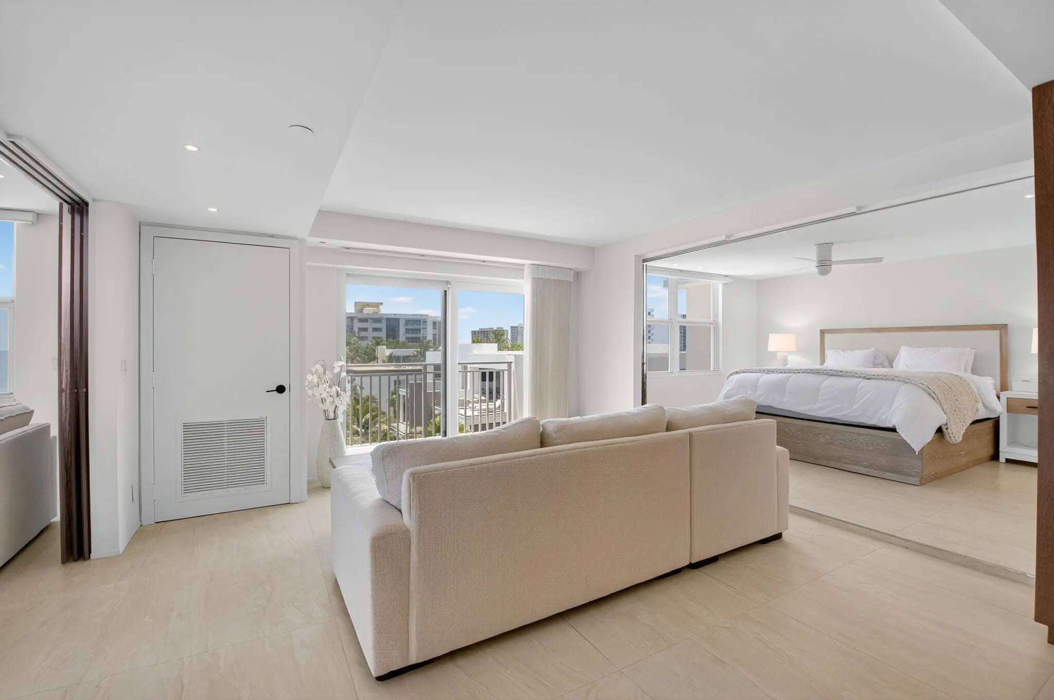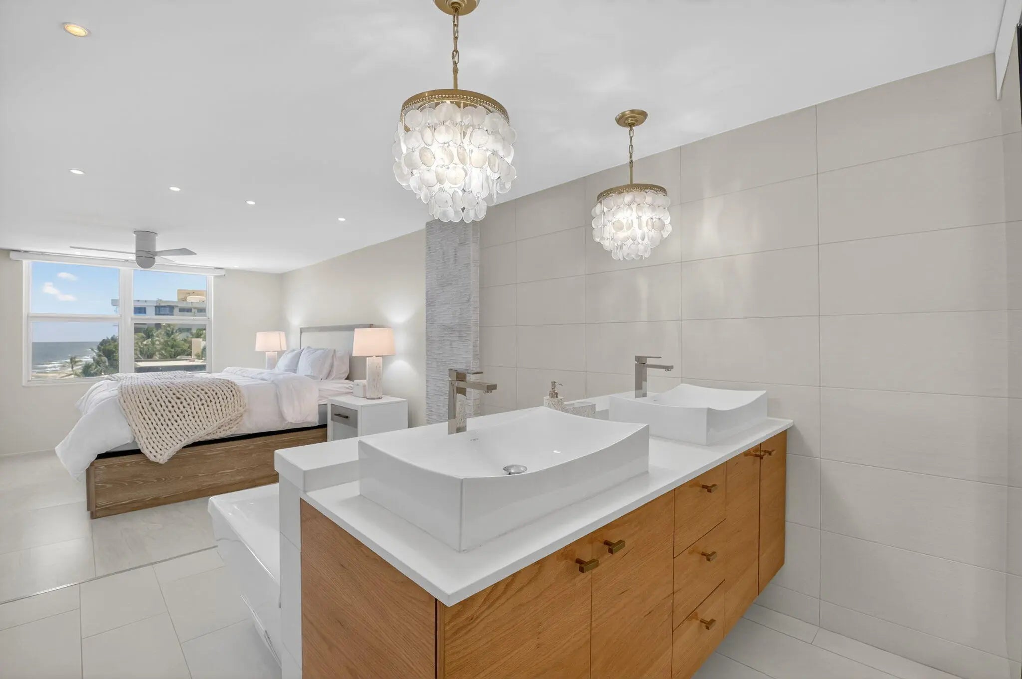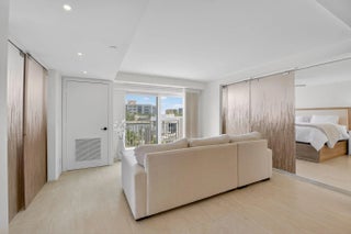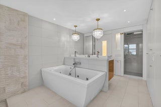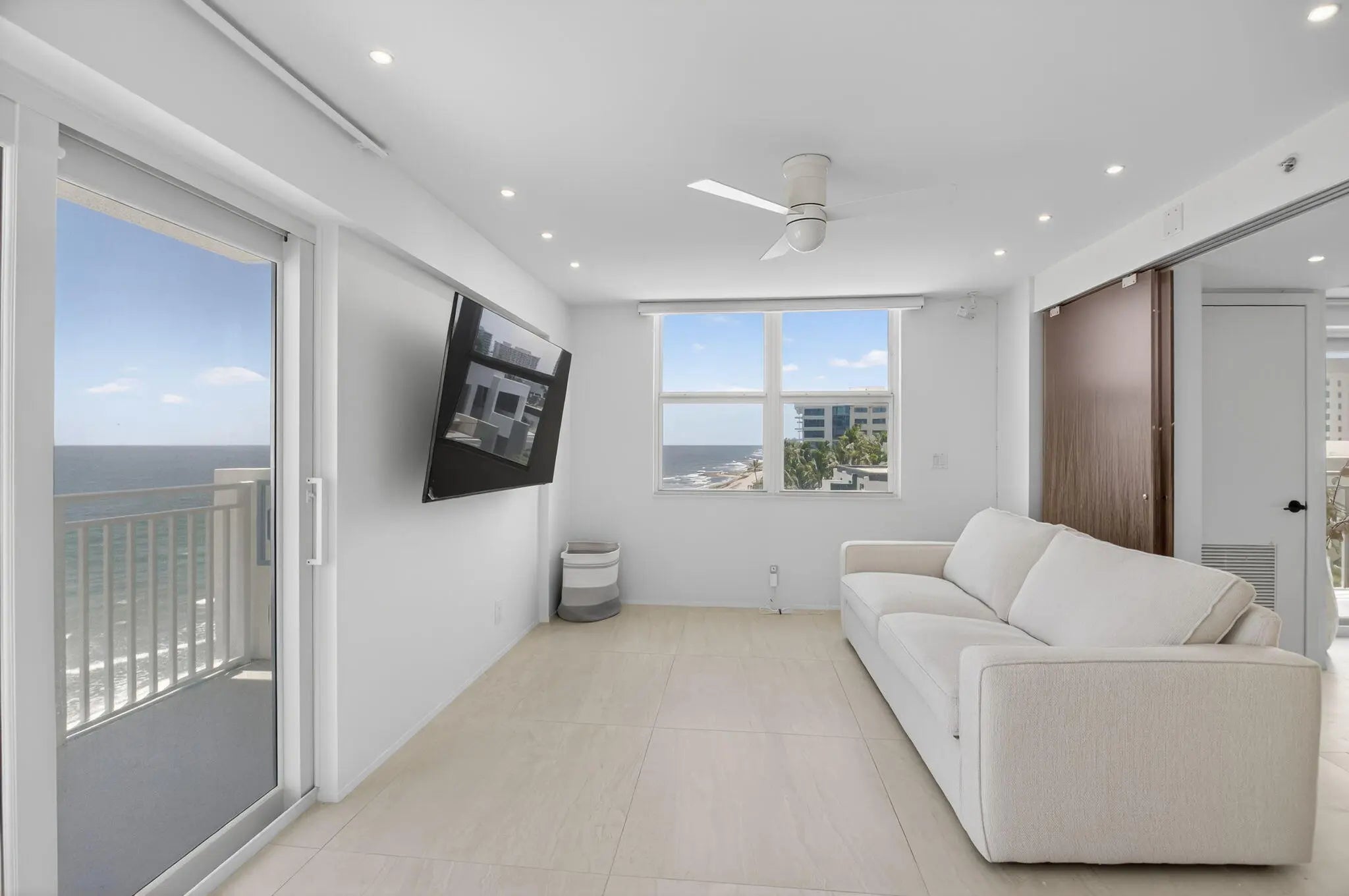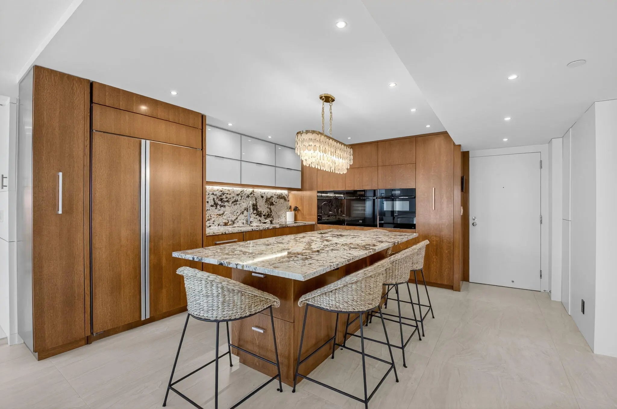Coastal Luxury Living Redefined. Situated directly on the oceanfront, Residence 507 offers sophisticated living with uninterrupted ocean views from every room, including the primary bath. This fully integrated smart home captures the essence of coastal elegance, with two private balconies perfectly positioned for sunrise and sunset. The custom kitchen is the true centerpiece, designed for both function and entertaining, and appointed with Miele, Bosch, and Sub-Zero appliances, bespoke wood cabinetry, and an oversized island with seating for ten. Floor-to-ceiling glass doors frame the living space, creating a seamless connection between polished interiors and the breathtaking beauty of the ocean.