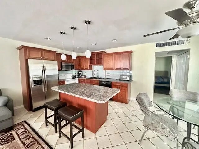 Come See this New to the Market, 1 Bed/1.5 Bath Single Level Villa with a Spacious Open Layout, Kitchen with Center Island Overlooking the Living Room & Dining Area with Tile Flooring. Both Bathrooms Updated, Master Bath has Walk in Shower. Brand New Air Conditioning System Just Installed & Brand New Washer & Dryer Included. The Best Part is the View, This Unit Overlooks the Golf Course, Enjoy the Peaceful Atmosphere From Your Own Screened In Patio. Kings Point is a Gate Community with Resort Style Amenities, Including Tennis Courts, Golf, Indoor & Outdoor Pools, Fitness Center, Courtesy Bus, Large Clubhouse with Cafe/Restaurant On-Site & So Much More. Relax & Enjoy the Good Life, this Unit is Priced to Sell & Comes Fully Furnished & Ready to Move Right In. Come See Today.