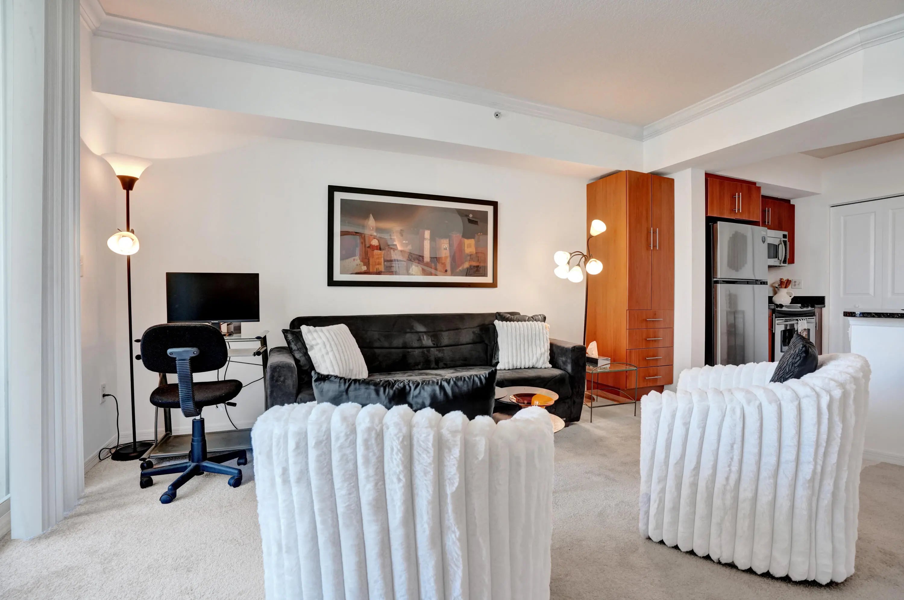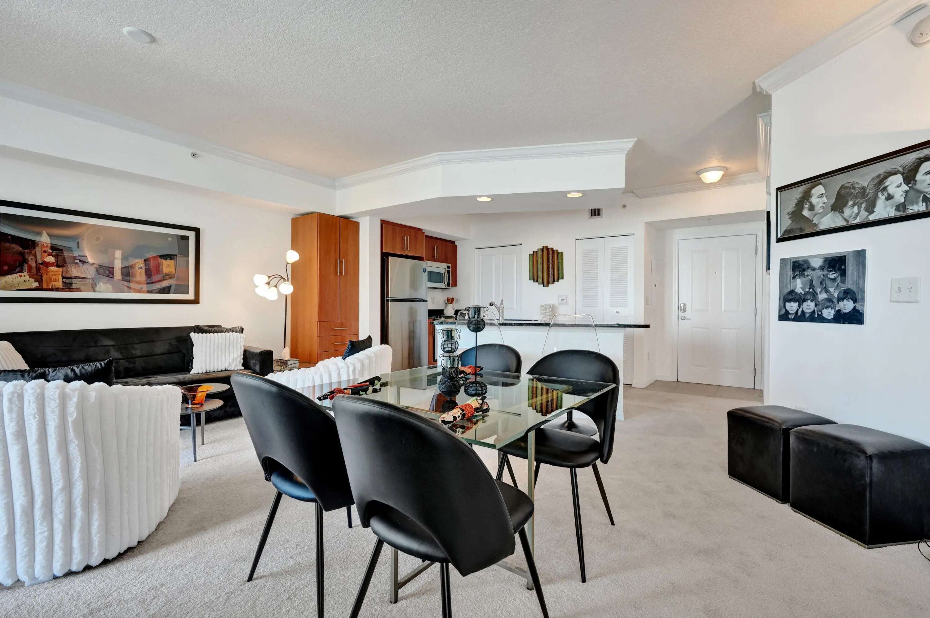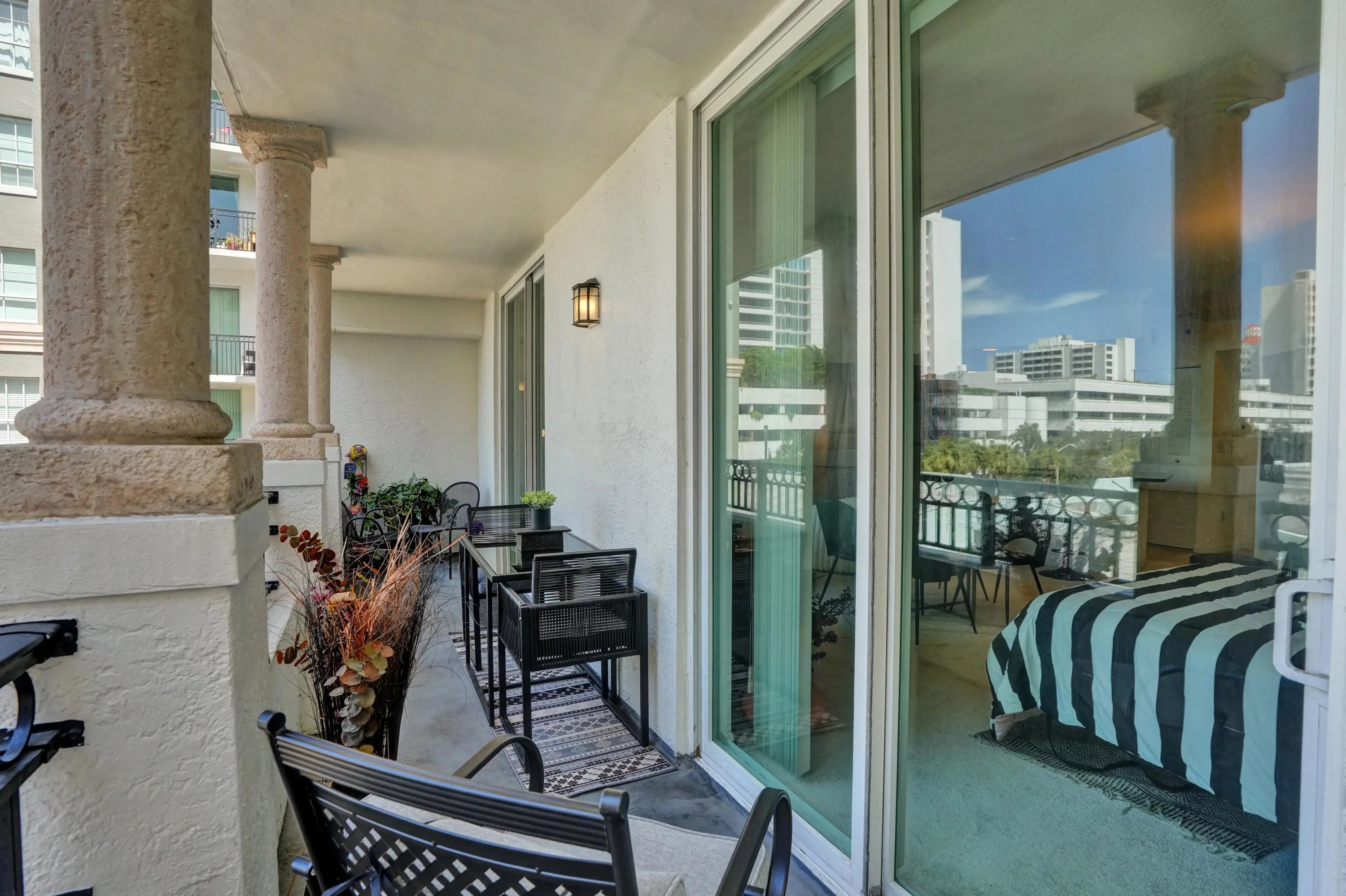 One of a kind Turnkey Fully furnished and move-in ready gem with low maintenance fees. This spacious studio at The Prado offers stylish upscale living in the heart of downtown. Unique rare 25-foot private terrace, ideal for outdoor dining or entertaining . A built-in queen Murphy bed maximizes your living space. A Dining area for more formal meals. The kitchen has stainless steel appliances, a granite island including additional Lucite seating. Separate utility room for washer & dryer. Parking is located on the same floor close to the unit for easy access. The Prado offers resort-style amenities including a courtyard pool & spa, fitness center, and a clubhouse. Located just a short distance from Palm Beach, CityPlace, Clematis Street, Palm Beach Atlantic University, and Brightline.
