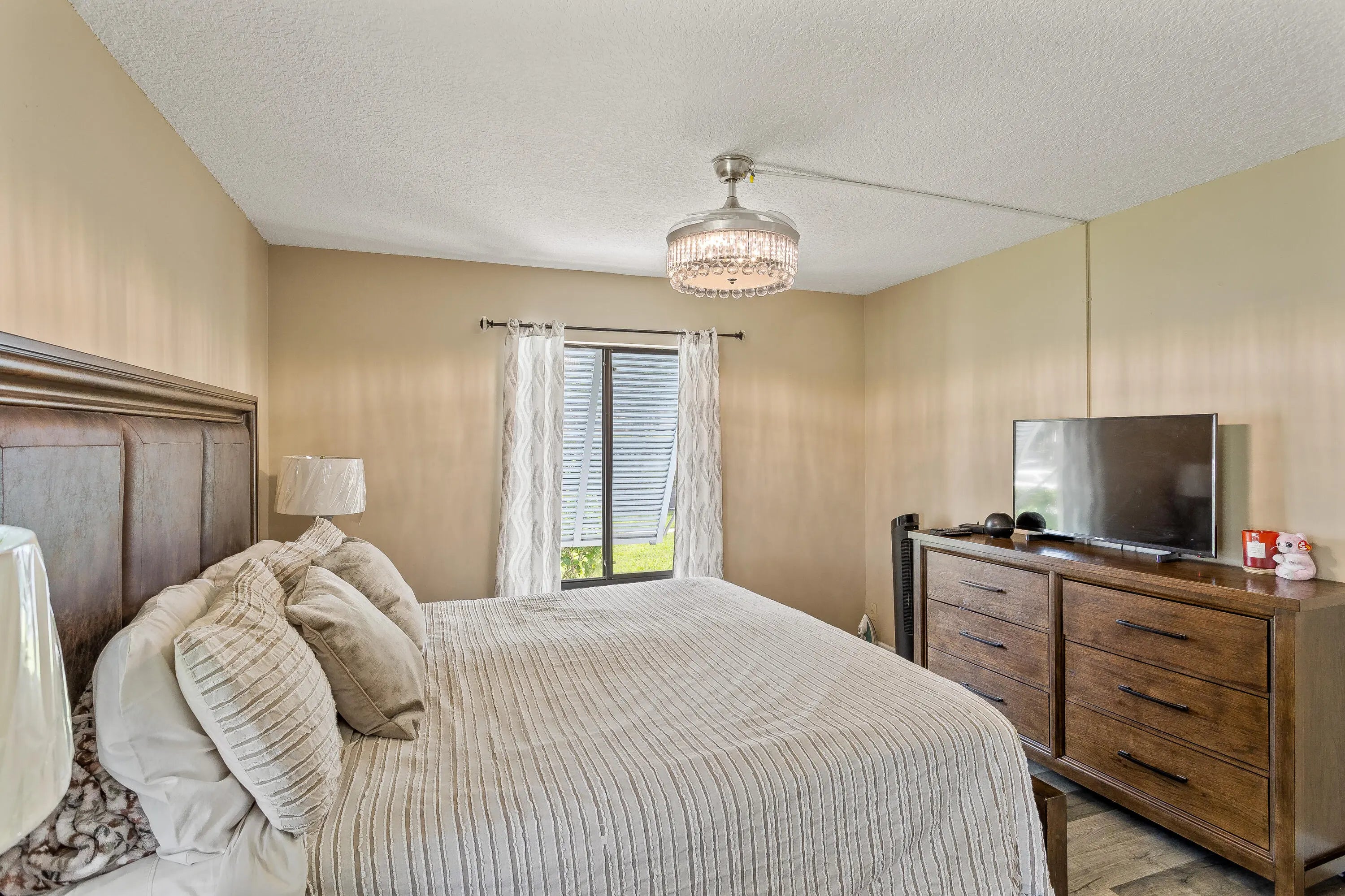 Step into this highly sought-after, 1st-floor 2-bedroom, 2-bath garden condo, where comfort meets style. The expansive kitchen is a chef's dream, boasting wall-to-wall cabinetry, abundant storage, and even a built-in office area perfect for working from home. Both bathrooms shine with full renovations, featuring stunning large-format tiles for a sleek, modern touch. The bedrooms have been upgraded with brand-new waterproof laminate wood plank flooring, combining beauty and durability. A spacious laundry room with full-size washer and dryer makes everyday living effortless. Relax year-round on your screened-in patio with roll-down shutters, offering privacy and peace of mind. Located in a gated community with 24/7 manned security, you'll enjoy access to a sparkling pool, tennis and racquet ball courts, close to downtown, restaurants, and shopping.