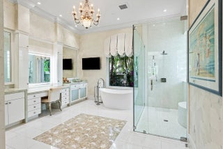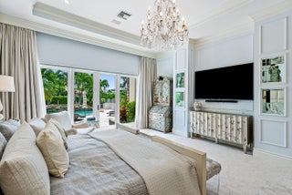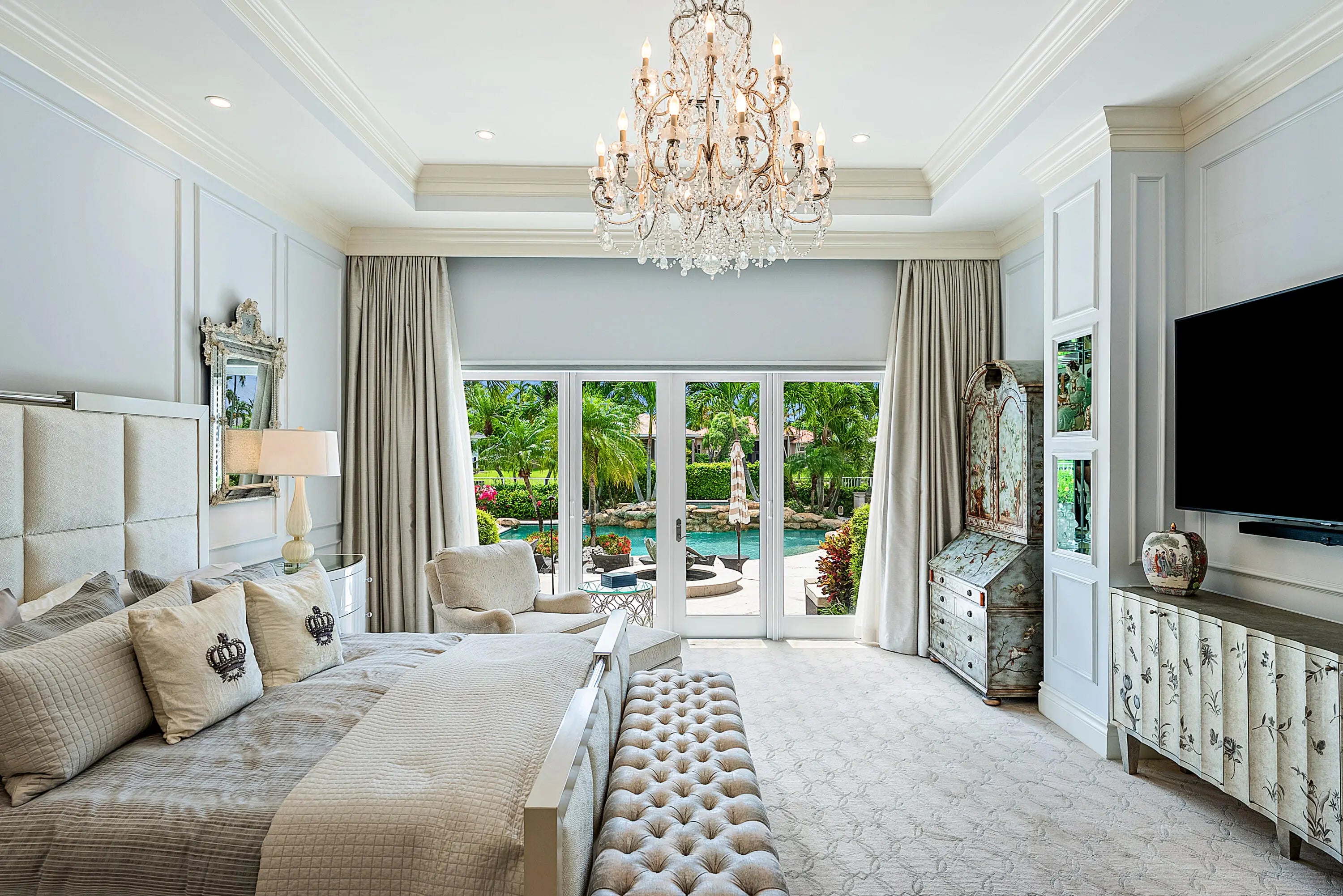 Welcome to this charming and updated estate home. Nestled at the end of a quaint cul-de-sac, a spacious driveway leads you to the beautiful home. Inside, a grand foyer opens into a light-filled living room with soaring ceilings and floor-to-ceiling windows that frame stunning views of the lake. Built-ins flank a fireplace, anchoring the space. The open layout provides generous living spaces, ideal for both relaxation and entertaining. Adjacent to the formal dining room, it sits just off the main living space, providing a perfect setting for hosting gatherings. The renovated kitchen makes a significant impression, featuring a large island, ample cabinetry, Wolf appliances, a built-in desk, and a casual dining area. The kitchen seamlessly connects to the spacious family room, which also enjoys the same picturesque views of the outdoor setting. A cozy sitting area and a bar enhance the home's inviting atmosphere. Step outside to take in peaceful lake views that serve as a stunning backdrop to the pool and spa. The expansive patio provides multiple areas to lounge and unwind while taking in captivating West-facing sunsets. The elegant primary suite is thoughtfully positioned in its own wing for maximum privacy. It features serene views, two walk-in closets, and dual bathrooms. A richly appointed office with dark wood finishes and a charming rolling library ladder adds warmth and character. Three additional ensuite bedrooms provide ideal accommodations for guests. Further highlights include a chic powder bathroom, spacious laundry room, a three-car garage, and hurricane impact windows and doors for added peace of mind. Located within the award-winning Polo Club, residents enjoy access to two championship golf courses, top-tier tennis and pickleball programs, a resort-style aquatics complex, a state-of-the-art fitness center and spa, a variety of dining options, and a lively social calendar with events for all ages.