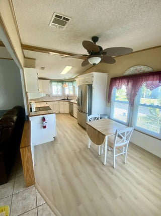 Come by and see this gorgeous 2-bedroom, 2-bath manufactured home in Tropical Isles, a beautiful 55+ community located in Fort Pierce. The first thing you'll notice is the bright & brand new Lifeproof luxury vinyl plank flooring with ample counter space and a custom pantry with an eat-in dinette. The home features a spacious & open living room with vaulted ceilings and a dining area offering plenty of space for both entertaining and everyday living. The master bedroom is beyond spacious, and has a very large and roomy master bathroom while the guest bath has a stunning full-sized skylight! Hurricane windows throughout and comes with a brand new generator to boot! Come make this house your home!