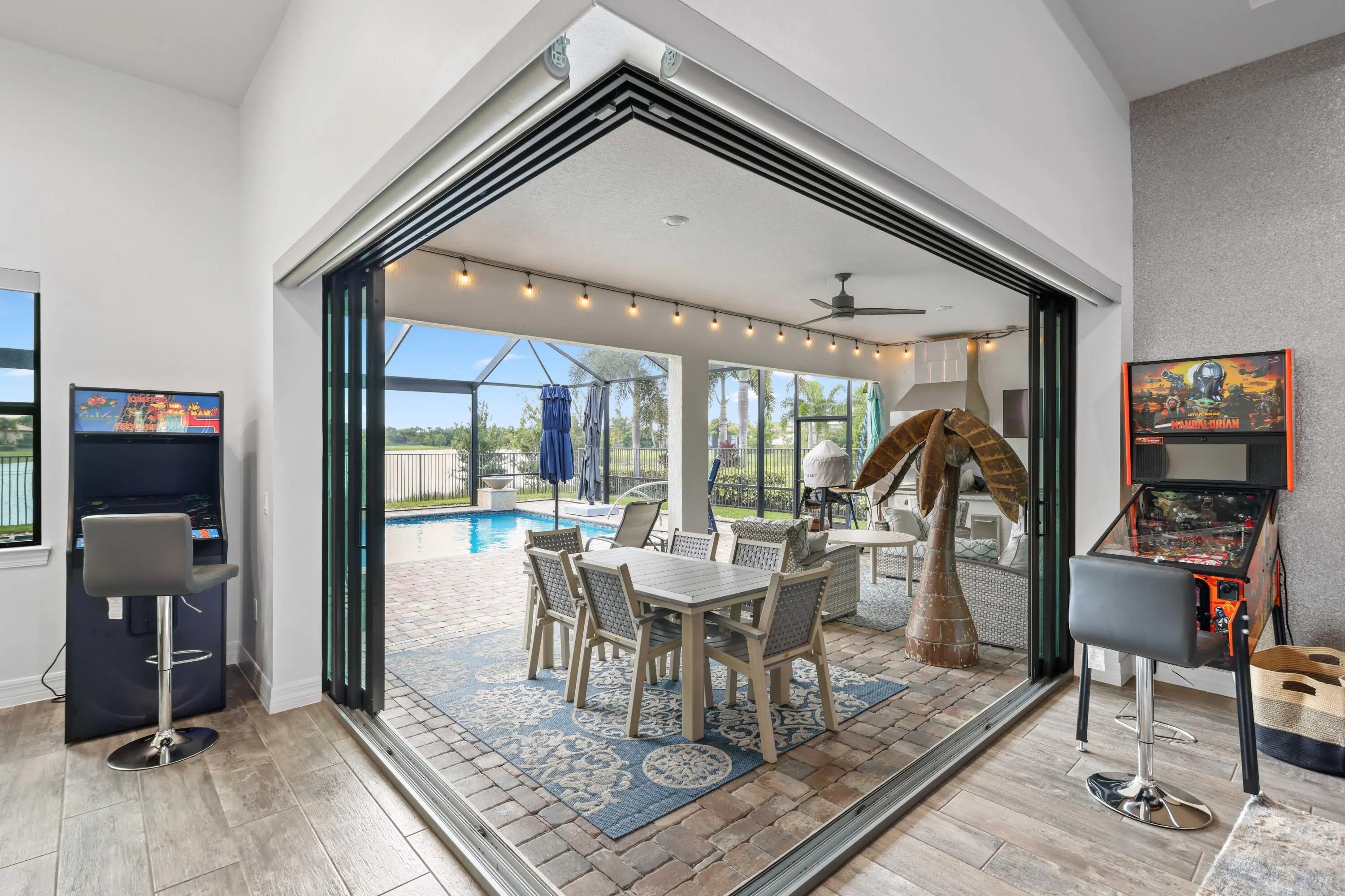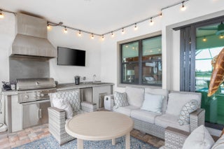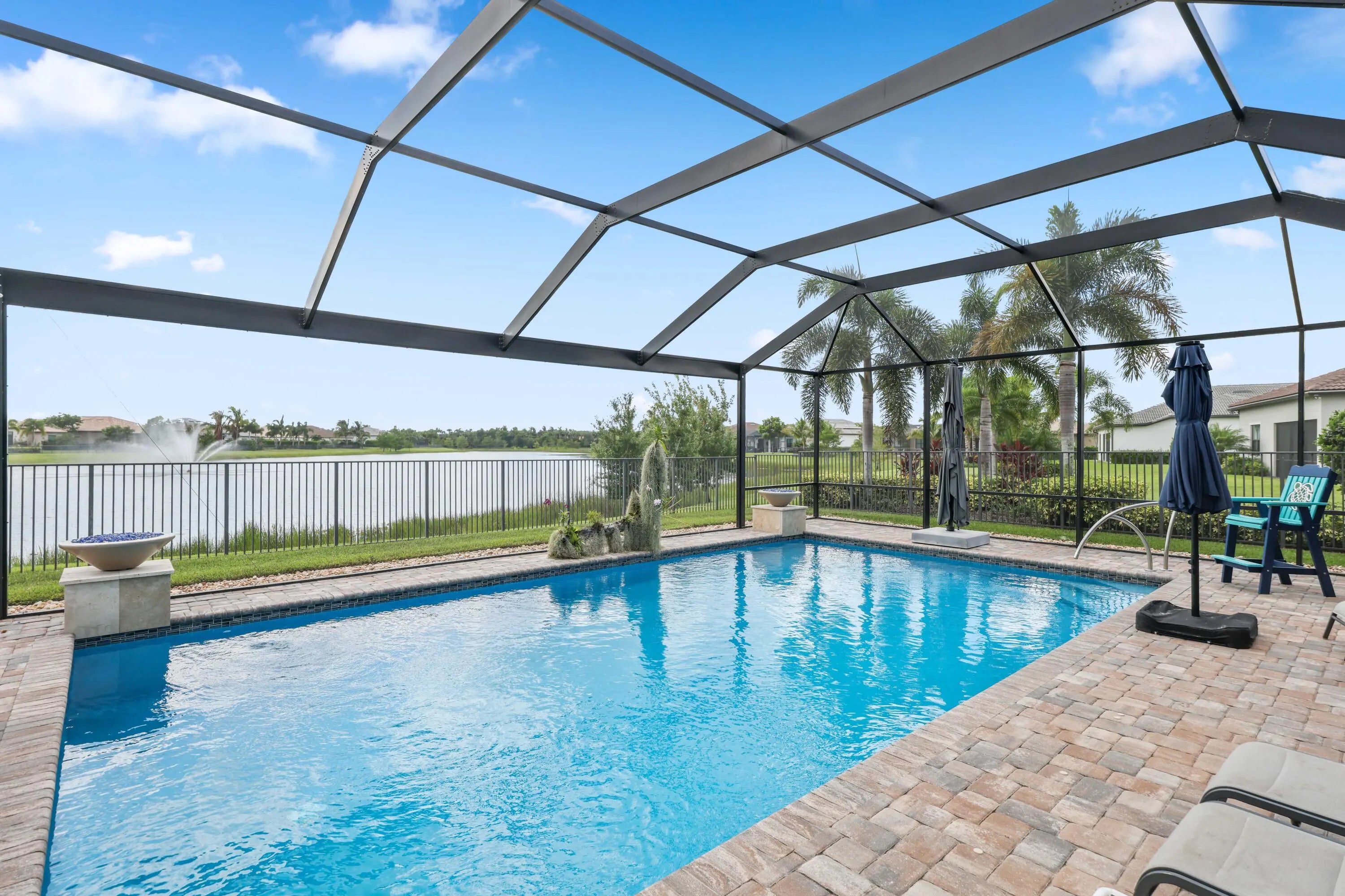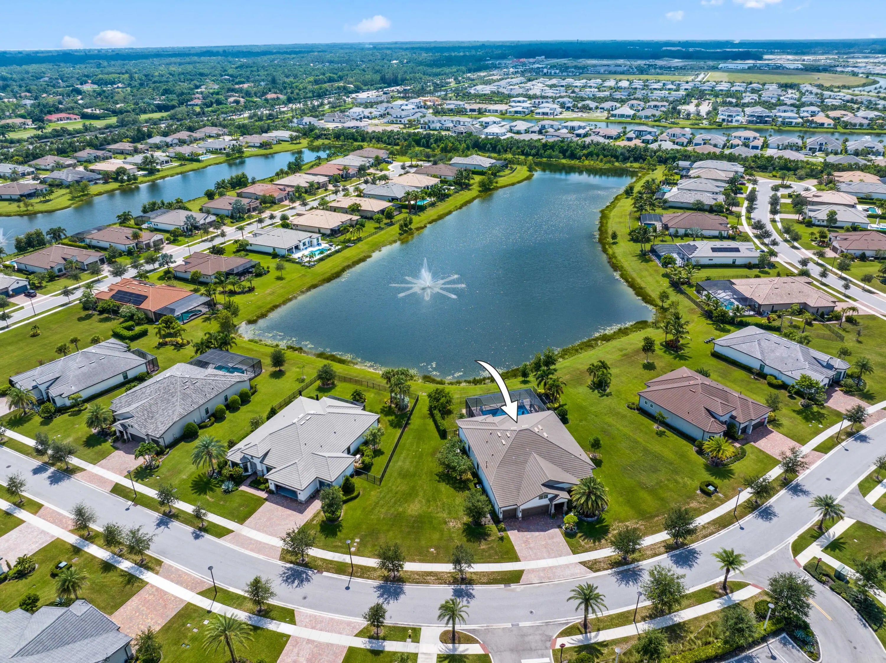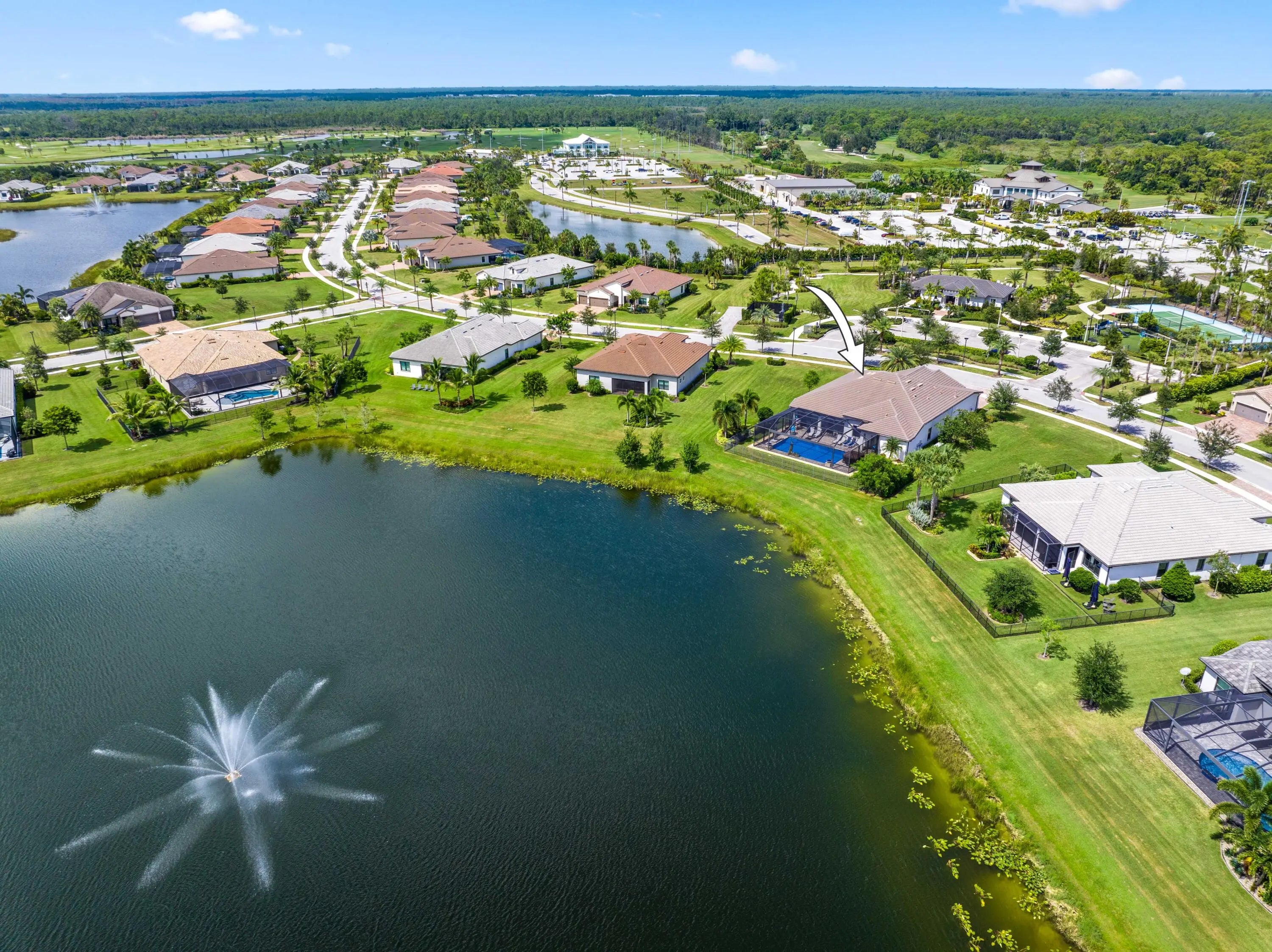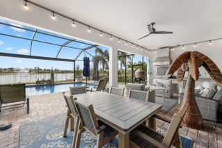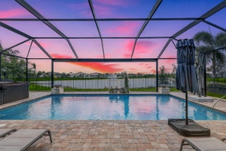 On one of the largest lots in Ancient Tree, this half-acre lakefront home offers wide fountain views and a backyard built for enjoyment. The saltwater heated pool, 6 1/2 feet deep, with fire bowls, hot tub, and panoramic screen enclosure, creates the perfect outdoor retreat. Entertain with ease on the patio featuring a summer kitchen with grill, fridge, ice machine, and trash. Inside, the custom kitchen includes 42'' upper cabinets, upgraded quartz, built-in pet bowls, and premium appliances: Fulgor range with gas burners and double electric ovens, wall oven, microwave, and pot filler. The open great room has coffered ceilings, while the primary suite offers generous closet space. Natural gas serves the dryer, water heater, grill, and burners. Oversized 3-car garage plus golf cart space. Golfers will love being next to Sandhill Crane Golf Club or The Nest, with options for a round on the championship course, the ideal place to practice your short game, or a fun time at the two-story driving range. Enjoy drinks or a meal too. There are new dining and shopping options coming soon for ultimate convenience, including a new Publix. Northlake Boulevard improvements make commuting and errands easy. This property combines outstanding upgrades, a prime location, and a lifestyle that's hard to match in Palm Beach Gardens. Extras: *40k in porcelain tile floors throughout *Zero Corner Sliders are ideal for entertaining or cool weather *Dual fuel main 48-inch range *3 Ovens ideal for entertaining and holidays *Pot Filler *Luxury quartz custom counters with a large edge island *Under and over cabinet lighting on a timer in the kitchen *22-24 k liquid-cooled whole-house Generac natural gas generator *Summer kitchen ready for the perfect BBQ *Panoramic Screen Enclosure to maximize the Lakeview *Gas pool heater *Saltwater pool *Oversized Laundry Room *Oversized 3-car garage with Acrylic floors *High-end flat roof tiles *EV ready with 240-50 amp electric car outlet in garage *Security camera outside and a central alarm system *Sprinkler fed by the HOA *Landscaping and lawn care are included in the HOA, but you can opt out once a year