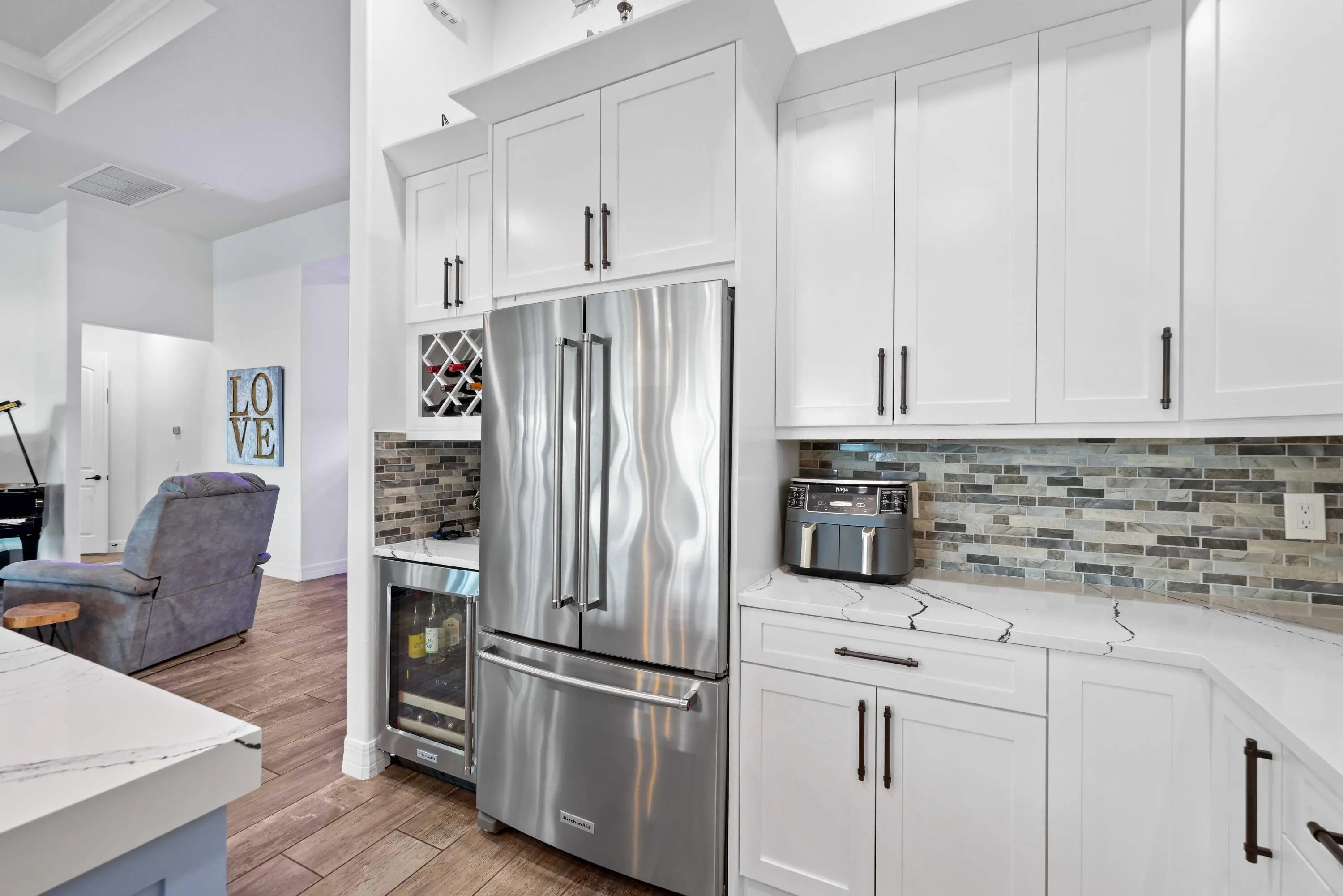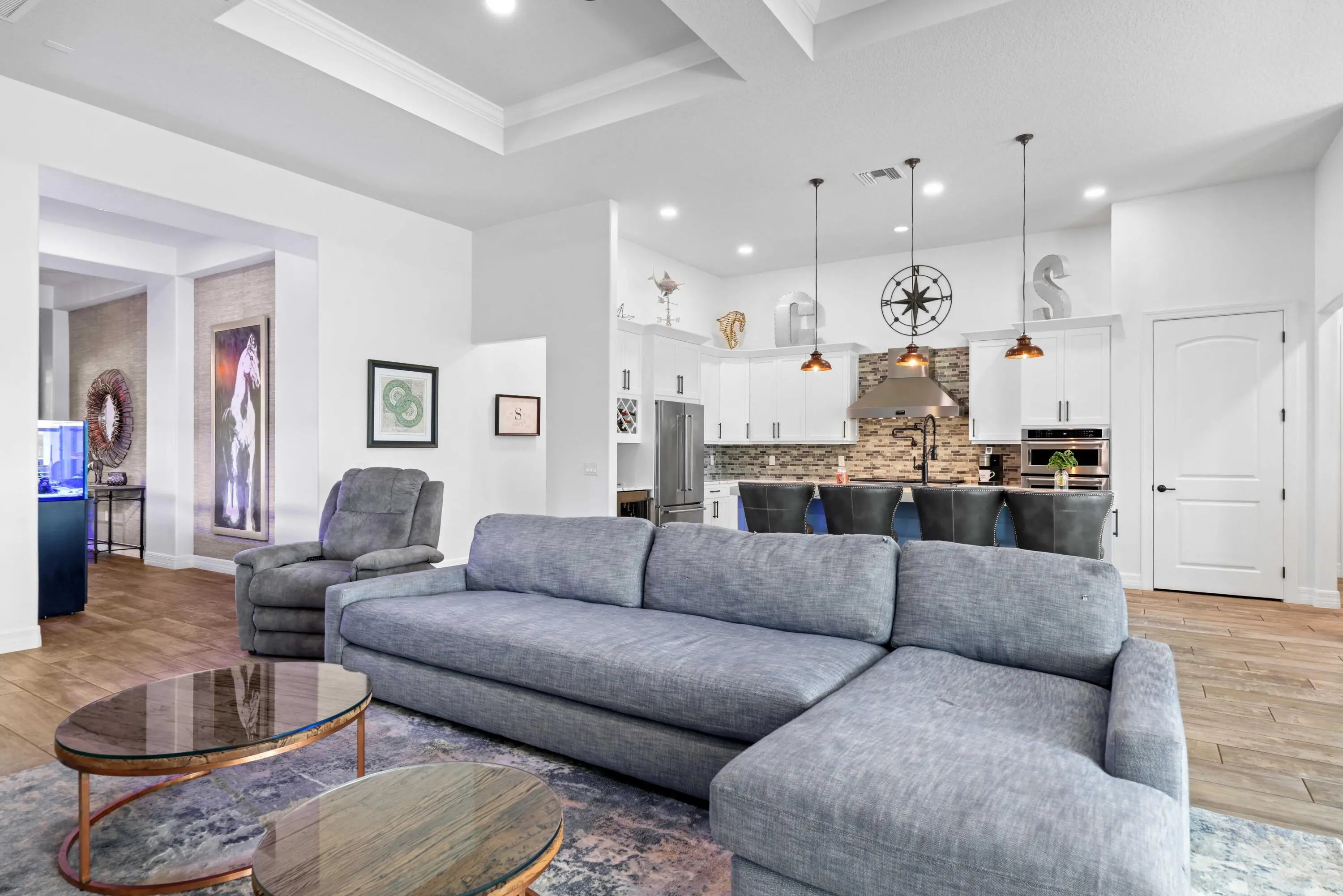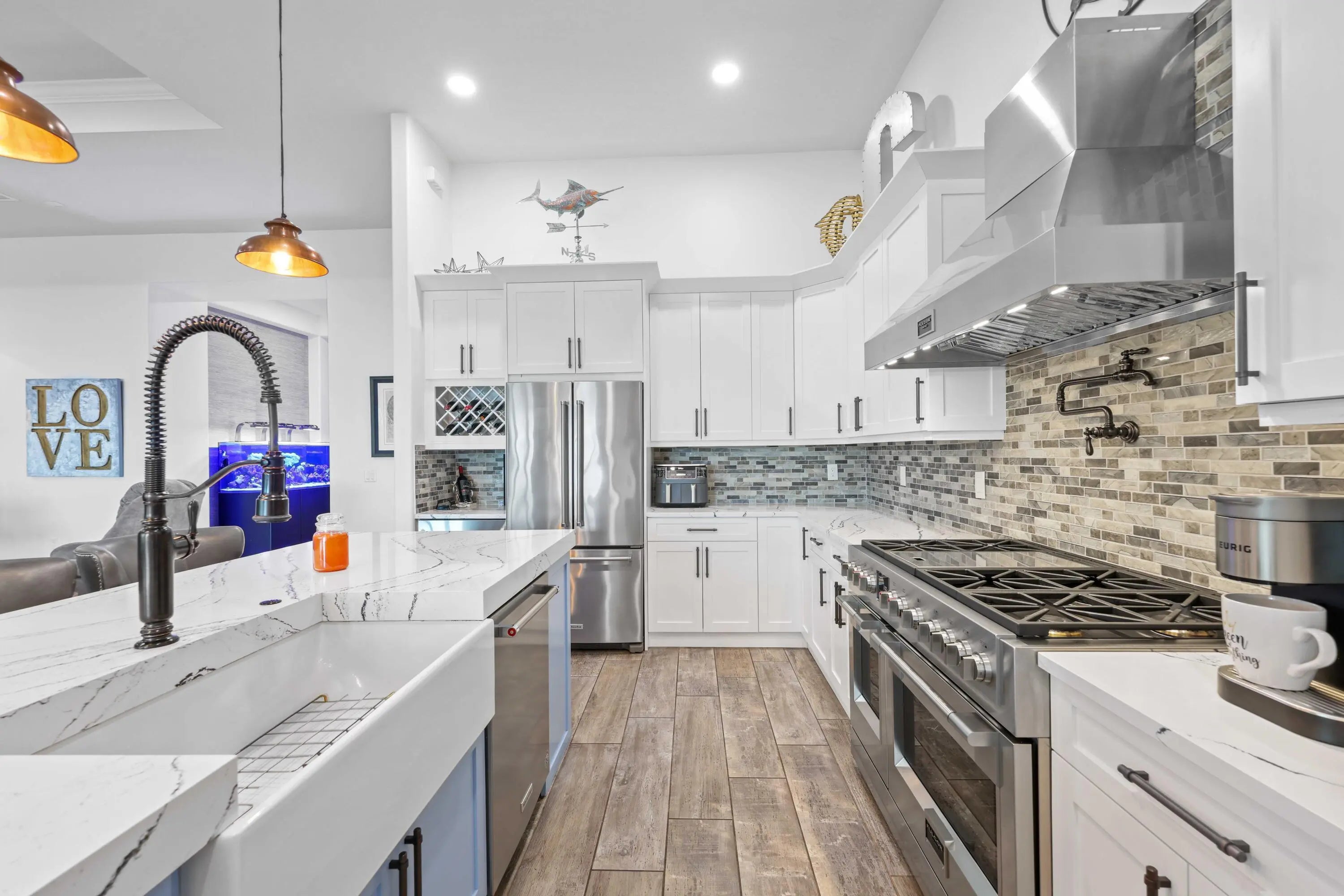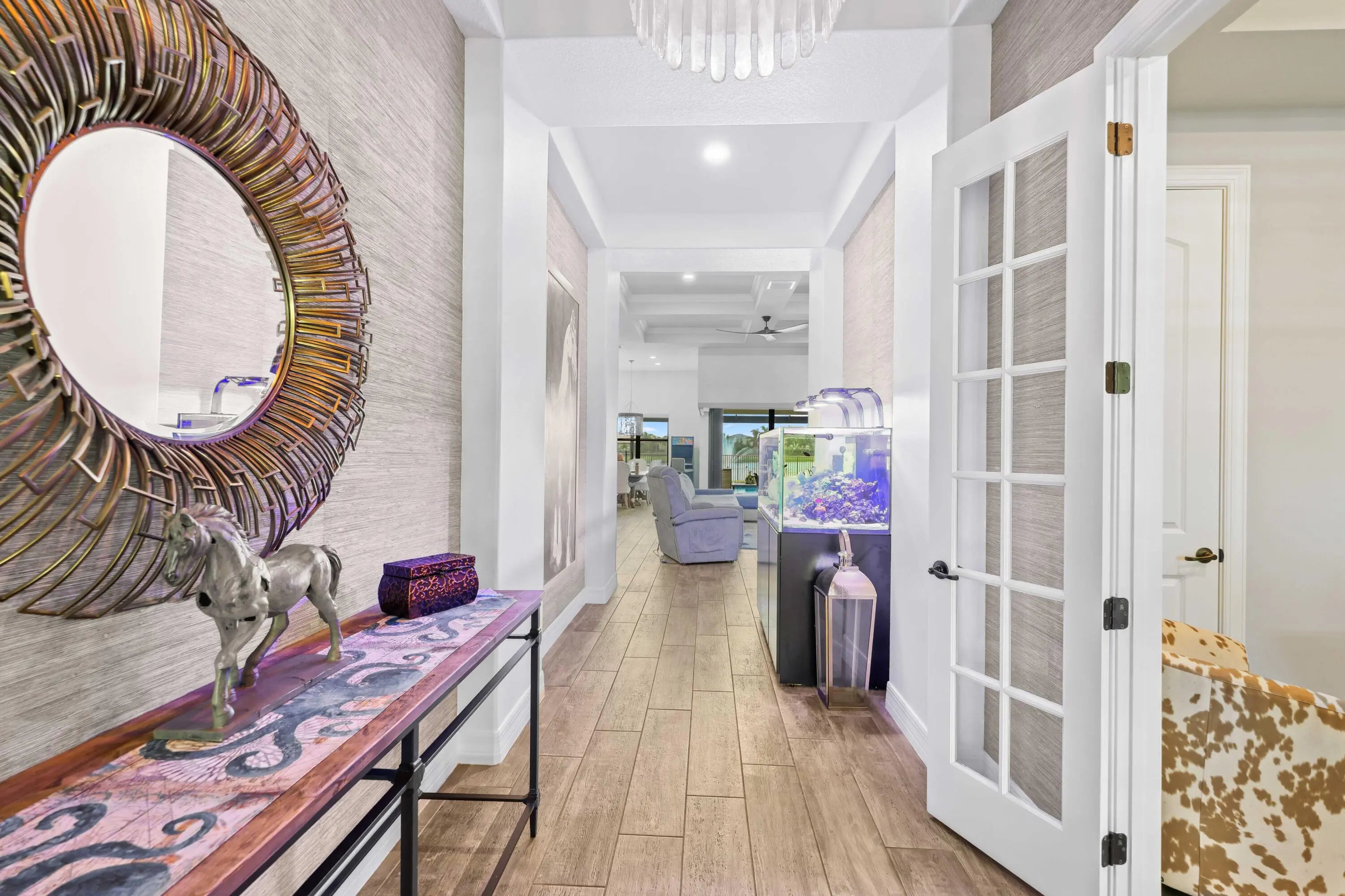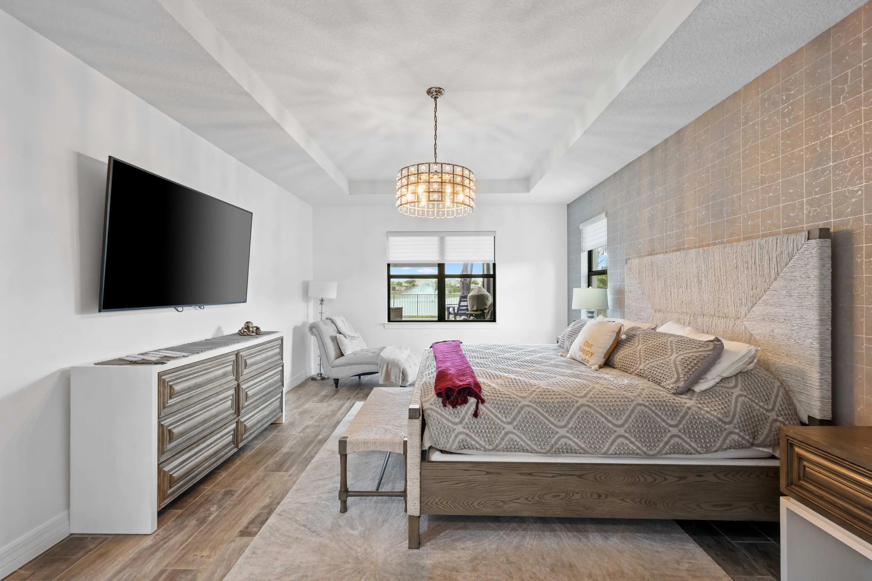 On one of the largest lots in Ancient Tree, this half-acre lakefront home offers wide fountain views and a backyard built for enjoyment. The saltwater heated pool, 6 1/2 feet deep, with fire bowls, hot tub, and panoramic screen enclosure, creates the perfect outdoor retreat. Entertain with ease on the patio featuring a summer kitchen with grill, fridge, ice machine, and trash. Inside, the custom kitchen includes 42'' upper cabinets, upgraded quartz, built-in pet bowls, and premium appliances: Fulgor range with gas burners and double electric ovens, wall oven, microwave, and pot filler. The open great room has coffered ceilings, while the primary suite offers generous closet space. Natural gas serves the dryer, water heater, grill, and burners. Oversized 3-car garage plus golf cart space. Golfers will love being next to Sandhill Crane Golf Club or The Nest, with options for a round on the championship course, the ideal place to practice your short game, or a fun time at the two-story driving range. Enjoy drinks or a meal too. There are new dining and shopping options coming soon for ultimate convenience, including a new Publix. Northlake Boulevard improvements make commuting and errands easy. This property combines outstanding upgrades, a prime location, and a lifestyle that's hard to match in Palm Beach Gardens. Extras: *40k in porcelain tile floors throughout *Zero Corner Sliders are ideal for entertaining or cool weather *Dual fuel main 48-inch range *3 Ovens ideal for entertaining and holidays *Pot Filler *Luxury quartz custom counters with a large edge island *Under and over cabinet lighting on a timer in the kitchen *22-24 k liquid-cooled whole-house Generac natural gas generator *Summer kitchen ready for the perfect BBQ *Panoramic Screen Enclosure to maximize the Lakeview *Gas pool heater *Saltwater pool *Oversized Laundry Room *Oversized 3-car garage with Acrylic floors *High-end flat roof tiles *EV ready with 240-50 amp electric car outlet in garage *Security camera outside and a central alarm system *Sprinkler fed by the HOA *Landscaping and lawn care are included in the HOA, but you can opt out once a year