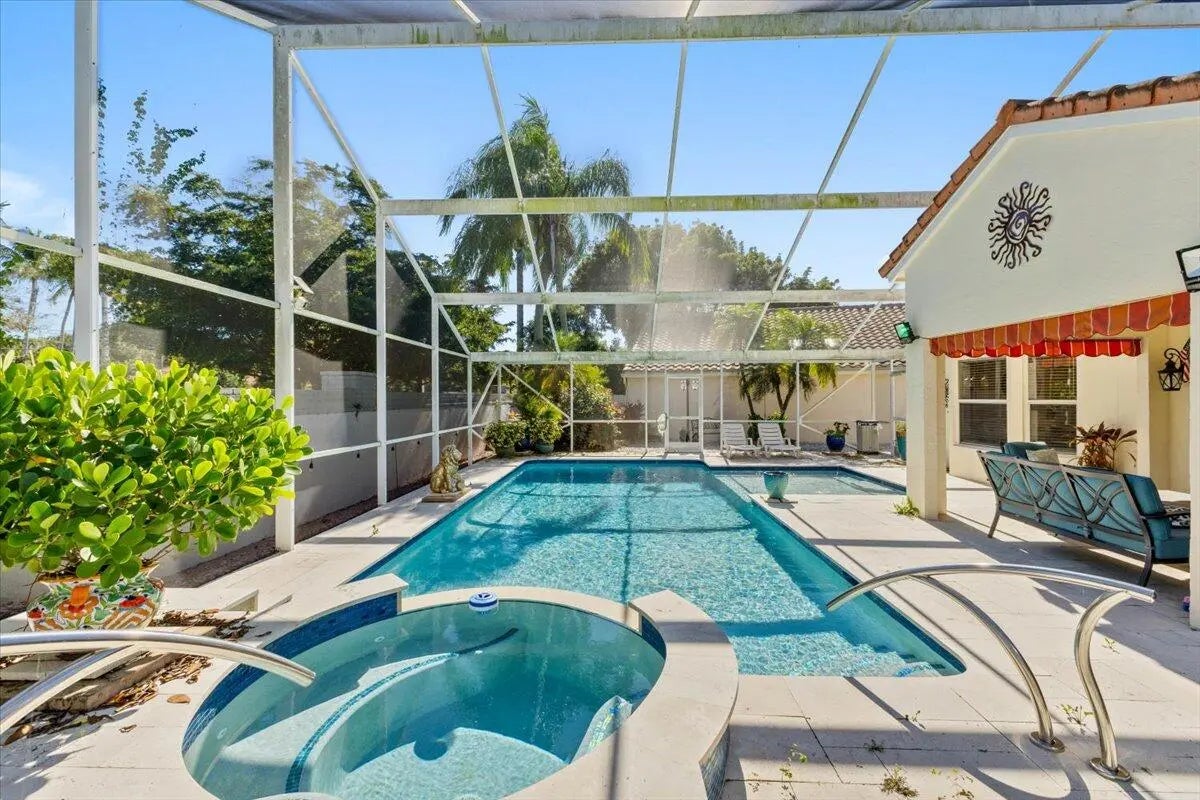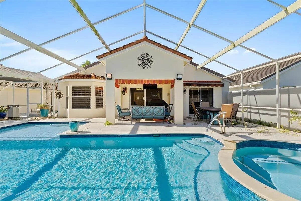 Welcome to this fully furnished, move-in ready 3-bedroom, 2-bath home in the heart of Delray Beach. Designed for easy living, this inviting residence offers a comfortable layout and beautiful outdoor spaces perfect for enjoying the Florida lifestyle. Step outside to a renovated saltwater pool and spa, surrounded by travertine decking and a private fenced side yard—ideal for relaxing or entertaining. A covered patio with outdoor TV and fan creates a cozy spot to unwind year-round. Thoughtful upgrades throughout the home provide peace of mind, while the setting offers both privacy and community. Located in the Gated Newport Cove, you'll enjoy access to updated amenities including tennis and pickleball courts, clubhouse, and community pool, all just minutes from downtown Delray and beaches