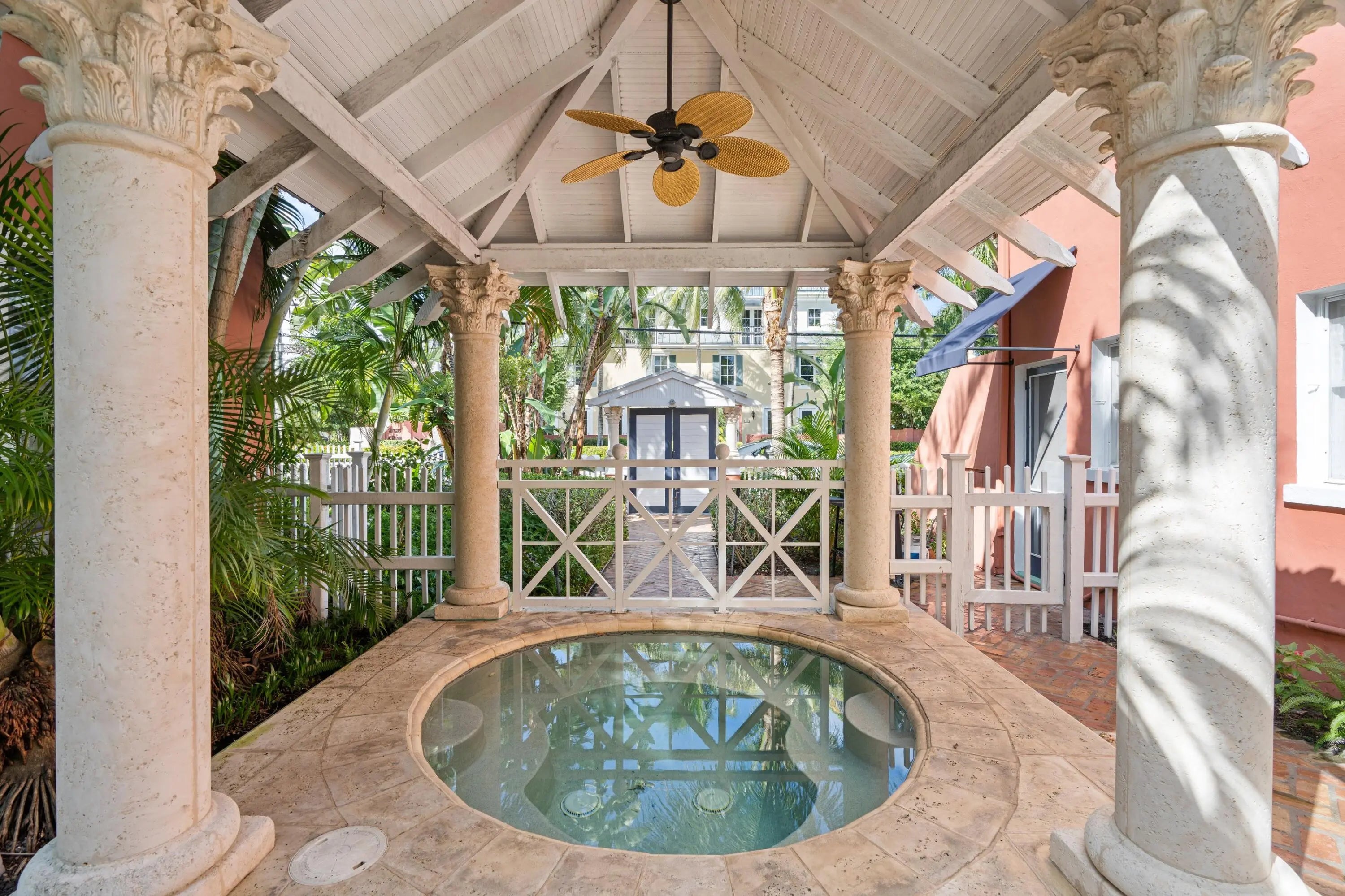 Within the Marina Historic District neighborhood, Delray Marina Villas is a historic gem. Surrounded by lush, tropical gardens with hibiscus, citrus and avocado trees. Chicago brick walkways lead you to your Villa and the subtle fragrance of an exotic ylang-ylang tree perfumes the air. Villa 4 is a charming second floor 2/1, with historic details, 2 large bedrooms, cozy sitting room and kitchen with all of the essentials. Enjoy the warm breeze from a small balcony outside the front door with garden and neighborhood views through the palms. One block from vibrant Atlantic Ave. and municipal marina, the location is beautifully situated within a pretty residential neighborhood. Shopping, fine dining, the beach, all very easily accessed. Discover a truly authentic Delray Beach.