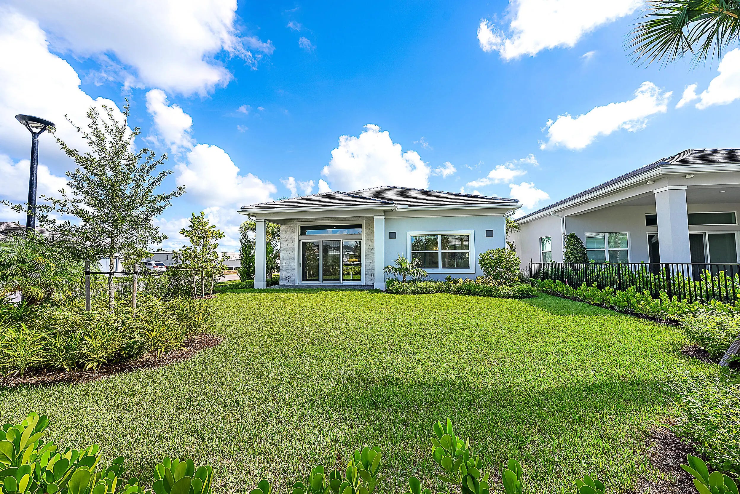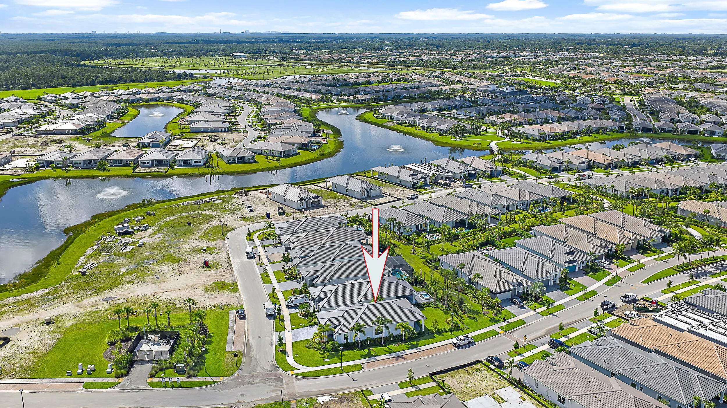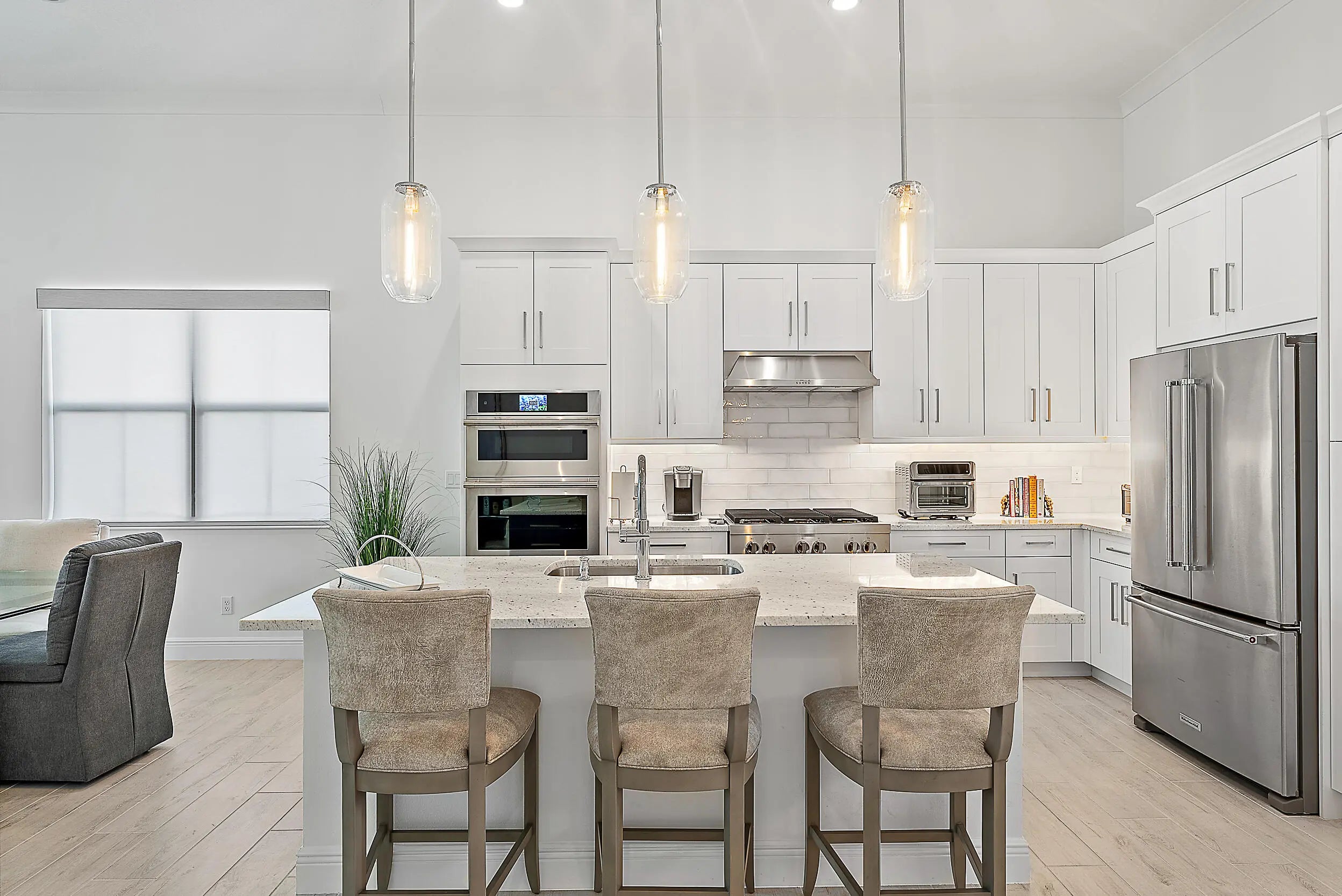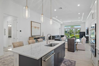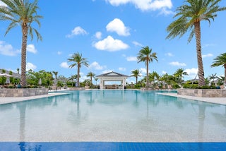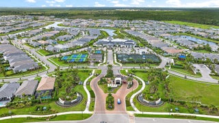 Set on a premium corner lot with lush landscaping and upgraded exterior finishes, this expanded Samantha model blends space, style, and easy single-level living. The great room and primary suite were enlarged for everyday comfort and effortless entertaining. A flexible den with a beautiful bookcase works as an office, library, or potential third bedroom. The open plan showcases a tray-ceiling great room and dining area anchored by a gourmet kitchen with an oversized island, professional-grade appliances, and a reach-in pantry. A spa-style primary suite and covered lanai create seamless indoor-outdoor living. Enjoy country-club-style amenities—no equity membership required—in Regency at Avenir's resort-style 55+ community.