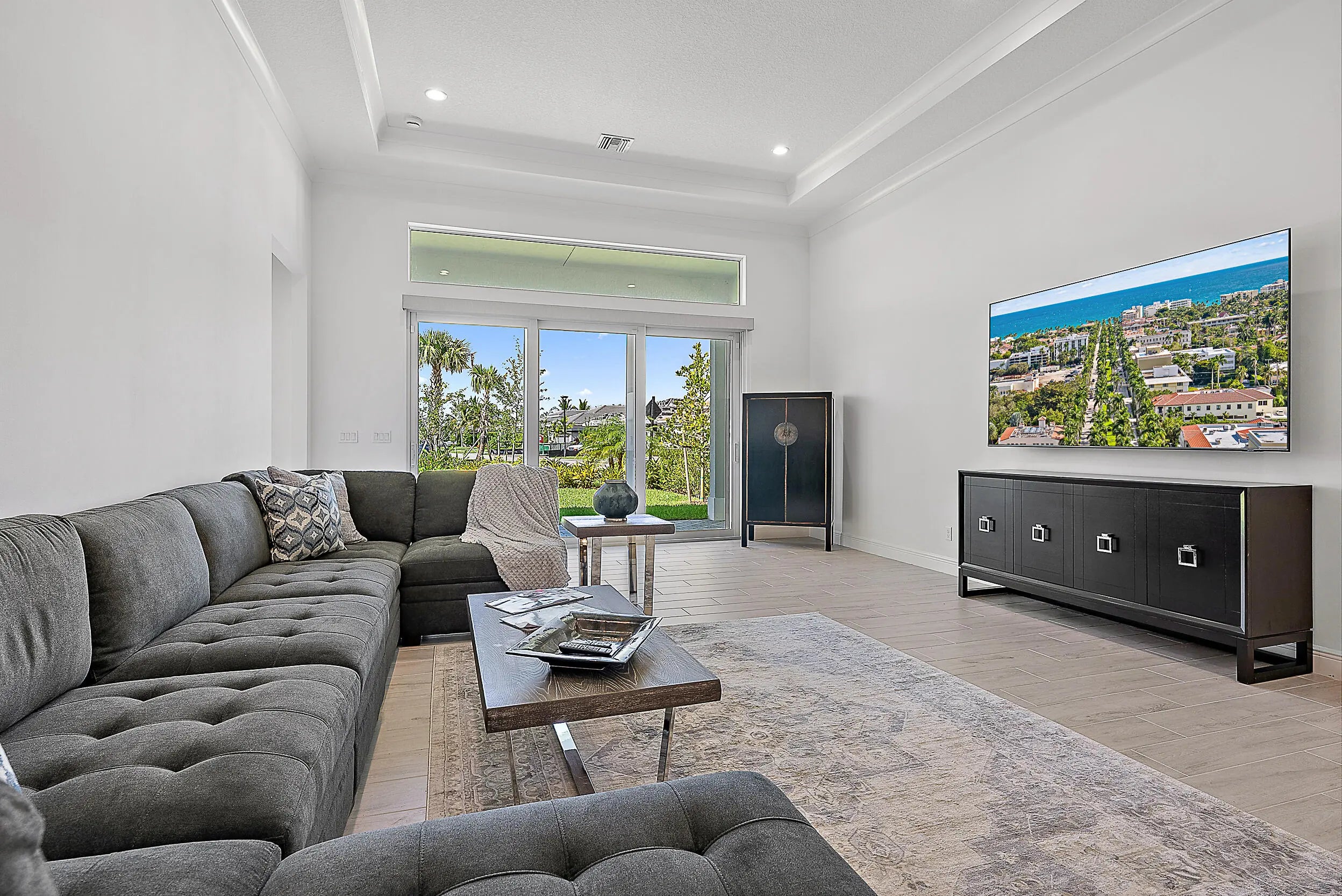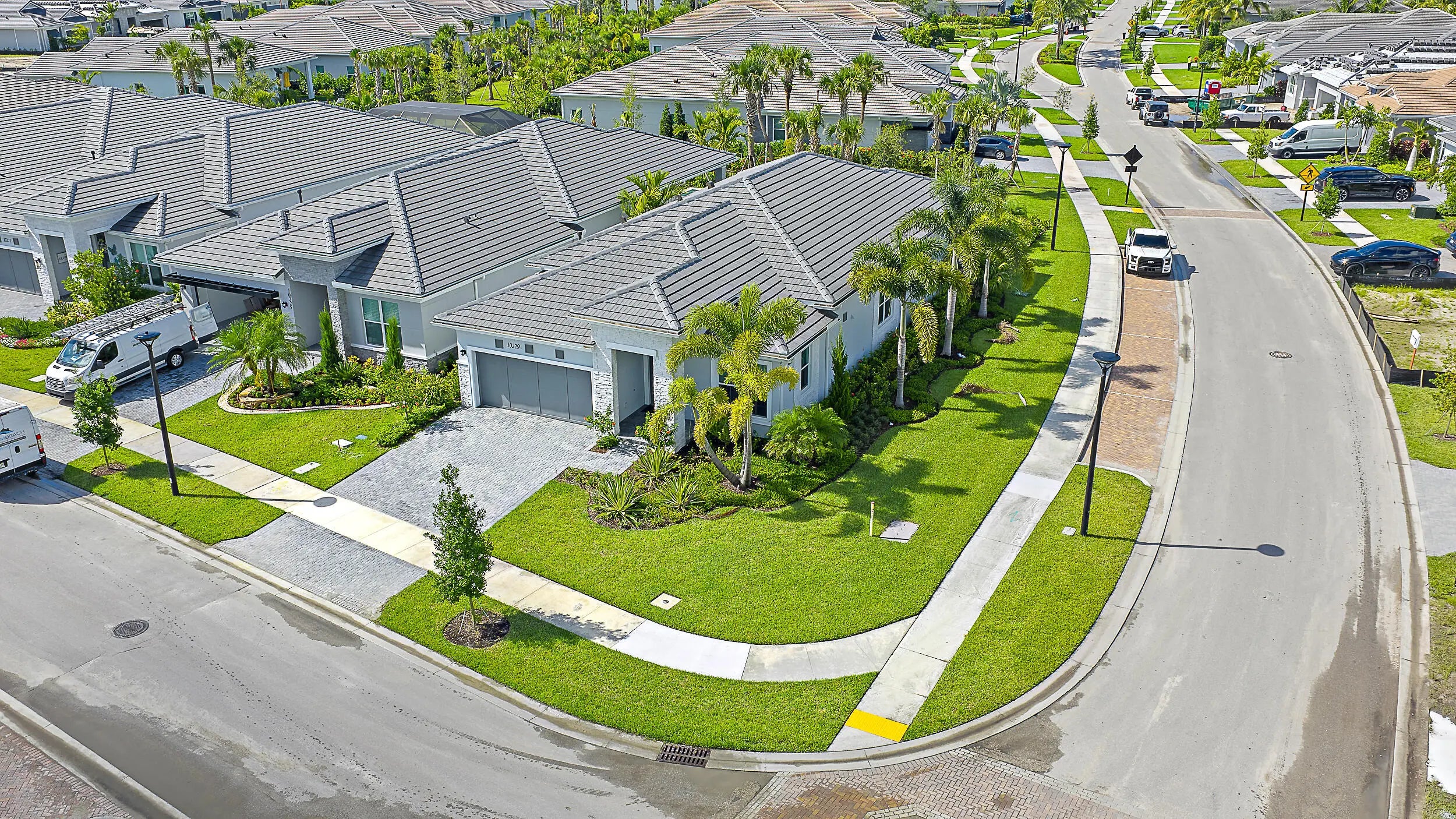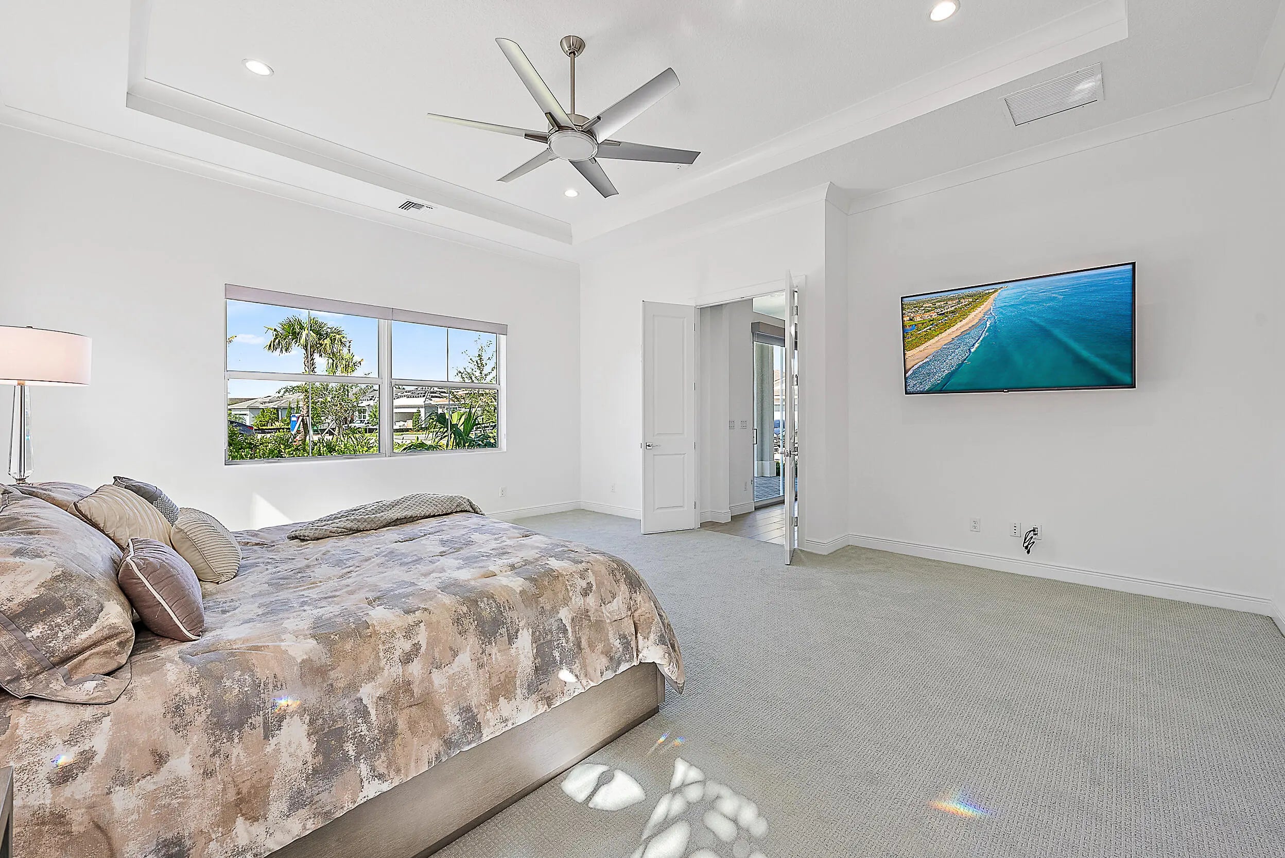 Set on a premium corner lot with lush landscaping and upgraded exterior finishes, this expanded Samantha model blends space, style, and easy single-level living. The great room and primary suite were enlarged for everyday comfort and effortless entertaining. A flexible den with a beautiful bookcase works as an office, library, or potential third bedroom. The open plan showcases a tray-ceiling great room and dining area anchored by a gourmet kitchen with an oversized island, professional-grade appliances, and a reach-in pantry. A spa-style primary suite and covered lanai create seamless indoor-outdoor living. Enjoy country-club-style amenities—no equity membership required—in Regency at Avenir's resort-style 55+ community.
