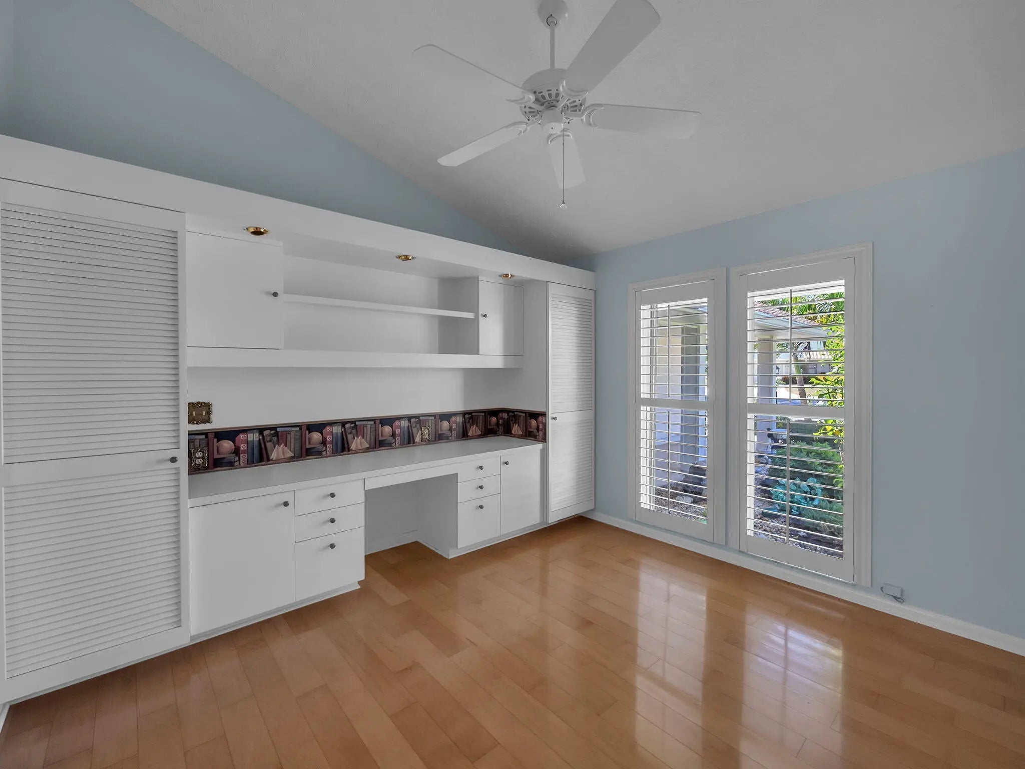 Charming 2-Bedroom Home in Hobe Sound's Premier 55+ Community Located just 3.5 miles from the Hobe Sound Beach, this beautifully upgraded 2-BR, 2-BA plus an office home offers resort style living. Offering an open floor plan, it is designed for comfort, functionality & entertainment. The spacious Florida Rm adds even more living space, while the separate office offers a quiet retreat for work or study. The bathrooms have been tastefully updated. The backyard is a private oasis, with serene views of a pond and lush preserve, where you can enjoy watching local wildlife from the comfort of your own home. Relax on the screened porch. Residents enjoy UNLIMATED golf, clubhouse, pool, pro shops, tennis, pickleball, bocce ball and more. A resort vacation every day.