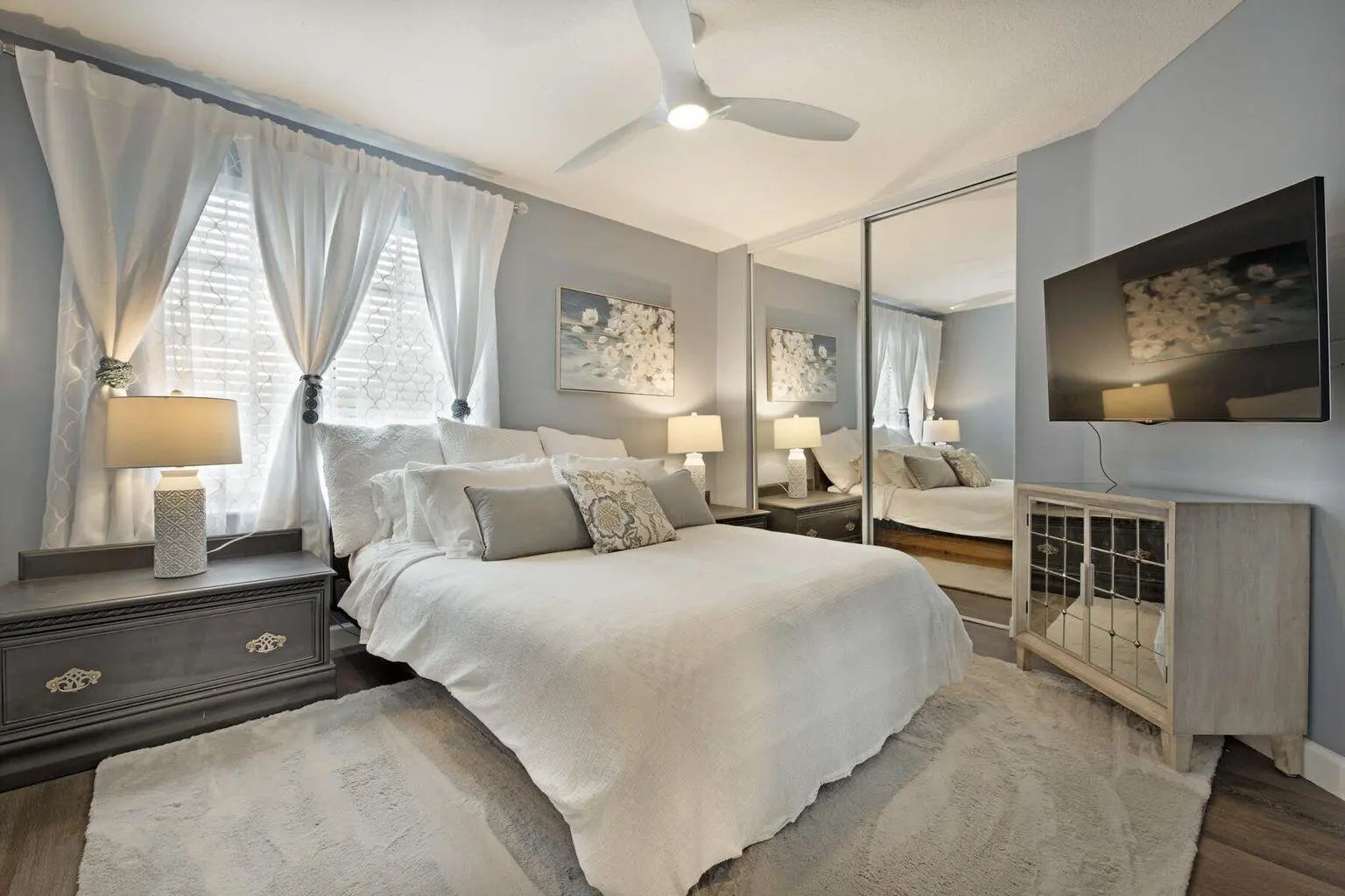 Available October 1st, 2025. This beautiful appointed home has 4 bedrooms 2.5 baths. Totally private with several outside patio areas perfect for entertaining guests. Master queen bed ensuite, 2 queen beds,1 single bed with private balcony. One car garage with 3 additional parking spaces. Large eat in kitchen with island and separate eating area. Open floor plan to family room, dining room and living room. Incredible privacy in a peaceful setting. Tile throughout first floor laminate flooring on second floor. Close to all equestrian venues. 5th bedroom queen bed available