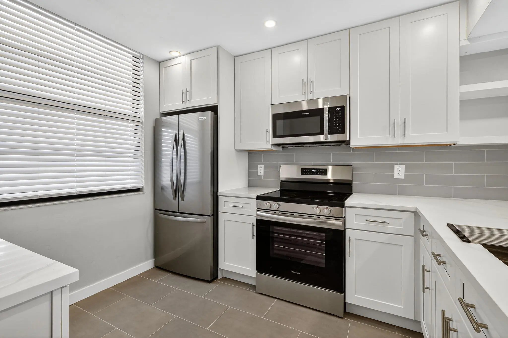 Newly remodeled condo MINUTES from Downtown West Palm Beach and PBI Airport Spacious modern style 2/2 with a large storage/laundry room that could be made into a den, gym, etc. Entrance through private gate at Land of the Presidents. Quartz countertops and ceramic tile.