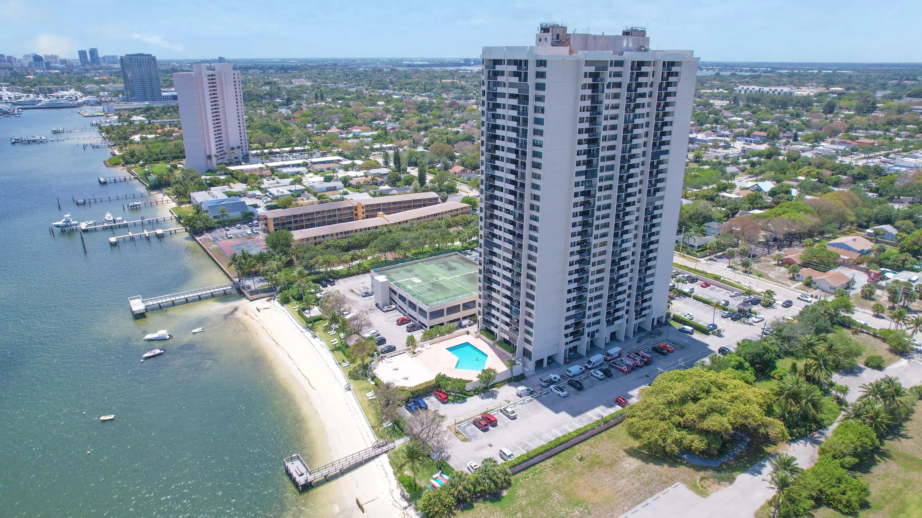 SPECTACULAR INTRACOASTAL & OCEAN VIEWS FROM THE 27TH FLOOR. 2 BEDROOM 2 BATH UNIT ON THE INTRACOASTAL. MOVE IN OR RENT RIGHT AWAY! COMPLETE IMPACT GLASS & SHUTTERS. NEW HOT WATER HEATER. MOOR YOUR BOAT IN FRONT OF BLDG. NEW CONSTRUCTION STARTING A FEW BLOCKS AWAY FOR OVER 3 MILLION. ASSIGNED PARKING SPOT. SPLIT BDRM FLOOR PLAN. WASHER/DRYER IN UNIT. RESORT STYLE AMENITIES, PRIVATE BEACH/FISHING PIER, SALT WATER HEATED POOL, STATE OF THE ART FITNESS CENTER. TIKI HUT AND BEACHSIDE BBQ. MANNED GATE AND LOBBY. CABLE, HIGH SPEED INTERNET AND WATER INCLUDED IN MAINTENANCE. ONE PET ALLOWED. NEAR FABULOUS PALM BEACH ISLAND SHOPS, RESTAURANTS, ROSEMARY SQUARE & PBIA.