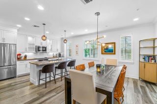 Located in the heart of Pineapple Grove Village, this beautifully upgraded townhouse sits on the most desirable side of Cannery Row (West), offering refined living in one of downtown Delray Beach's most attractive communities. The first floor includes a spacious two-car garage and a private en-suite bedroom with a bathtub ideal for guests or as a quiet home office, separated from the main living areas. A staircase with solid hardwood treads and risers leads to the second floor, where you'll find matching wood floors and a thoughtfully designed layout. The large eat-in kitchen features white Shaker-style cabinetry, light granite countertops, and an oversized island that functions as both a practical workspace and a central gathering spot. Opposite the powder room, a bright formal living room is framed by large windows, bright formal living room is framed by large windows, bringing in natural light from both sides of the home. High ceilings and impact windows throughout contribute to a quiet, comfortable atmosphere. Upstairs, the third floor offers two additional en-suite bedrooms, including a primary suite with a generous walk-in closet and a bathroom with dual sinks and subtle coastal-inspired finishes. Cannery Row is a well-maintained, boutique community with lush landscaping and a resort-style pool, all within walking distance to Delray's top restaurants, cafés, shops, galleries, and the beach.