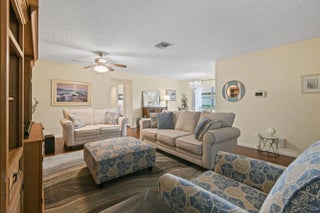 This well‑kept Savannahs Condominium unit offers a welcoming screened front porch and a comfortable layout with 2 bedrooms and 2 full bathrooms. Inside, you'll find a thoughtful blend of finishes: tile flooring in the kitchen and baths, warm laminate wood in the living area, and soft carpeting in both bedrooms. Major updates include a newer A/C system (2020), a roof replacement completed the same year, and newer kitchen appliances—providing added confidence and long‑term value. Partial accordion shutters offer additional storm protection, making this home both practical and truly move‑in ready.