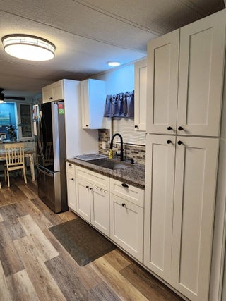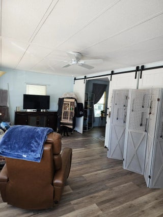 Move-in ready and fully upgraded! Check out this beautiful LAKEFRONT 2 BED 2 BATH Double-wide! Featuring a newer METAL ROOF! Enjoy luxury vinyl plank flooring, fresh paint, new fixtures and hardware, and an open-concept layout with separate living, family and dining. NEW custom kitchen with soft-close cabinets, granite counters, stainless LG appliances, and reverse osmosis system. Both bathrooms have been recently updated. Freshly painted exterior, clamshell storm protection throughout, complete surge protection, and generator hookup. Additional perks include- barn doors, huge sunroom, mini bar, on-demand hot water, extra storage space and LG washer/dryer. This property is in a 55+ land lease community. The current land lease is $930. Schedule your private tour today!