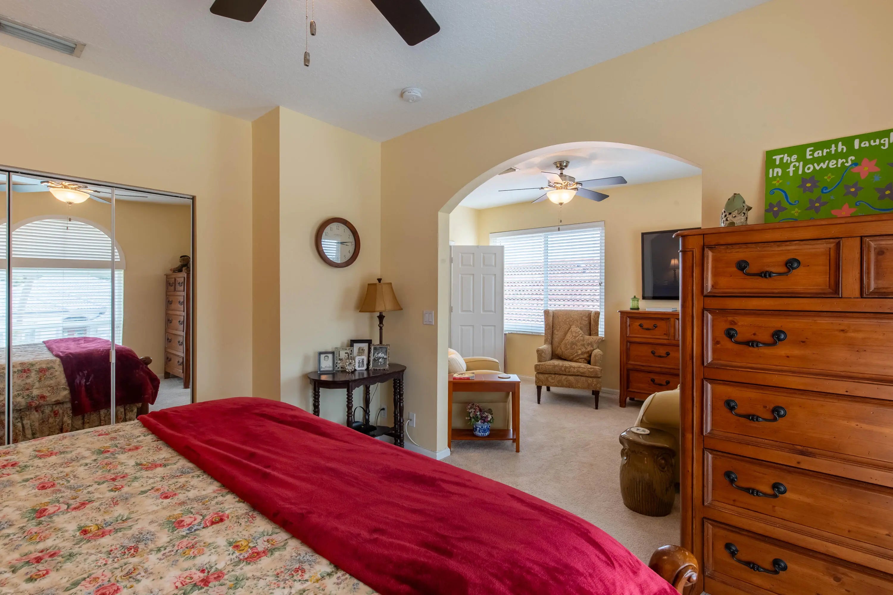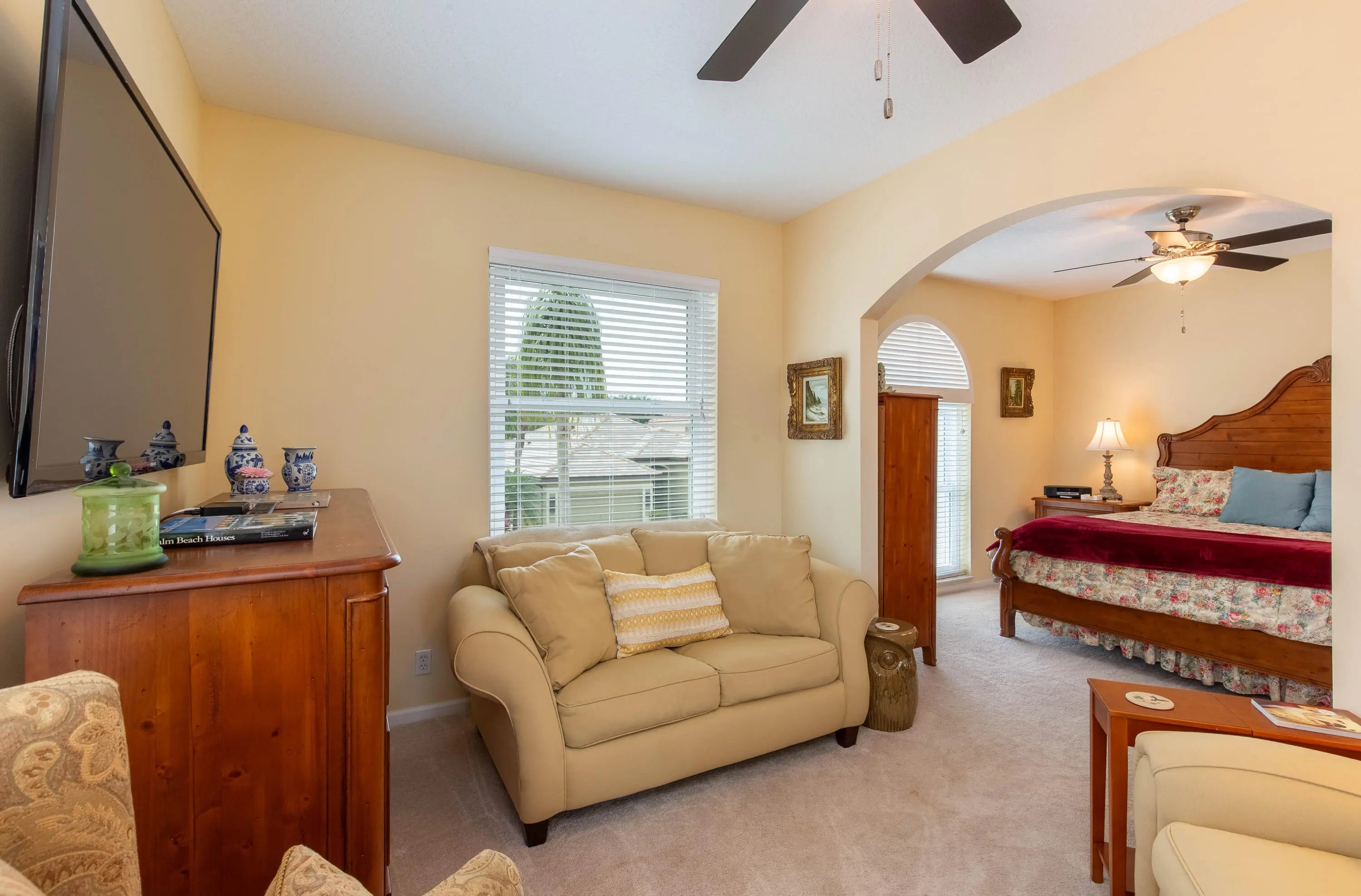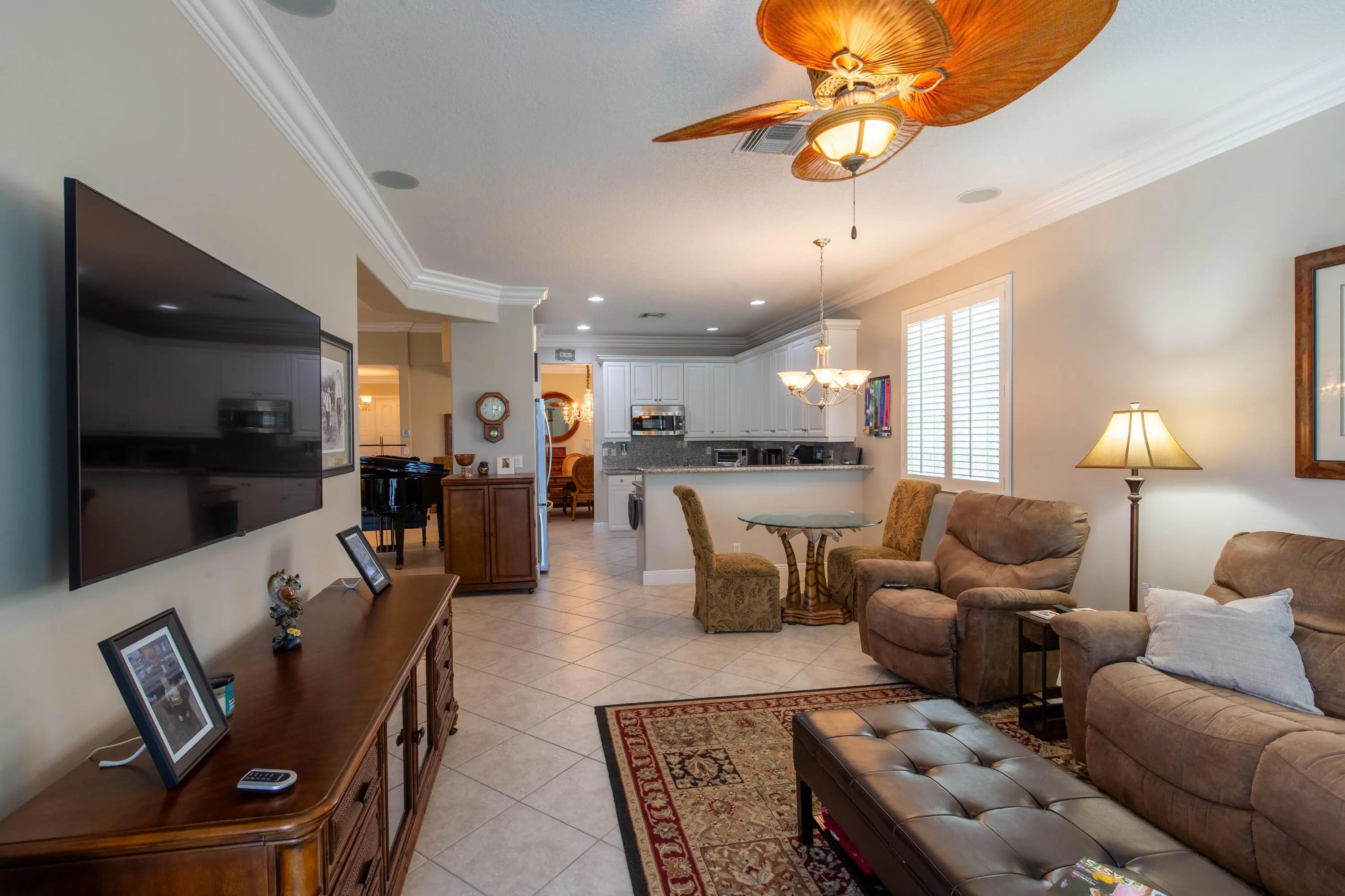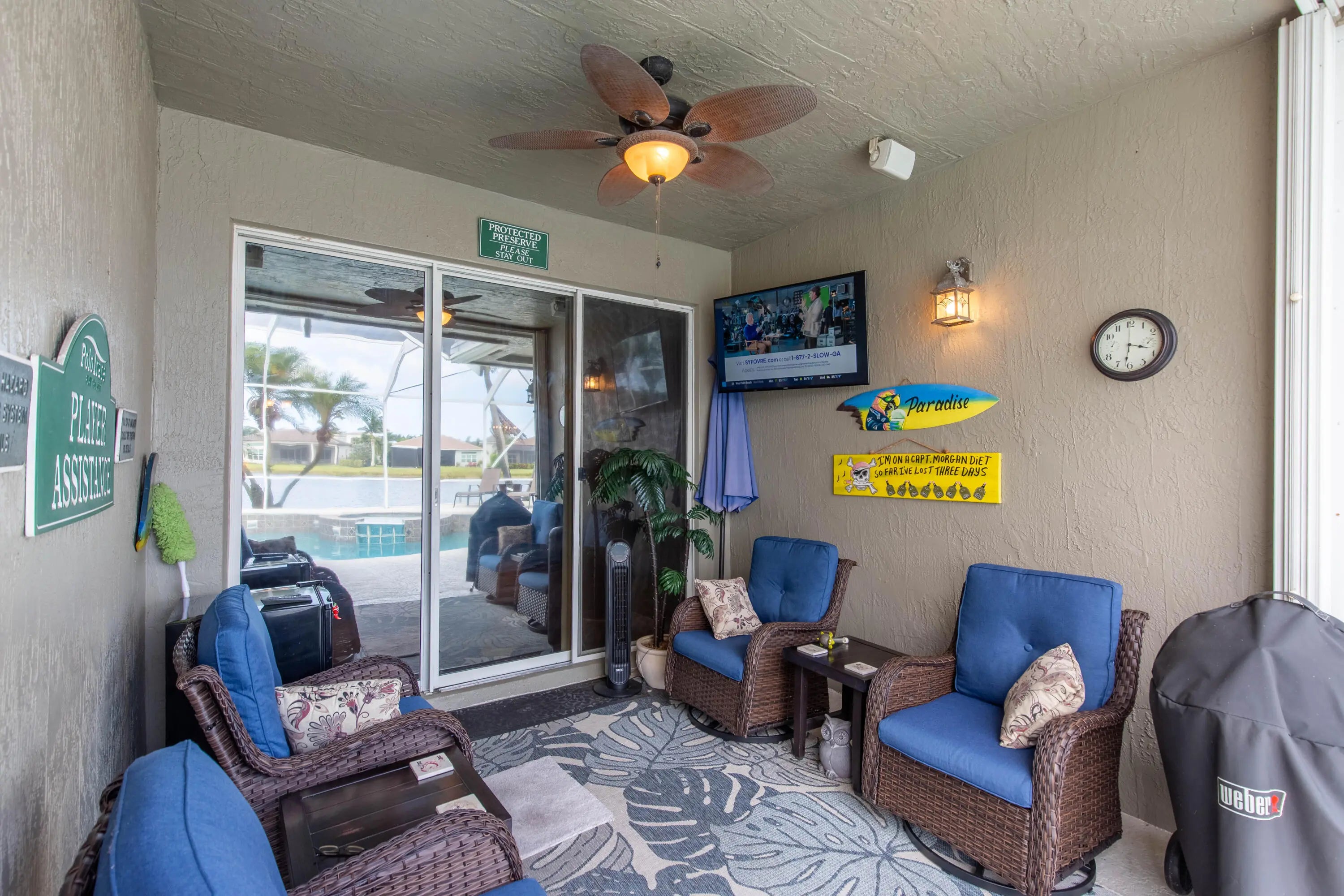 Beautifully maintained home with 2,871 sq ft of versatile living space. Features include a spacious kitchen with double ovens, formal dining, separate living and family rooms, home office, and a main-level primary suite with custom his-and-hers closets. Upstairs offers an oversized guest suite, additional bedroom, large bath, and a flex space loft—perfect for a media room, playroom, or workout space. Enjoy a private backyard oasis with pool, spa, and screened enclosure. Located in a resort-style community with clubhouse, pools, gym, restaurant, sports courts, playground, and 24-hour security. HOA includes internet, cable, lawn care, roof cleaning, exterior painting, and more.