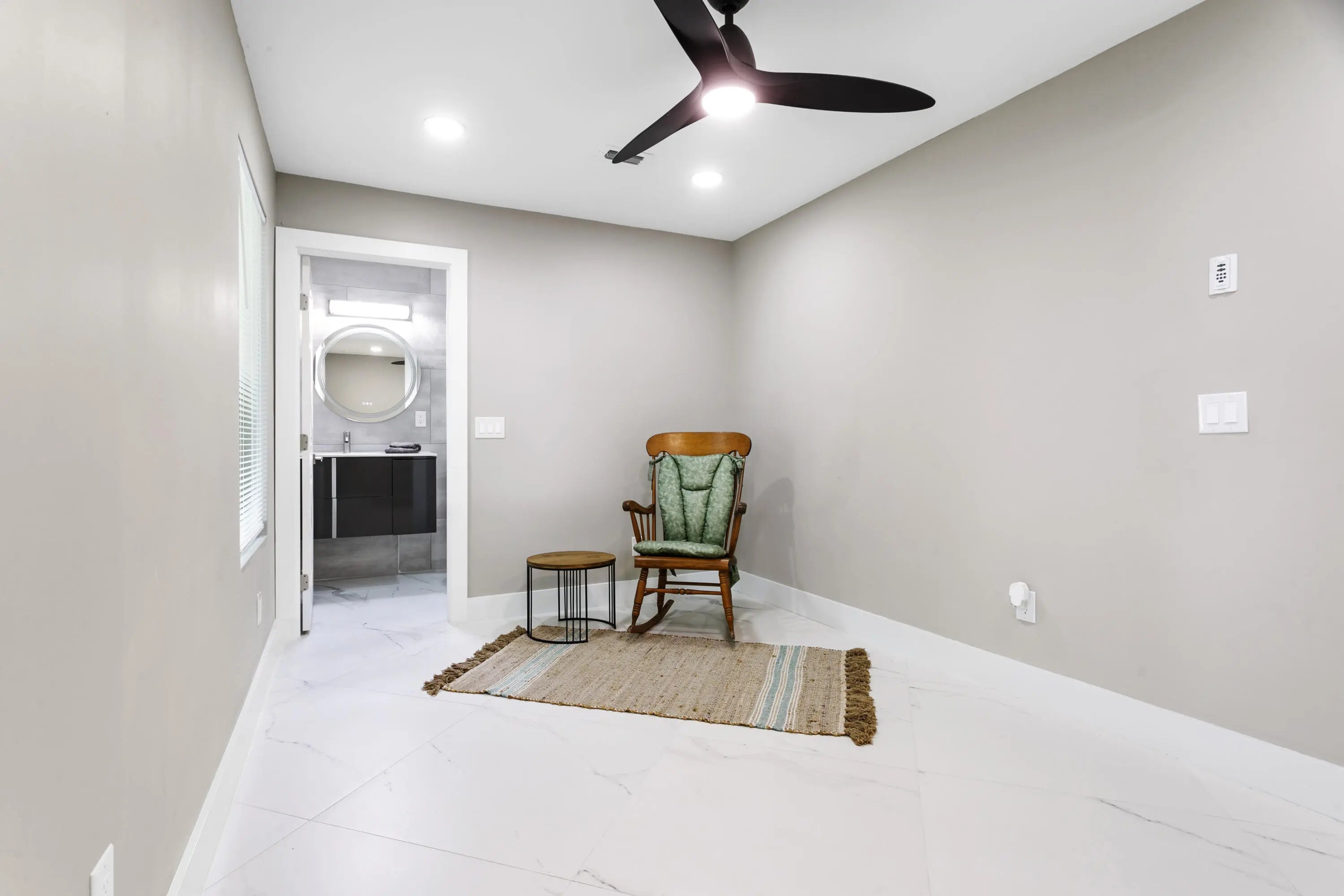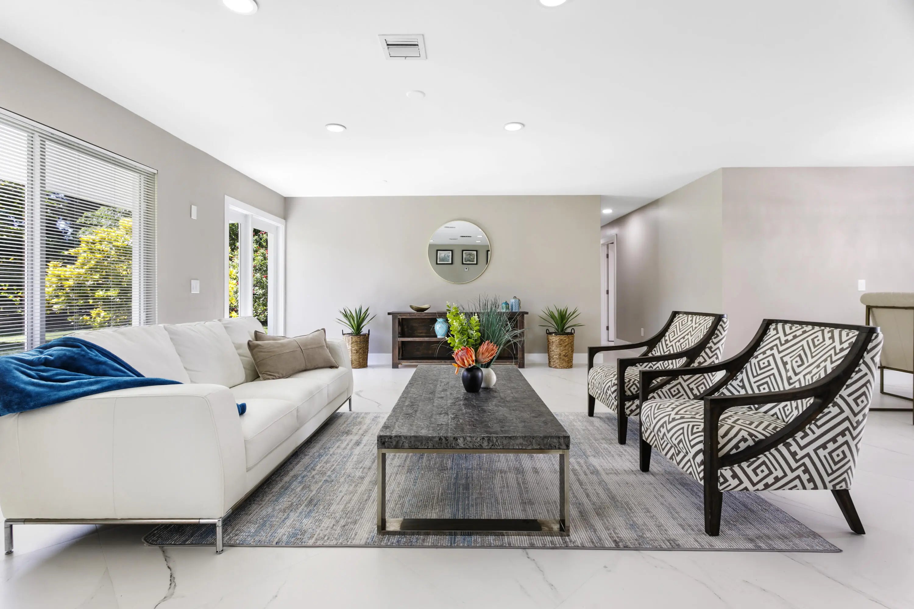A rare and versatile opportunity in Haverhill Riding Estates, this expansive 2.11-acre property uniquely combines a fully renovated residence with compelling future land development potential. The parcel offers the ability to pursue a 6-7 single-family home development (per proposed site plan), featuring more than 91,900 square feet of usable land accented by mature fruit trees and a desirable setting. Whether held for redevelopment or enjoyed as a private estate, the possibilities are exceptional. Positioned on approximately ½ acre, the existing CBS residence has been thoughtfully renovated and is move-in ready. The 4-bedroom, 3.5-bath home with a 2-car garage offers 1,960 square feet of living space designed for modern comfort. Interior highlights include 32x32 porcelain tile flooring, 8-foot ceilings with recessed LED lighting, and smart-home features throughout. The open-concept kitchen is beautifully appointed with a quartz island, Carrera marble backsplash, solid wood shaker cabinetry, and Samsung stainless steel appliances, seamlessly connecting to the dining and family rooms filled with natural light. The primary suite provides generous proportions, a large walk-in closet, and an updated bath with a frameless glass shower and tub/shower combination. Two additional bedrooms share a well-designed full bath with double vanity, while a flexible en-suite bedroom or home office offers ideal space for guests or remote work. A powder room adds convenience for visitors. Additional features include impact windows, a metal roof (2013), newer A/C (2021), water heater (2015), and a two-car garage with laundry and storage. The expansive grounds offer ample room for a pool and flexible parking for boats, trailers, or recreational vehicles. No HOA restrictions. Ideally located near shopping, dining, entertainment, equestrian venues, and premier golf courses, with convenient access to I-95 and Palm Beach International Airport just 12 miles away. Whether your vision includes future development, long-term investment, or a serene private retreat, this property delivers a rare blend of immediate enjoyment and long-range potential.