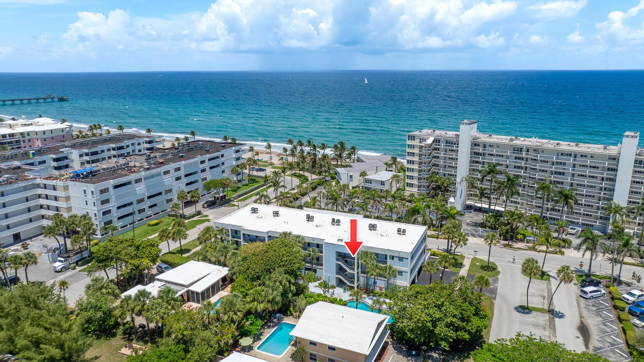 Welcome to Villa Pisani, a boutique building of just 12 residences steps from the ocean in Deerfield Beach! This condo offers ocean views from the balcony, living room, and primary suite. Villa Pisani is the best kept secret in Deerfield Beach, situated along the one mile stretch of boardwalk frequented by beachgoers. Only blocks from restaurants, shopping, and the international fishing pier. The condo features a split floor plan, white kitchen, updated bathrooms, and a full sized washer and dryer in unit. Lease right away, 2x per year, 90 day min. Additional features include two assigned parking spaces and a spacious storage room. Beautiful community pool. The building has completed its 40 year milestone inspection and new roof in 2024! Villa Pisani captures the excitement of beachside living with a prime location just steps from the sand. This condo is a rare find and a true hidden treasure in Deerfield Beach.