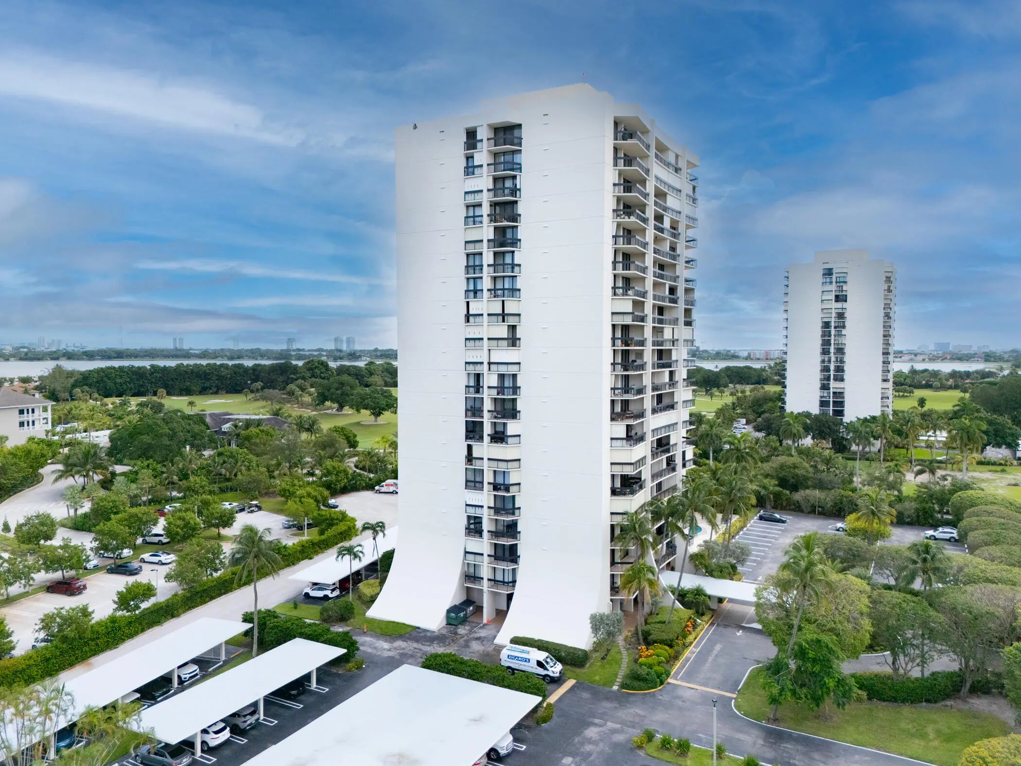 Beautifully updated open 3 bedroom 2 bath corner unit with floor to ceiling Hurricane Impact Sliders throughout plus hurricane shutters to enjoy the amazing panoramic views of the Dutchman's Pipe Golf course. Views are magnificent day & night plus this condo has 2 balconies for plenty of outdoor living. Open Kitchen, beautiful ceramic tiles throughout, granite counter tops, Stainless steel appliances & beautiful cabinets. Unit comes with 2 parking spaces 1 covered & 1 uncovered. Large walk-in closet, with newer Bosch AC & Hot Water heater. Doorman building with manager on site in prestigious gated community. HOA fee Includes Wifi, Cable, water, Fitness center, party room and beautiful pool. Great location near Palm beach outlets, Beaches, restaurants, downtown WPB, Airport & so much more!
