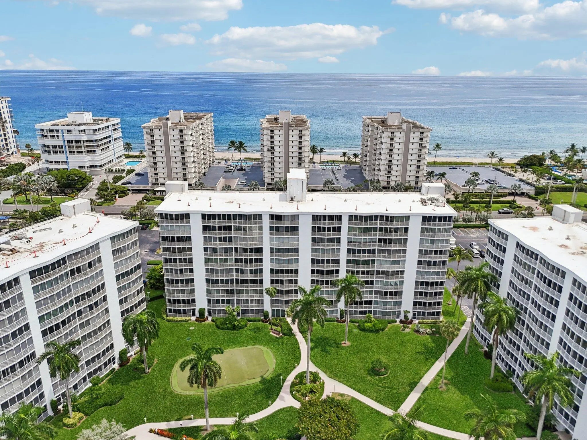 Experience the allure of refined coastal living in this beautifully designed two bedroom, two bath residence, perfectly situated between the intracoastal and ocean. This is one of Highland Beach's most prestigious 55+ communities, Seagate of Highland. Nestled along the intracoastal just off A1A, this first floor condominium offers the rare convenience of direct patio access, creating a graceful connection between sunlit interiors and the serene outdoor surroundings. Every detail of the community has been thoughtfully cared for, with the milestone inspection and reserve study complete. Recent enhancements include concrete restoration, new roofs and elevators. Inside, the home features impact glass and open living spaces that are bright, airy, and perfect for relaxed coastal living. Life here unfolds like a private resort. Residents enjoy private deeded beach access with lounge chairs set against the turquoise Atlantic, the perfect backdrop for endless days by the sea. Two heated pools offer a tranquil retreat, and the welcoming clubhouse with its small fitness center provides opportunities for wellness and social connection. Leisure blends seamlessly with recreation through the putting green, shuffleboard, and bocce ball, while the waterfront barbecue area and boat slips along the Intracoastal invite moments of connection and relaxation. With cable, WiFi, and water included in the well-funded association, this unit embodies both peace of mind and effortless sophistication. Perfectly positioned between the cosmopolitan offerings of Boca Raton and the vibrant charm of Delray Beach, it offers an unparalleled lifestyle where every day feels like a coastal escape. Schedule your private showing today!