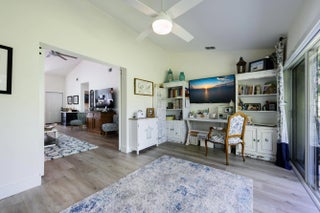Fully renovated and beautifully maintained 2-bedroom, 2-bathroom villa located in the desirable Sea Pines community of Hobe Sound. This charming home offers 1,299 sq ft of living space (1,650 total sq ft) and backs up to a peaceful preserve, offering a sense of privacy and tranquility. Inside, you'll find a bright and spacious living room with vaulted ceilings and impact glass windows that flood the space with natural light. The open kitchen, complete with a cozy breakfast area, Shaker cabinets, newer Samsung appliances (2023) and induction Samsung stove. The kitchen connects seamlessly to the dining room, making it perfect for everyday living or entertaining guests. A versatile den provides the perfect space for a home office, or additional guest area complete with a custom Murphy bed. The master suite includes a walk-in closet and a private en-suite bath with a separate shower. The split floor plan offers privacy, with the second bedroom and full bath on the opposite side of the home. The villa also features a one-car garage, a screened porch, and an open patio for enjoying the Florida weather. The roof was replaced in 2018, and the home includes a mix of ceramic tile and vinyl flooring, accordion shutters, and partial impact glass for storm protection. A laundry area with washer and dryer is conveniently located in the garage. Sea Pines is an active 55+ community offering a wide range of amenities, including a pool, clubhouse, library, game room, shuffleboard, and more. Conveniently located near shopping, dining, and the beaches, this villa is the perfect place to enjoy relaxed Florida living.
