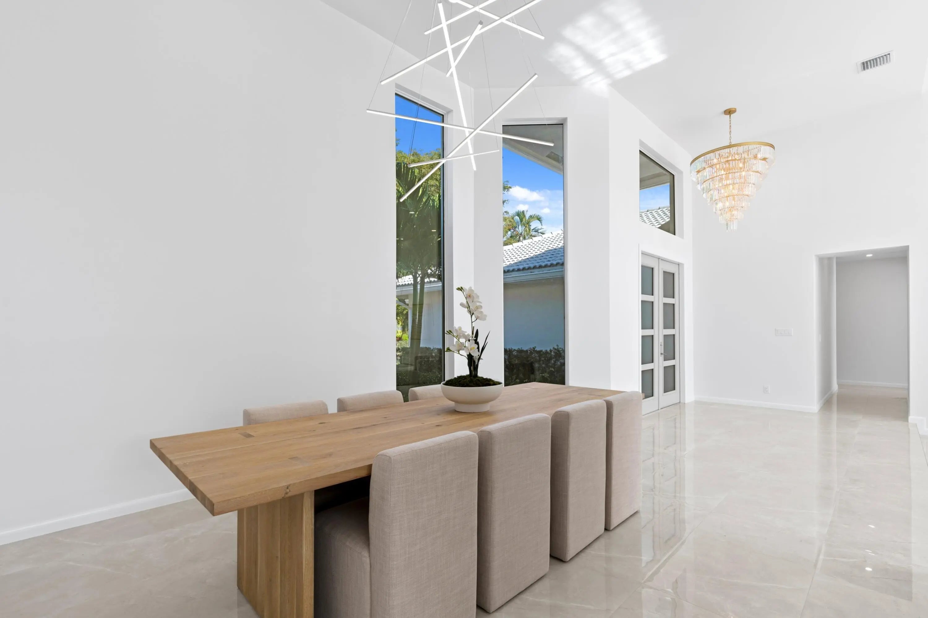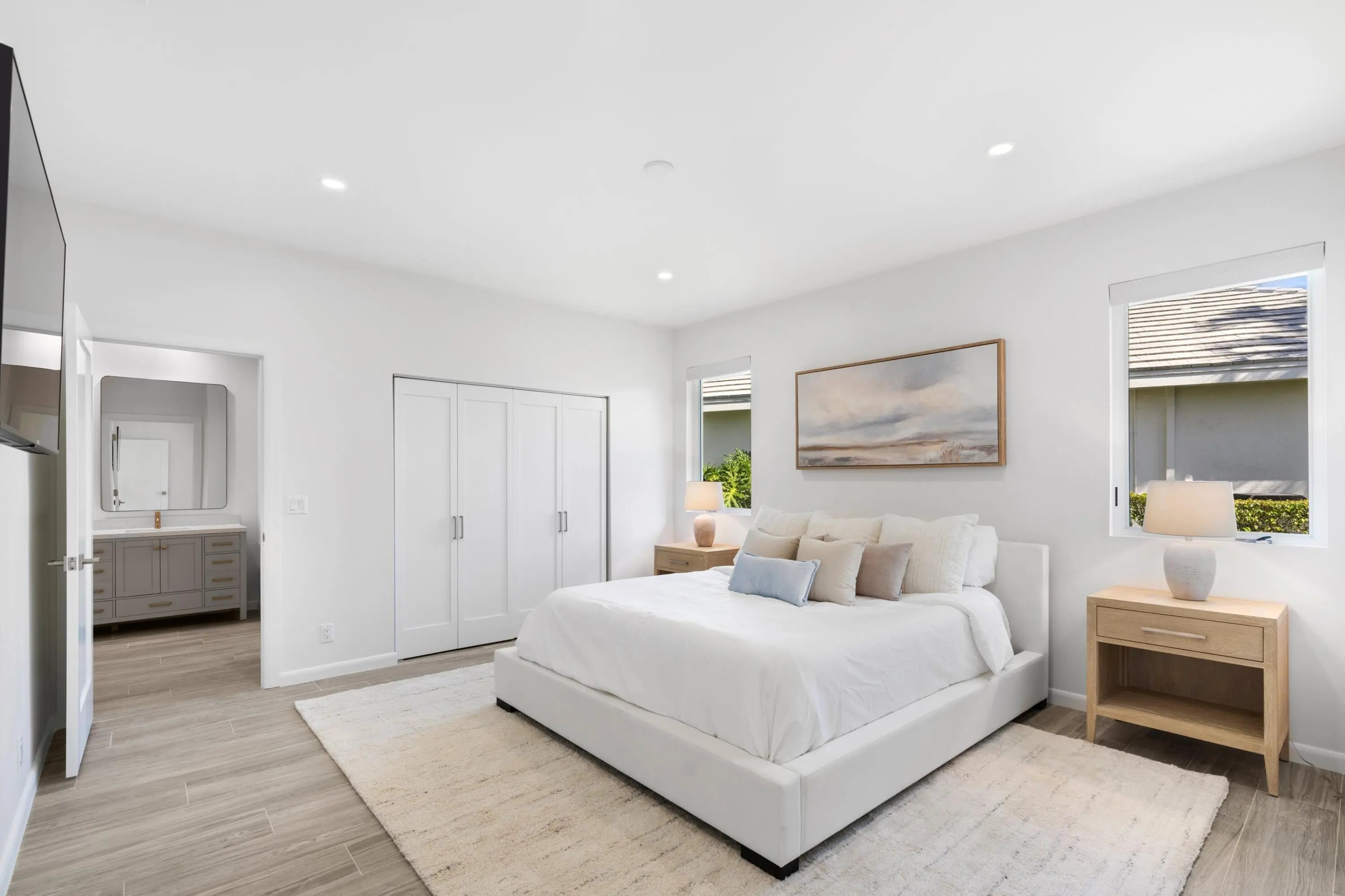 Stunning fully renovated 4-bedroom, 4-bathroom home in the prestigious Palm Beach Polo and Country Club. Offers beautiful water views, top-tier finishes, hurricane-impact windows and doors, and thoughtful design throughout. Step into an open-concept living space with an abundance of natural light. The gourmet kitchen features quartzite countertops, custom cabinetry, Subzero and Wolf appliances, a walk-in pantry, and a spacious island perfect for entertaining. Each of the four generously sized bedrooms provides a private retreat. The primary suite is a true sanctuary, complete with a luxurious spa-like en-suite bath including steam shower, private patio, and walk-in closet. Outside, enjoy your private saltwater pool overlooking serene water views.