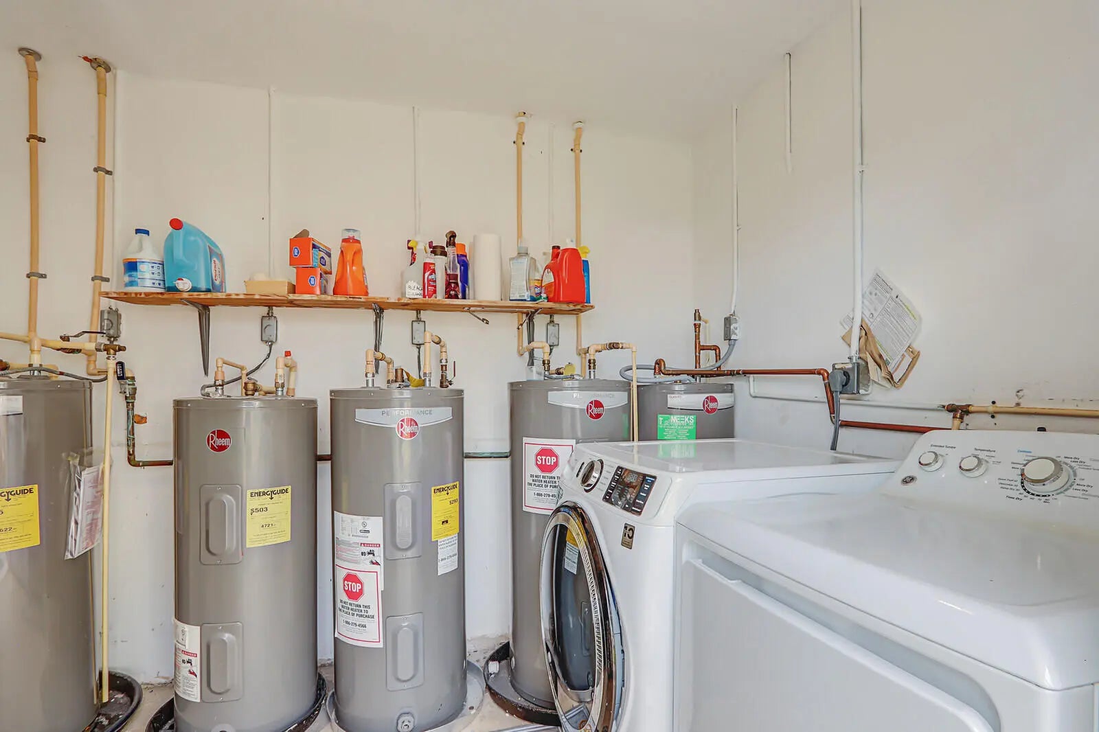 Electric Water Heater, Dishwasher, Electric Range, Microwave, Refrigerator, Water Heater