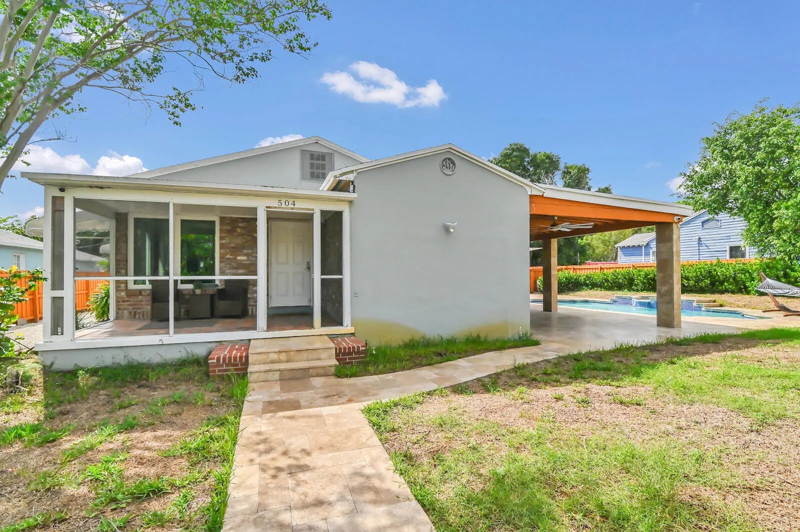 Fully upgraded home with guest house & pool in the non-HOA community of NORTHWOOD. The property could make a wonderful primary residence or investment opportunity! This home boasts a new roof on the main house & full impact windows on both buildings. Come inside and be greeted by spacious living areas, along with newly updated kitchen & bathrooms. All 3 of the bedrooms are spacious as well and each offers a door for exterior access. The 1/1 guest house has also been fully updated. Outside you will enjoy huge covered patio overlooking a beautiful pool and travertine deck. This home even has private covered parking! The property is located just minutes to the Turnpike, I-95, Turnpike, Delray, Boynton Beach, Downtown West Palm Beach, gorgeous area beaches and 3 international airports.