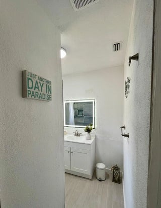 Just one street away from the Intracoastal Waterway, this charming home is located in a neighborhood that is rapidly growing with beautiful new construction homes being built all around. Less than five minutes from the beach and vibrant Atlantic Avenue, you'll enjoy easy access to sand, surf, dining, and a thriving downtown scene. Step inside to an open floor plan designed for easy living and effortless entertaining. The spacious kitchen is tastefully decorated and move-in ready, setting the stage for gatherings with family and friends. The master bedroom offers a chic tropical retreat with warm bamboo wood floors, while the guest room embraces a fun island-inspired feel with Caribbean blue walls and dark bamboo flooring. A third bedroom, perfect as a guest space or bright home office, provides flexibility to fit your lifestyle. The master bath draws inspiration from the tranquil rainforests of Costa Rica, while the guest bath carries the timeless charm of Old Florida design. The dining area flows naturally from the living space, creating the perfect spot to enjoy meals and unwind. Step outside to your private backyard oasis, complete with lush landscaping, a spacious deck, a resin bar top, and a grillideal for entertaining or simply relaxing in the hot tub after a long day. This turnkey home offers the perfect balance of character and comfort in a highly desirable, fast-growing location near the water, the beach, and all that downtown Delray has to offer.
