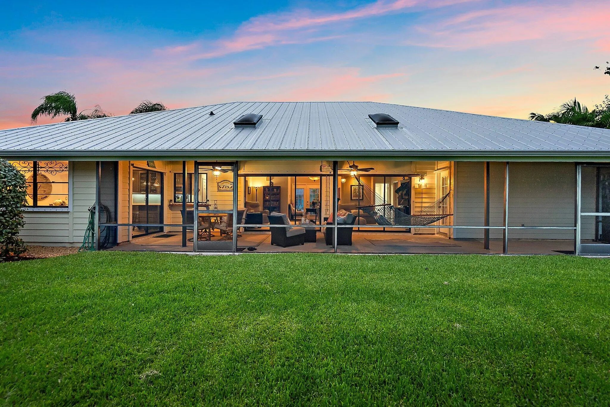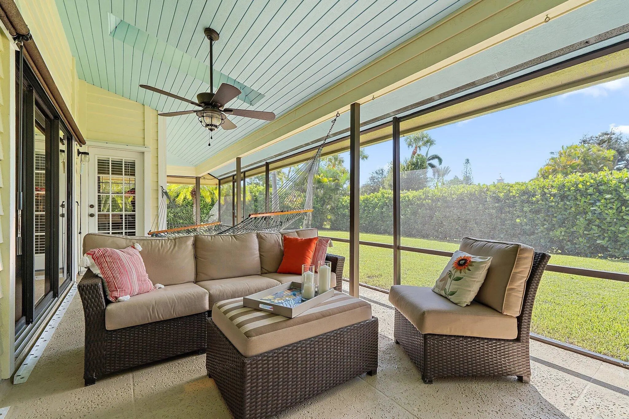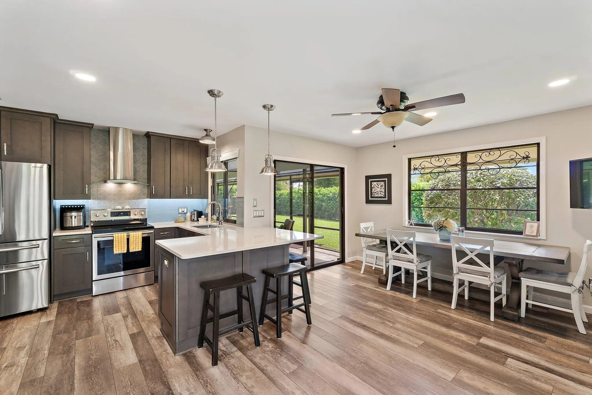 This charming Key West-style residence features three bedrooms, two bathrooms, and a spacious two-car garage. Nestled in a tranquil neighborhood surrounded by natural beauty, it's the ideal retreat for those who enjoy an active, outdoor lifestyle. Inside, the open-concept design creates a welcoming atmosphere, with the living, dining, and kitchen areas flowing seamlessly together. Expansive windows and sliding glass doors invite an abundance of natural light. The newly renovated kitchen boasts sleek stainless-steel appliances, high-end cabinetry, and expansive counter space. Designed with both style and function in mind, it's perfect for everyday meals as well as entertaining. A modern fume hood and thoughtful finishes complete the space. The primary suite offers a serene retreat, featuring a generously sized bedroom, en-suite bath, and abundant closet space. A French door opens directly to the covered, screened lanai for seamless indoor-outdoor living. Two additional bedrooms provide flexibility for family, guests, or a home office, while a dedicated laundry room adds everyday convenience. A seamless metal roof was installed in 2018 for peace of mind. Step out to the screened patio and enjoy the tropical setting, whether you're dining outdoors or simply unwinding in the fresh air. The backyard, framed by lush landscaping, offers plenty of space to soak up the Florida sunshine. Room for a pool if your heart desires. Jupiter Narrows is a scenic community along the Intracoastal Waterway, offering easy access to boating, pristine beaches, and nearby natural treasures such as Jonathan Dickinson State Park and the Hobe Sound National Wildlife Refuge. With tree-lined streets, spacious lots, and a charming blend of Key West and coastal-inspired homes, the neighborhood combines serenity with convenienceclose to excellent schools, dining, and shopping.